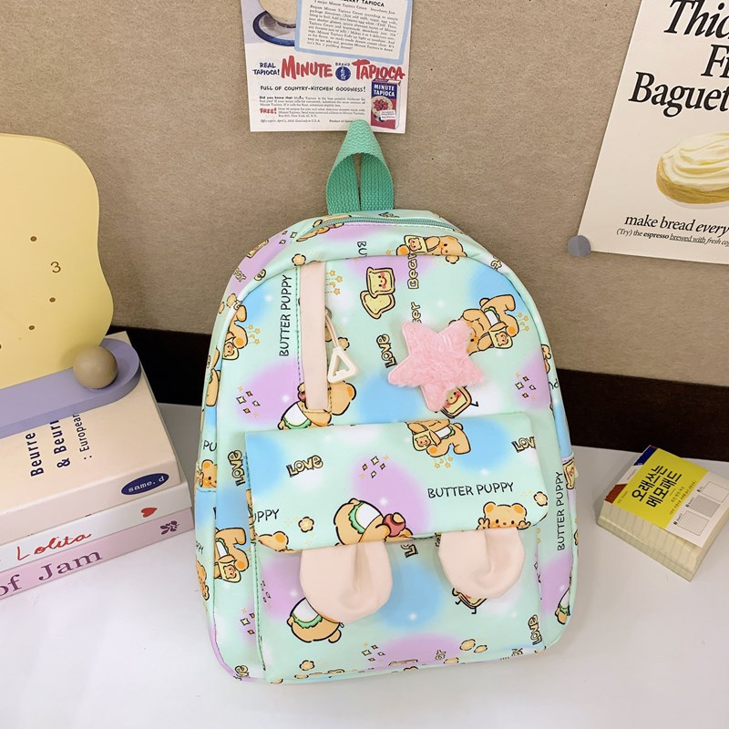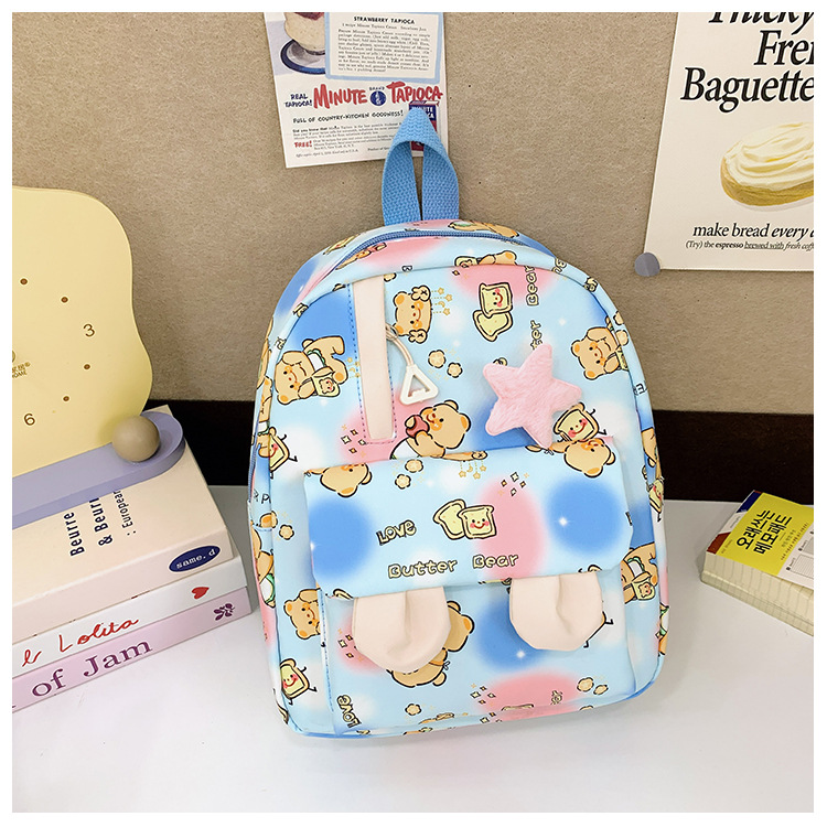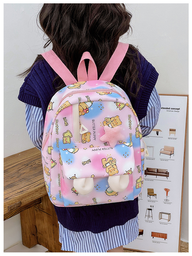 2025 새로운 토끼 귀 귀여운 만화 어린이 버터 곰 학교 가방 유치원 소년과 소녀를위한 배낭 인쇄스토어 가기