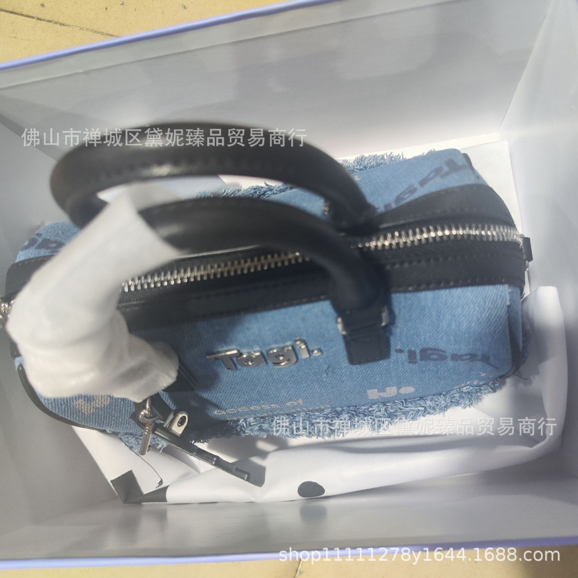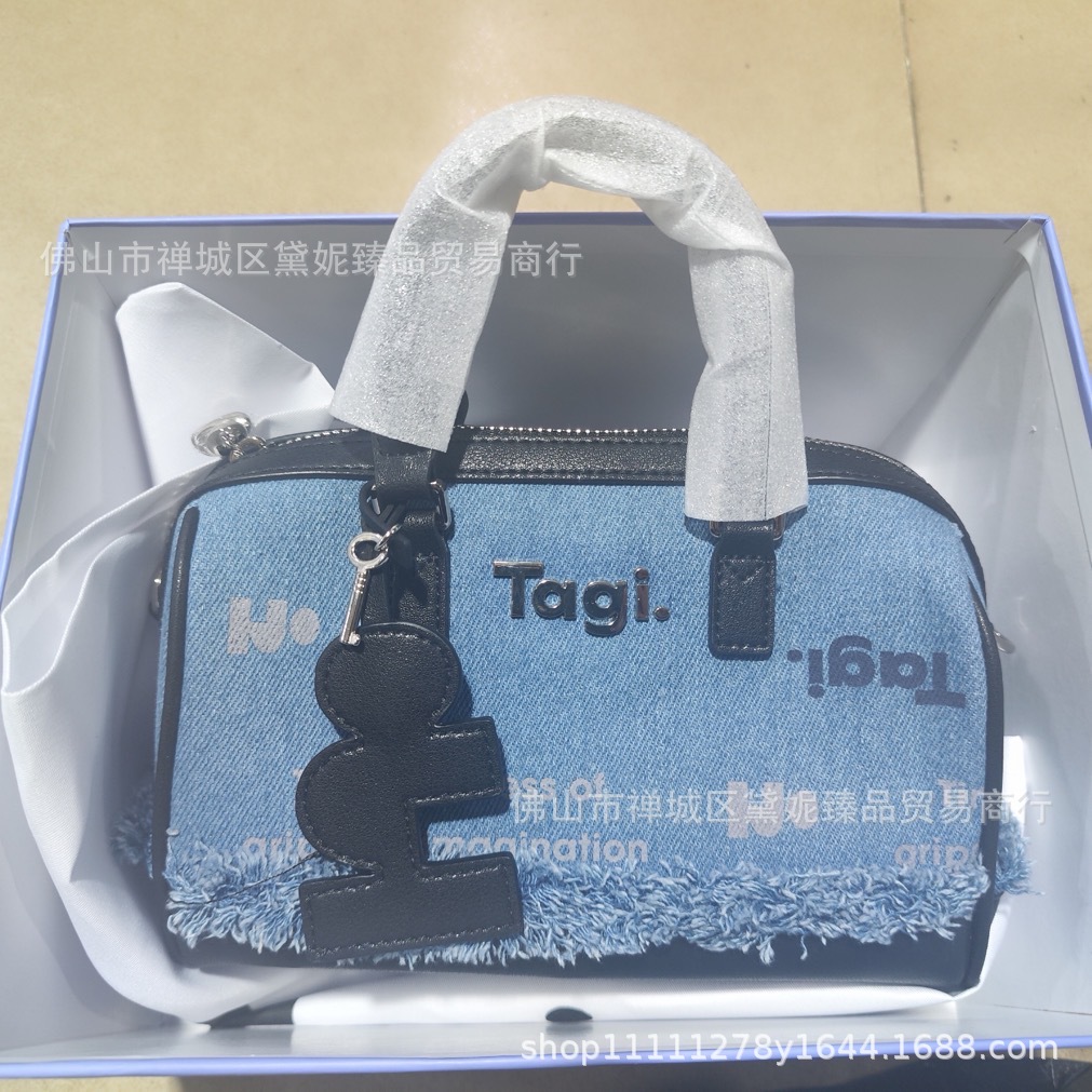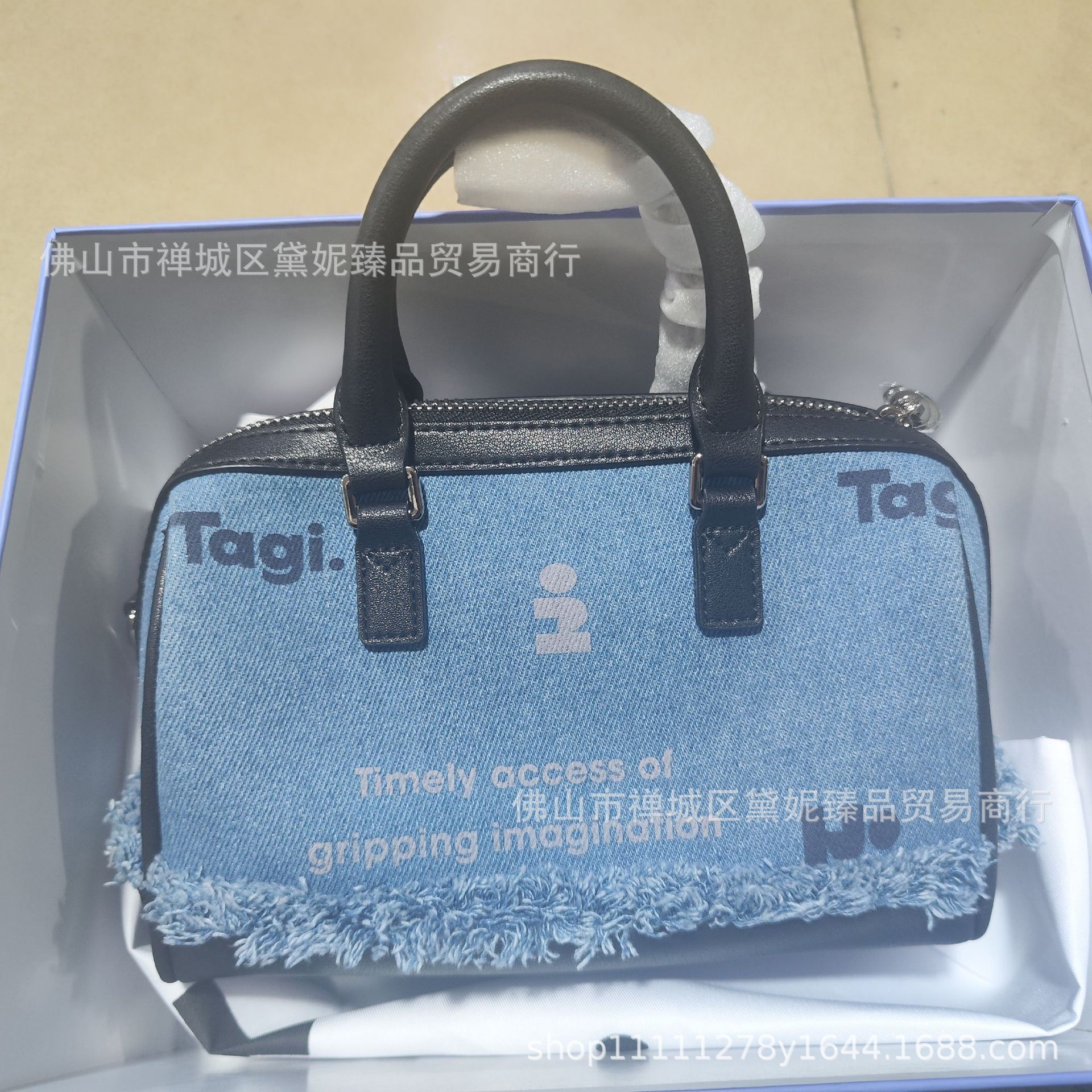 타기 보스턴백 보물상자 블록 데님 가죽 핸드백 숄더백 크로스백 여성 캐주얼 여행 가방스토어 가기