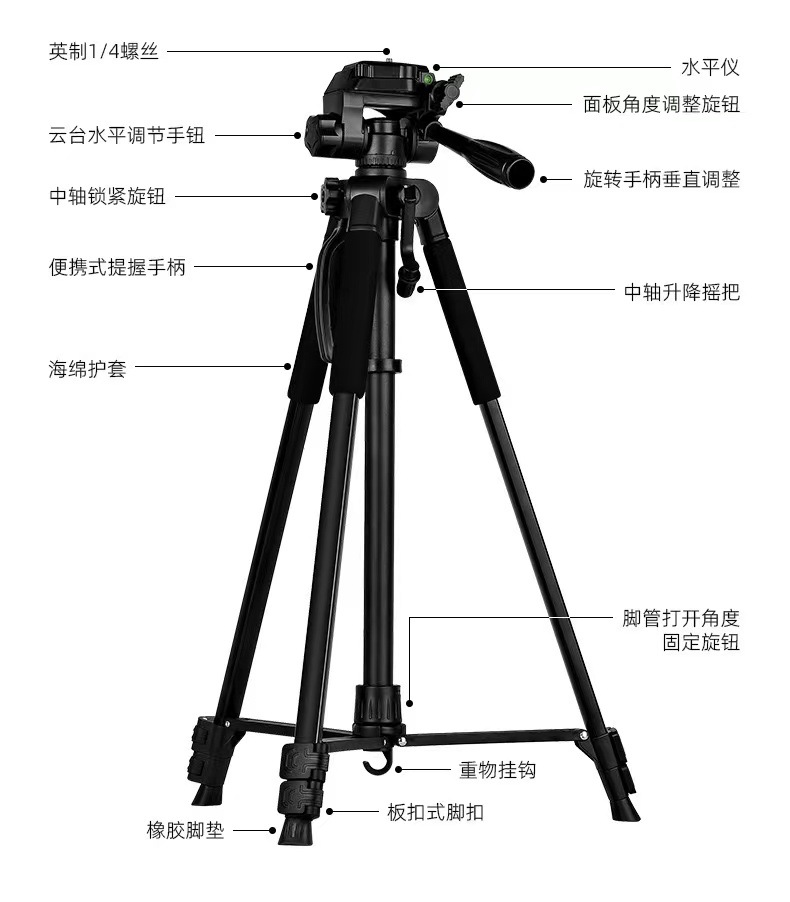 크로스보더 전자상거래 360 알루미늄 합금 카메라 휴대폰 삼각대 라이브 방송용 텔레스코픽 편리한 스탠드 카메라