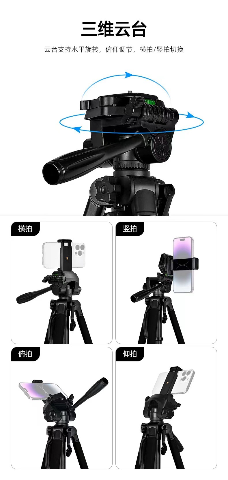 크로스보더 전자상거래 360 알루미늄 합금 카메라 휴대폰 삼각대 라이브 방송용 텔레스코픽 편리한 스탠드 카메라스토어 가기