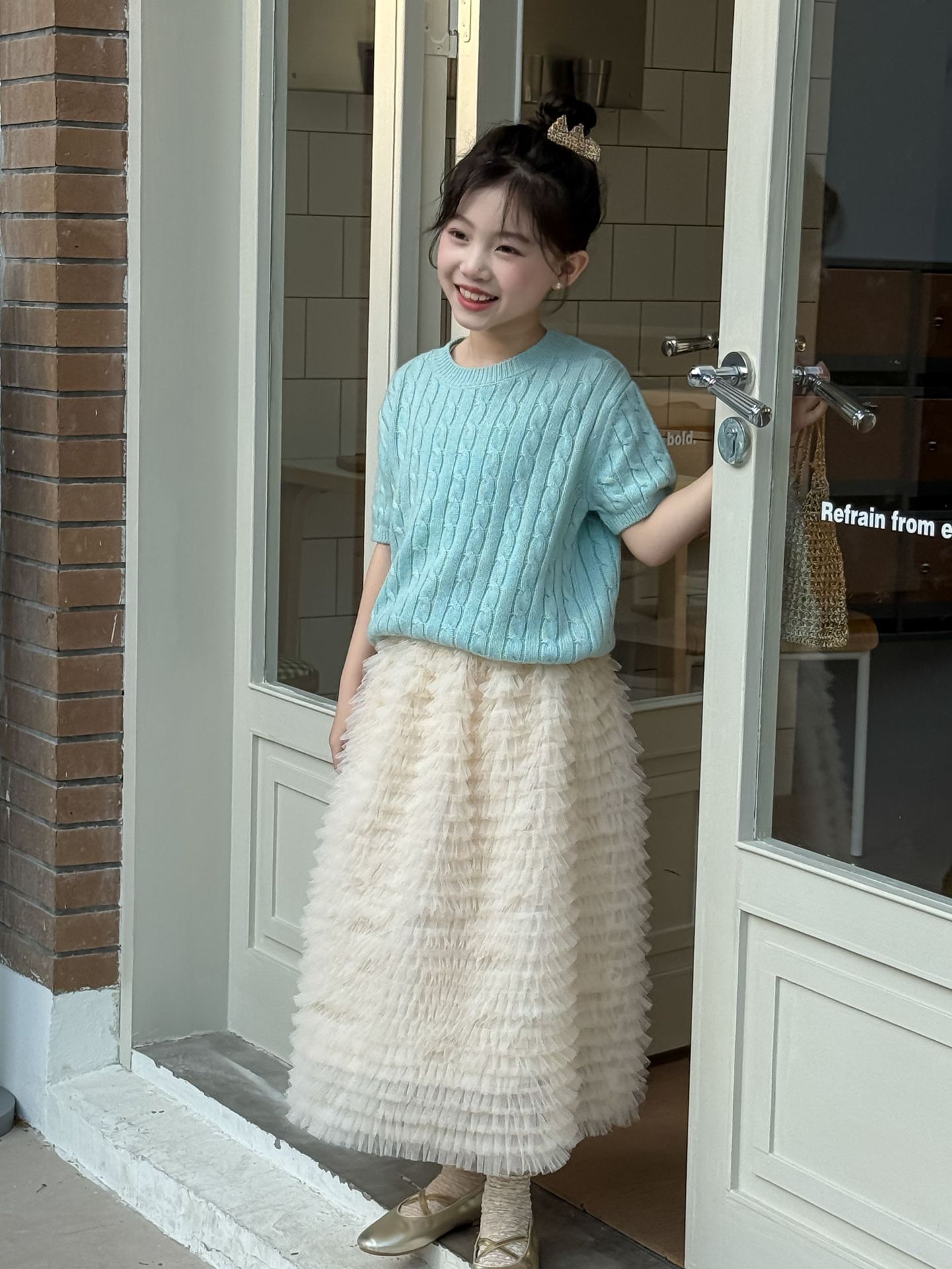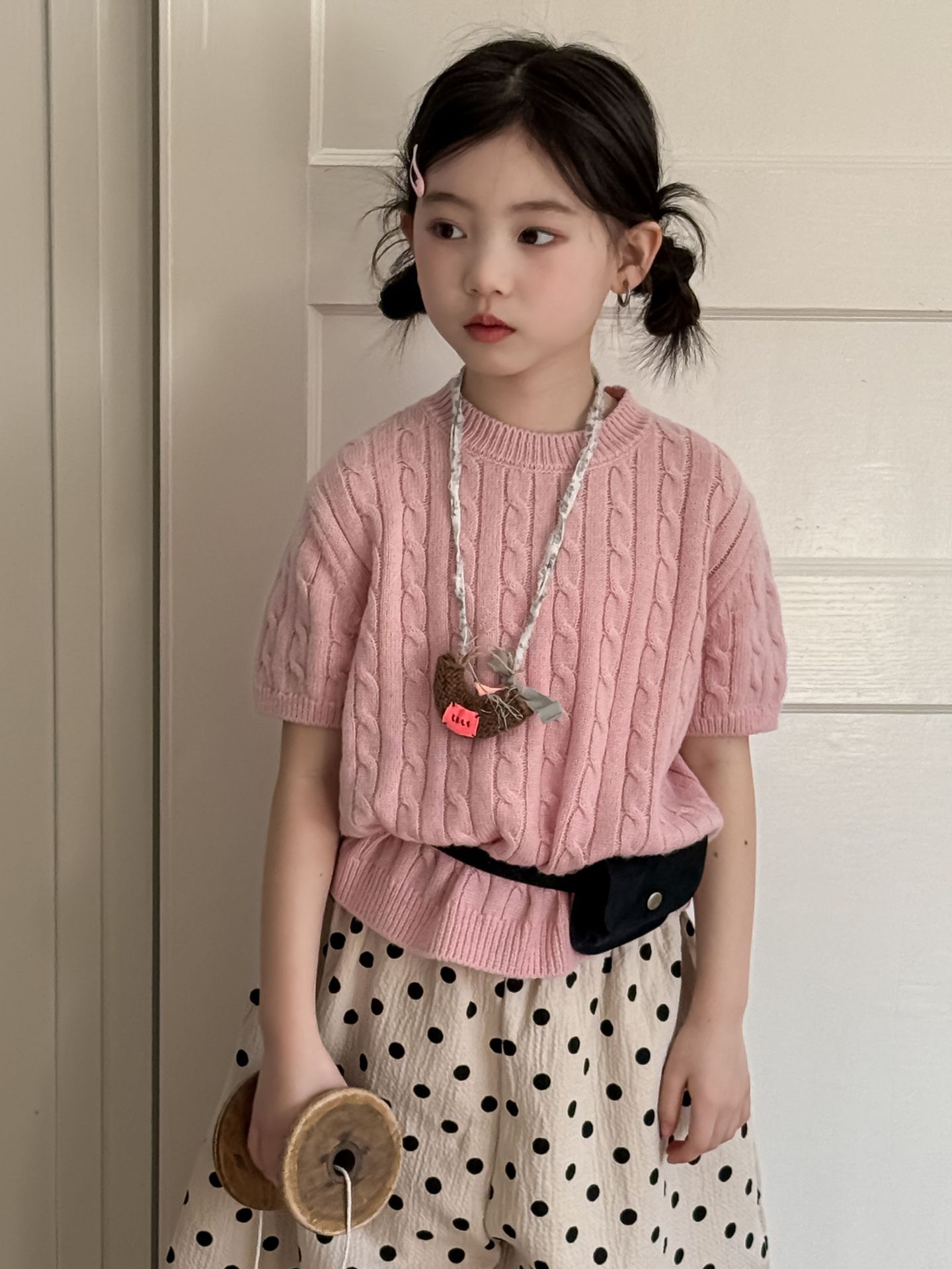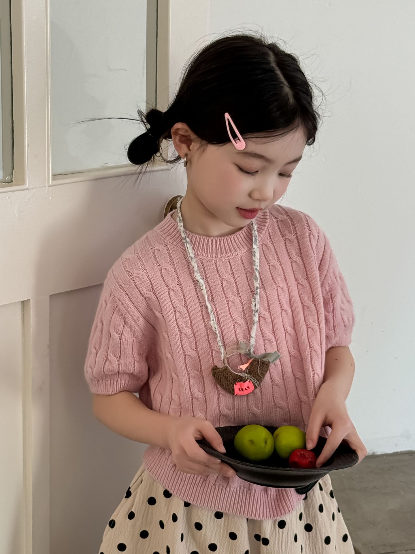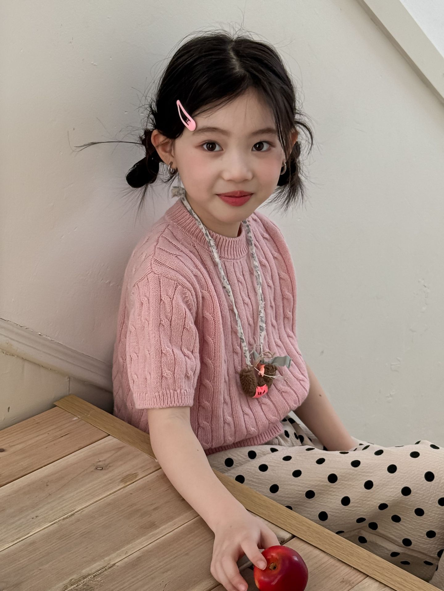꽃과 Xun 아동 의류 소녀 반팔 스웨터 2021 봄 새로운 한국 스타일 유행 다목적 트위스트 니트 스웨터 트렌드스토어 가기