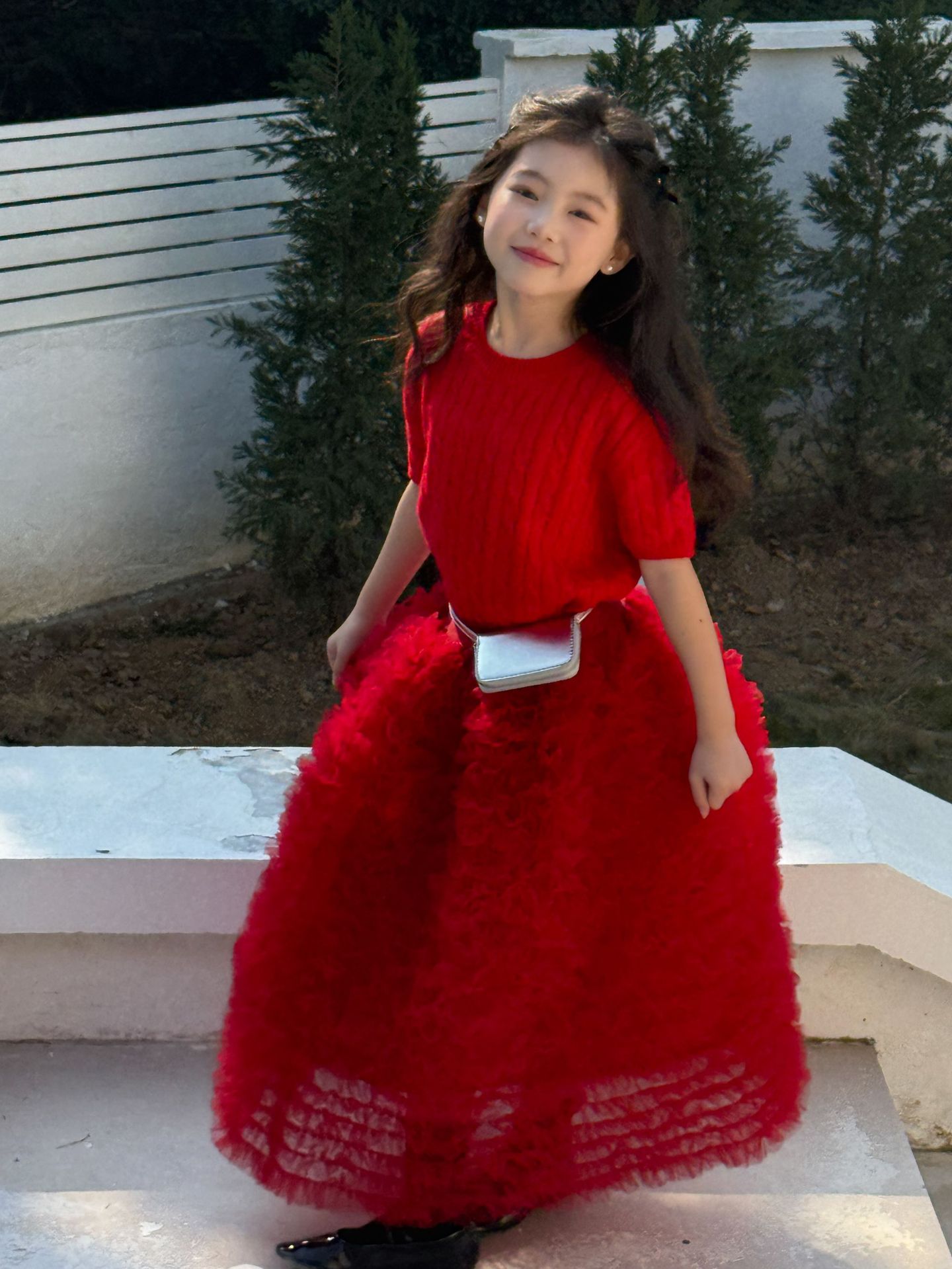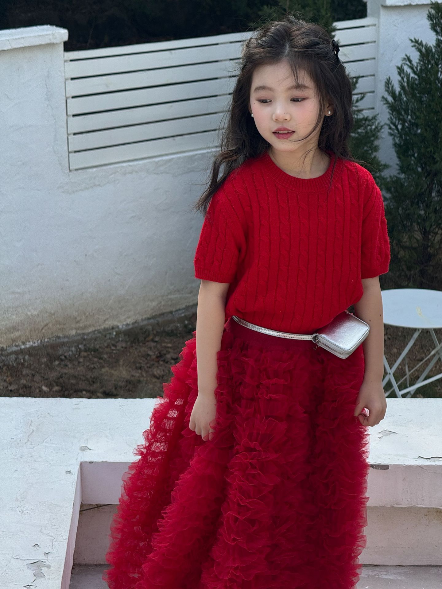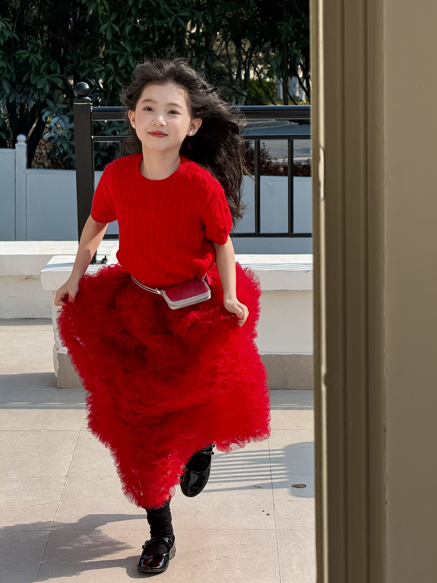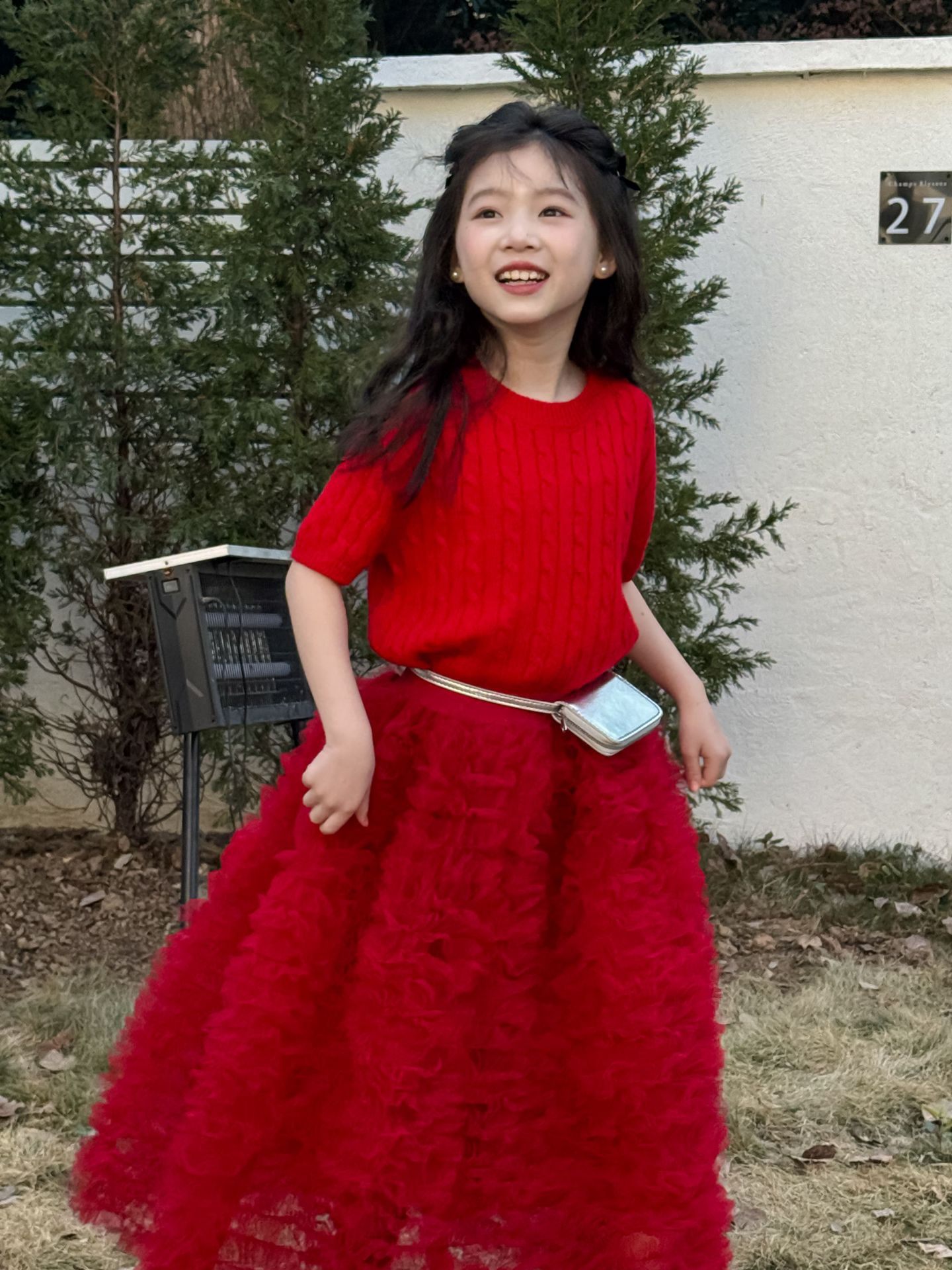 꽃과 Xun 아동 의류 소녀 반팔 스웨터 2021 봄 새로운 한국 스타일 유행 다목적 트위스트 니트 스웨터 트렌드스토어 가기