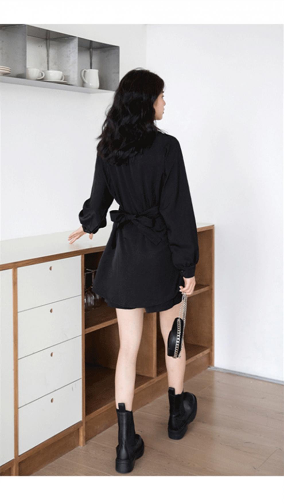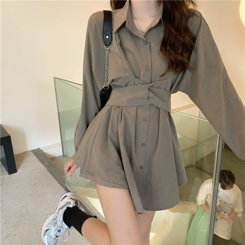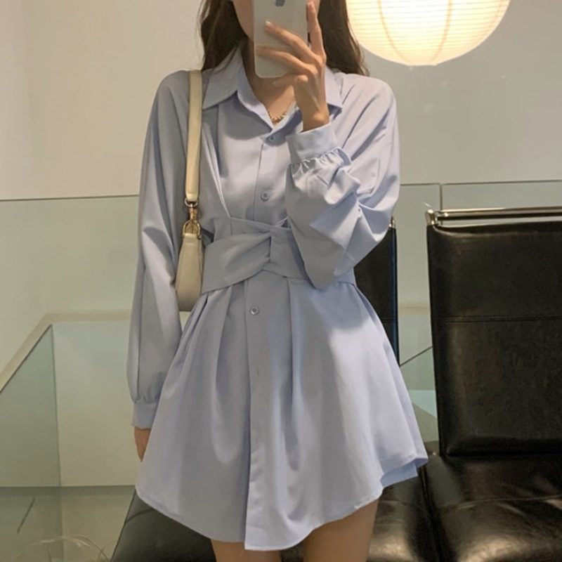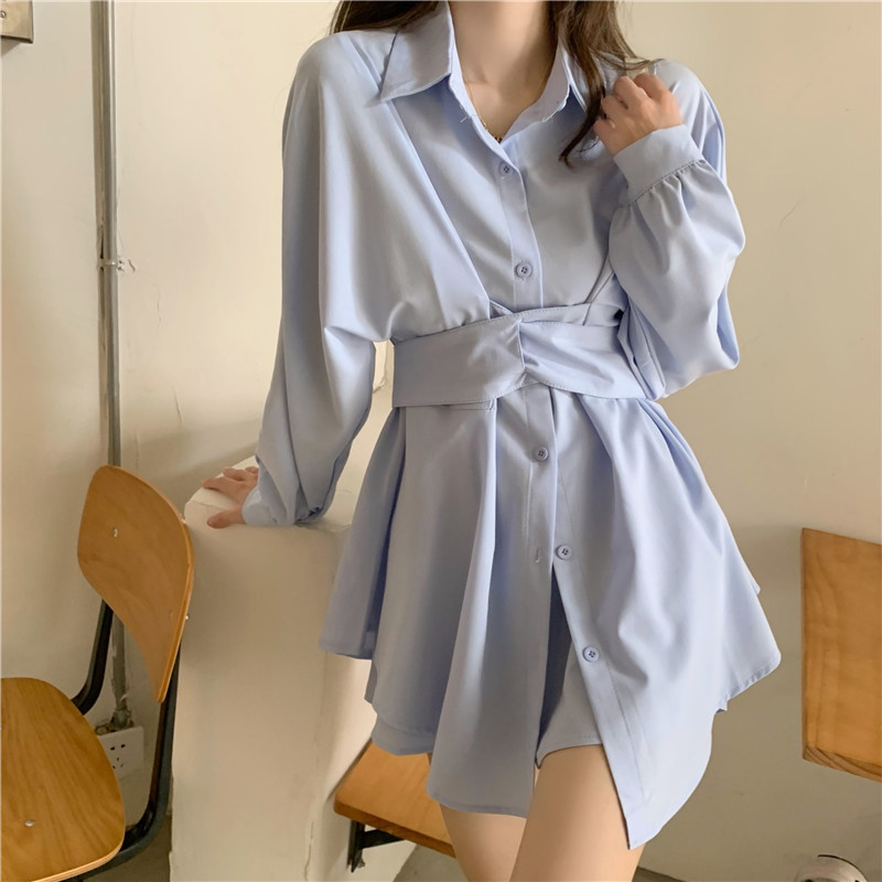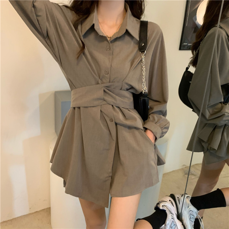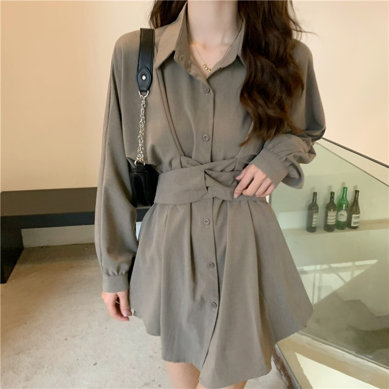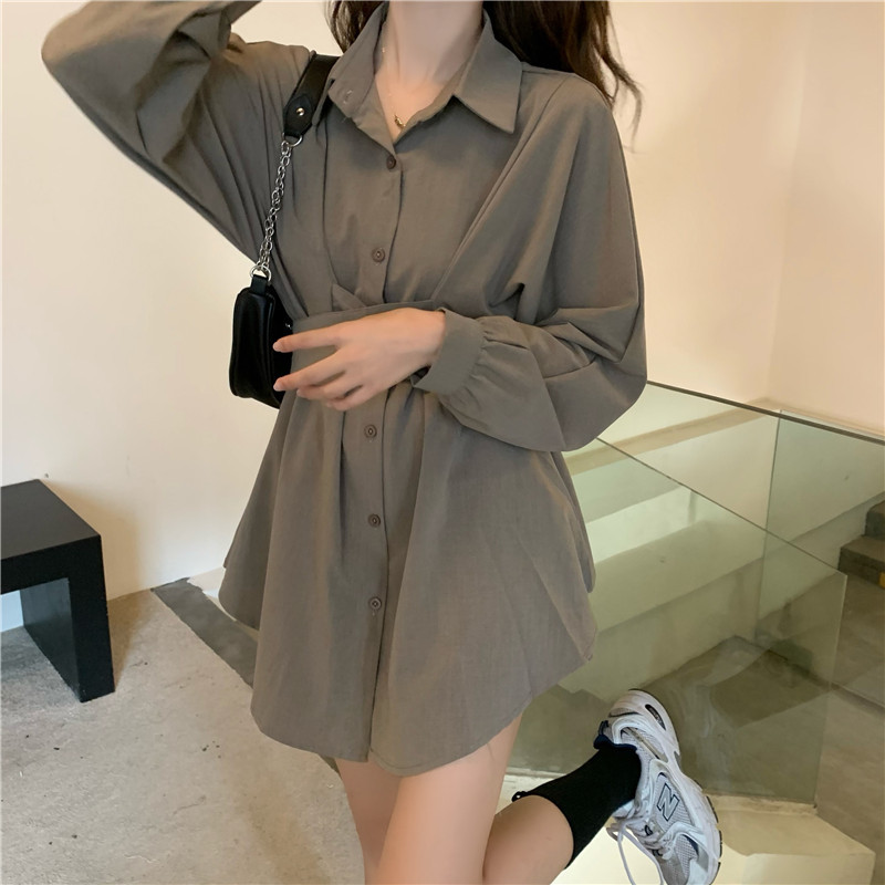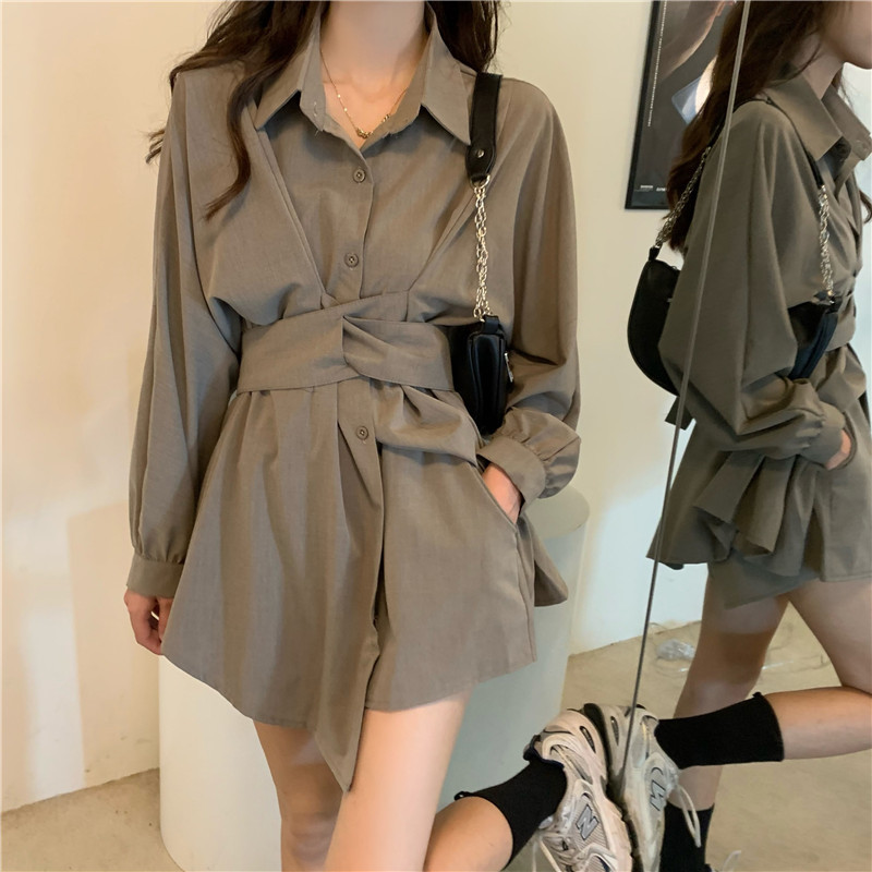 꽉 허리 슬리밍 긴 소매 셔츠 원피스 여성의 봄과 가을 새로운 프랑스 기질 짧은 불규칙한 긴 셔츠스토어 가기