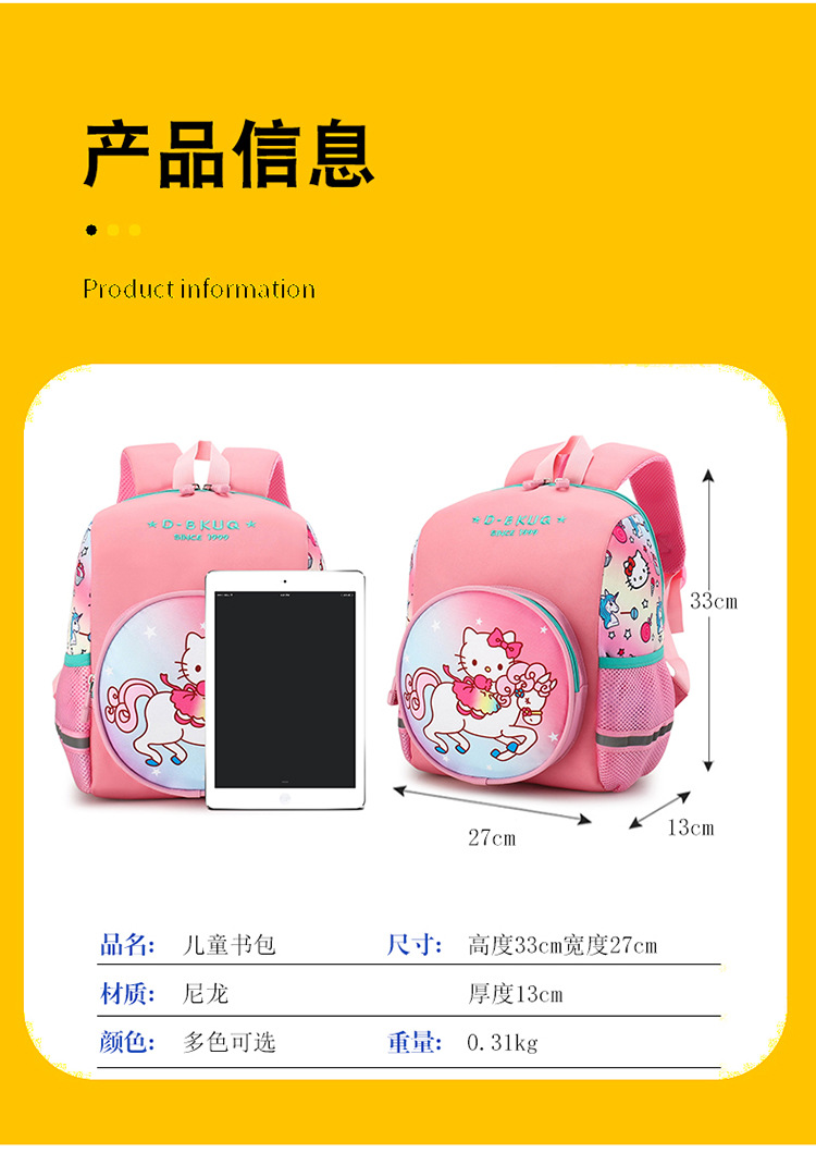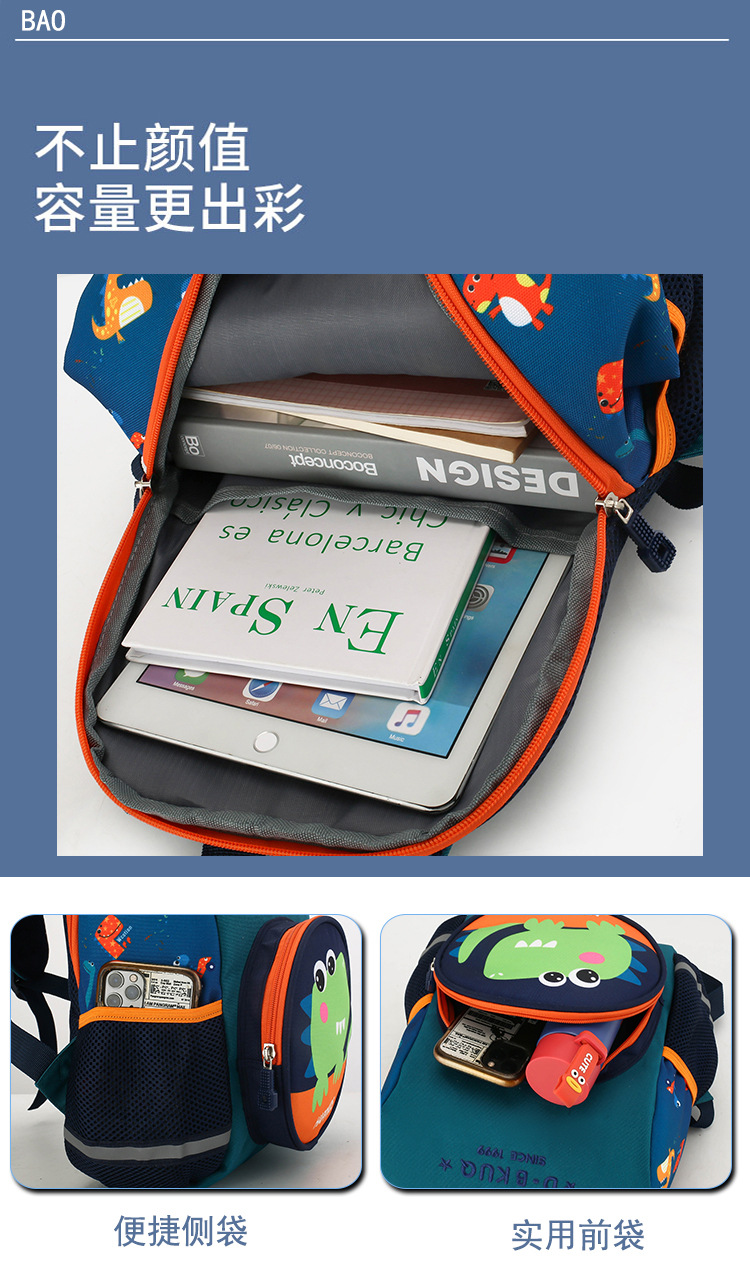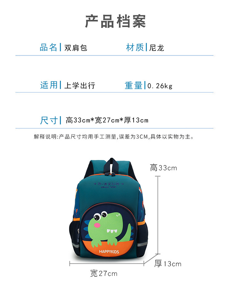 幼儿园书包男童科通可爱恐龙书包学生宝宝小中班2-3-5岁女童书包儿童背包 新款儿童背包可爱卡通幼儿园双肩包小恐龙印花双背书包小学生批发外贸 儿减负轻便