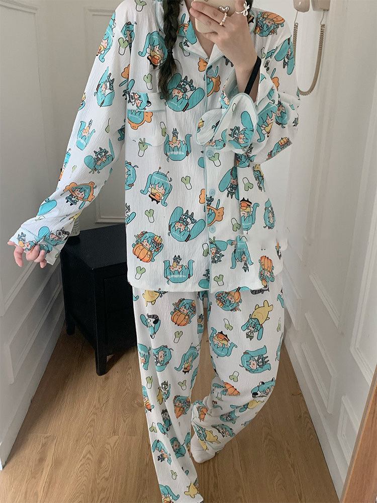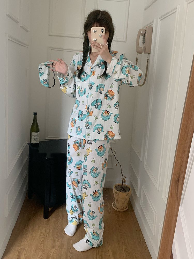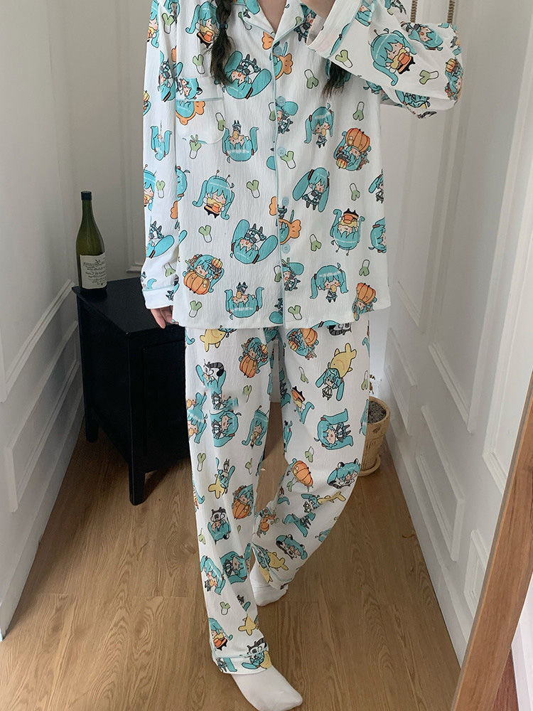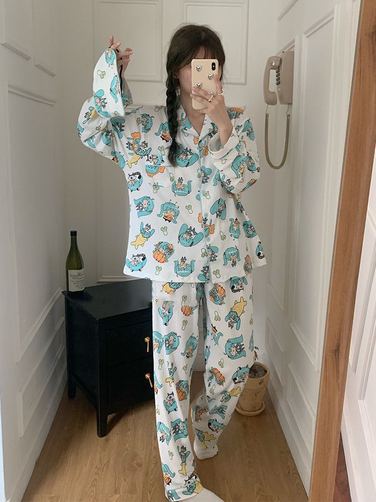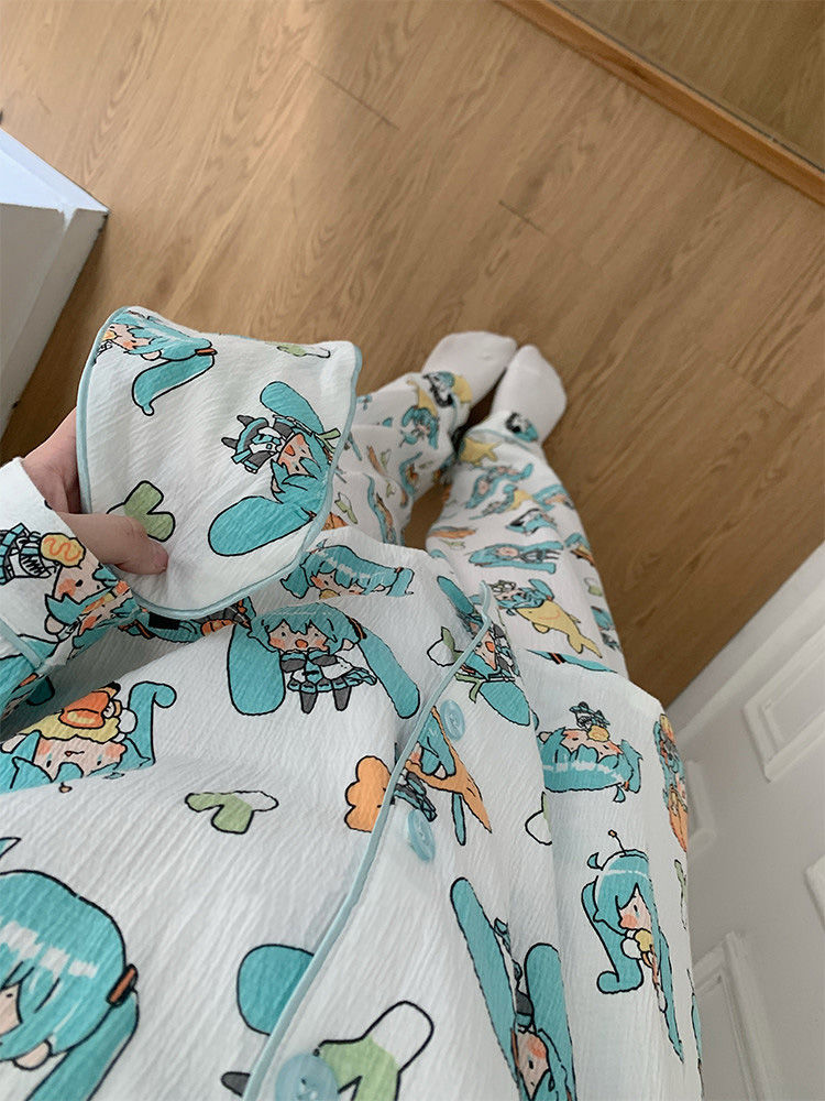 만화 하츠네 미래 잠옷 여성의 봄과 가을 새로운 긴 소매 Ins 일본 스타일 귀여운 달콤한 소녀의 집 옷 외주스토어 가기