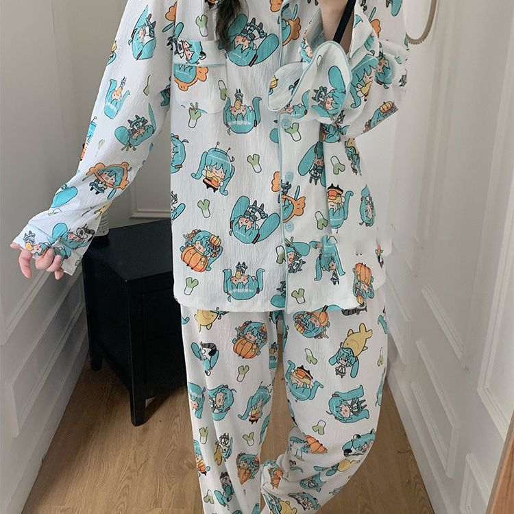 만화 하츠네 미래 잠옷 여성의 봄과 가을 새로운 긴 소매 Ins 일본 스타일 귀여운 달콤한 소녀의 집 옷 외주