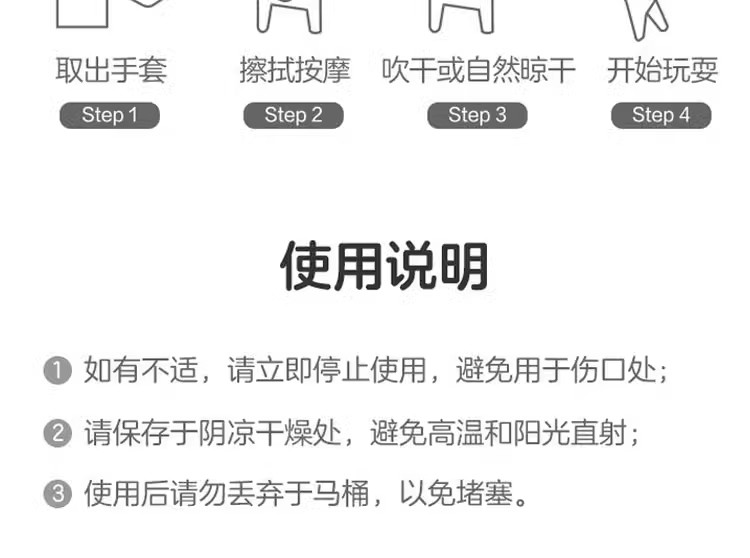 • 물티슈와 장갑 3팩, 1팩은 8회 세탁 가능