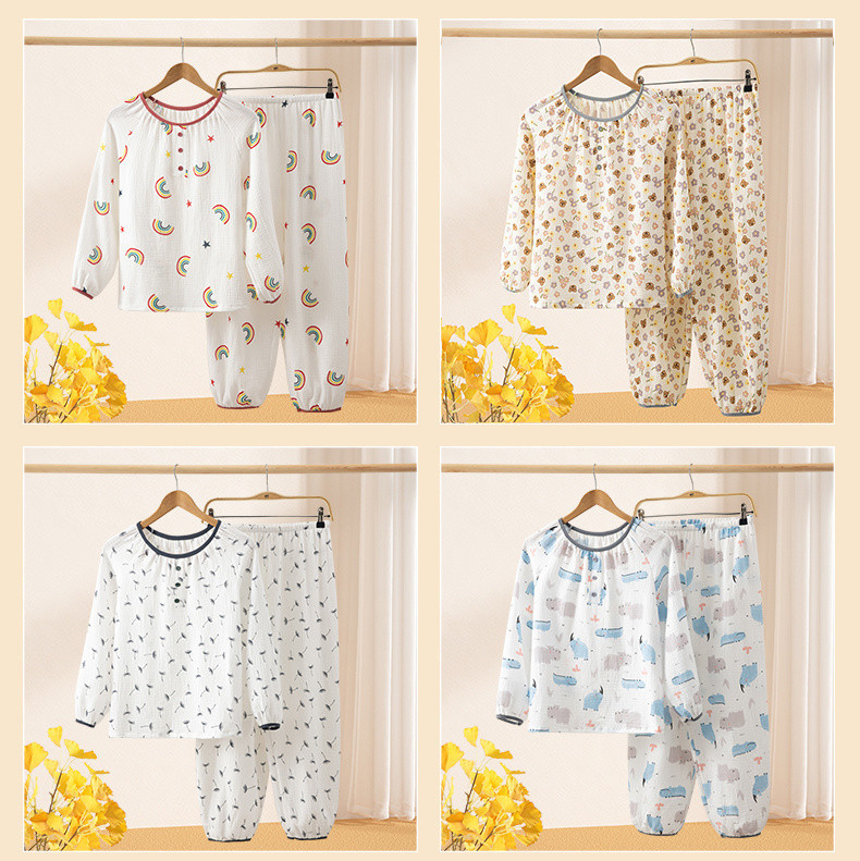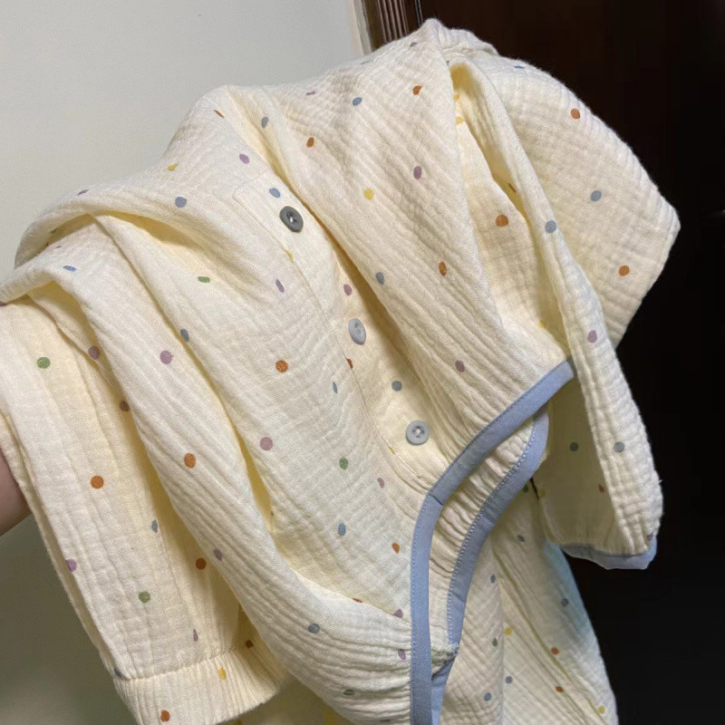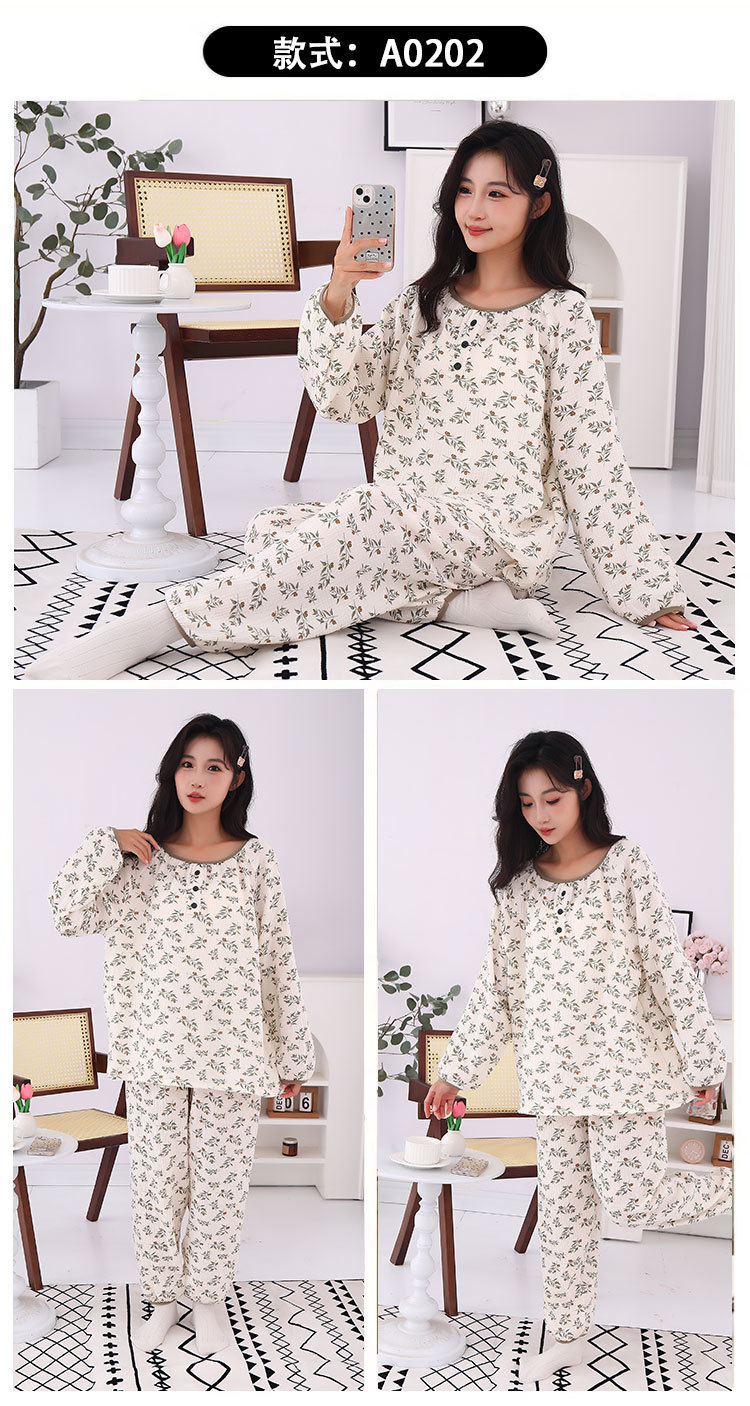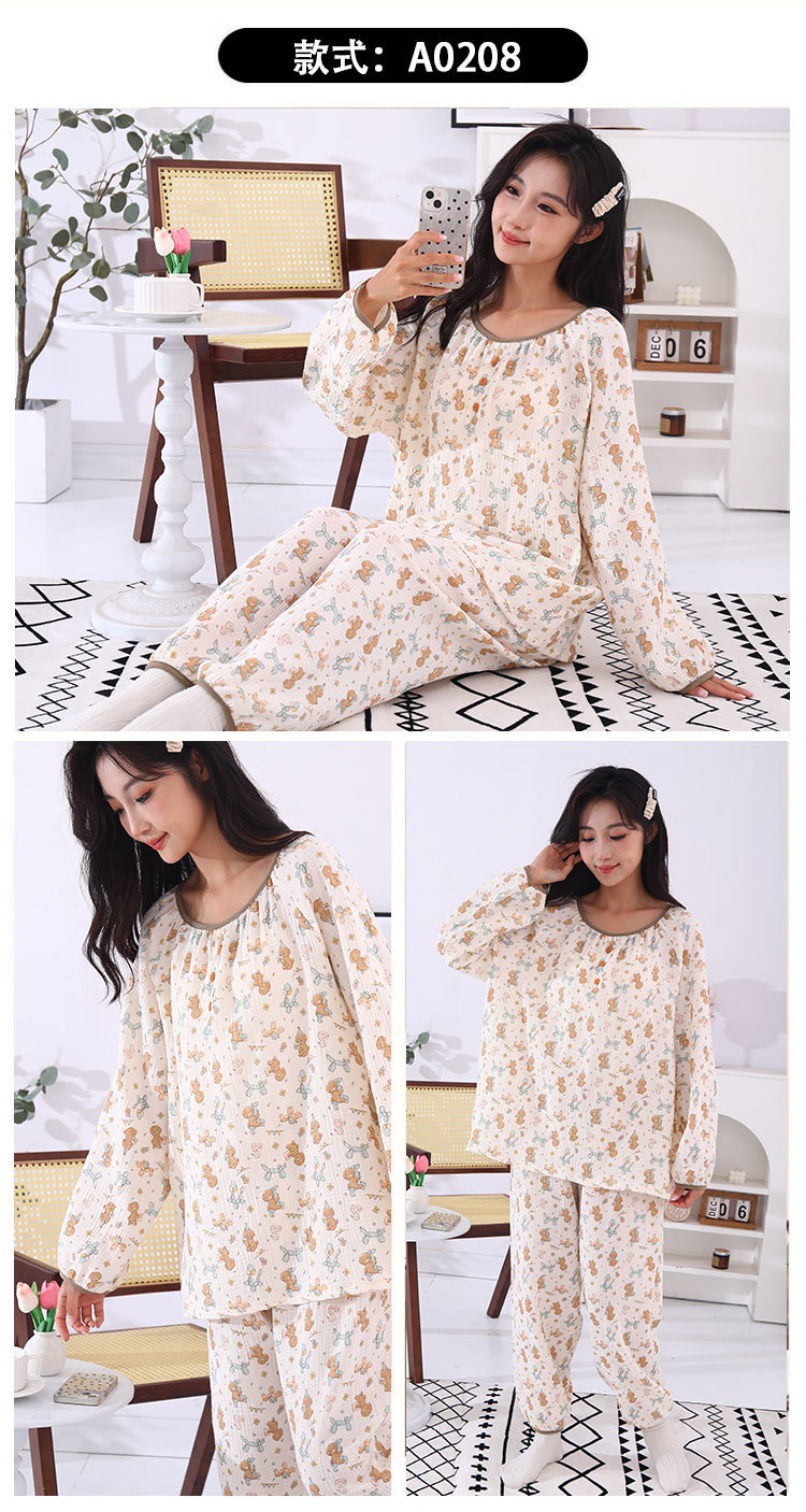 A6C1OO % 면 봄과 가을 느슨한 긴 소매 잠옷 여성용 얇은 면 원사 더블 거즈 코튼 리넨 홈 의류스토어 가기