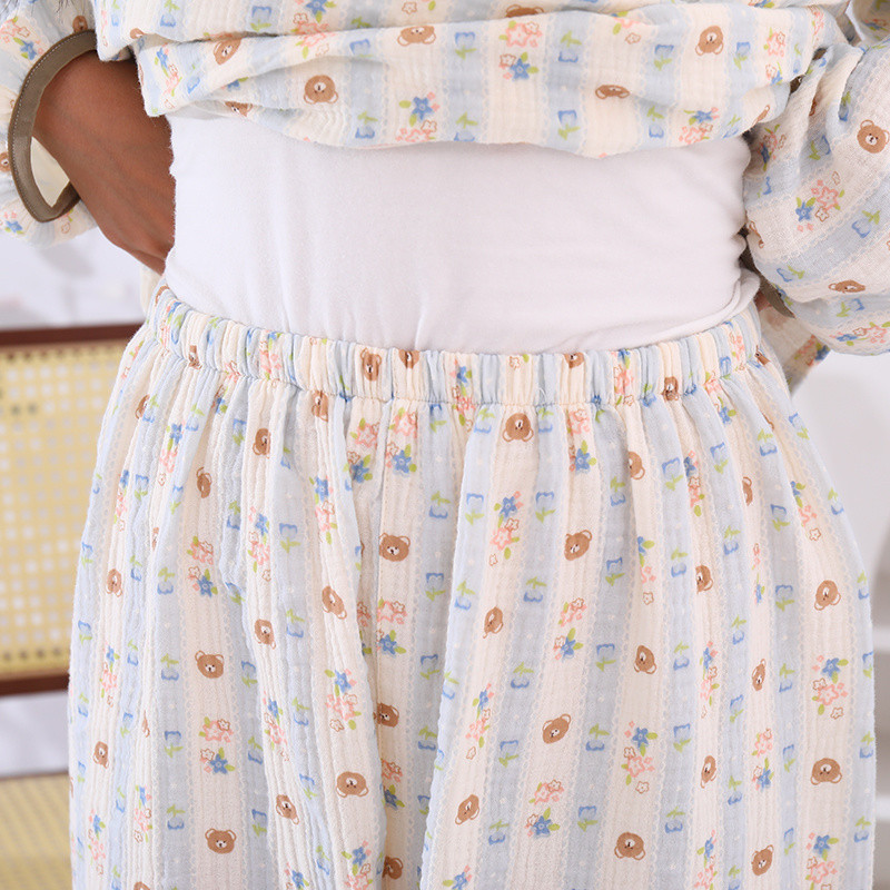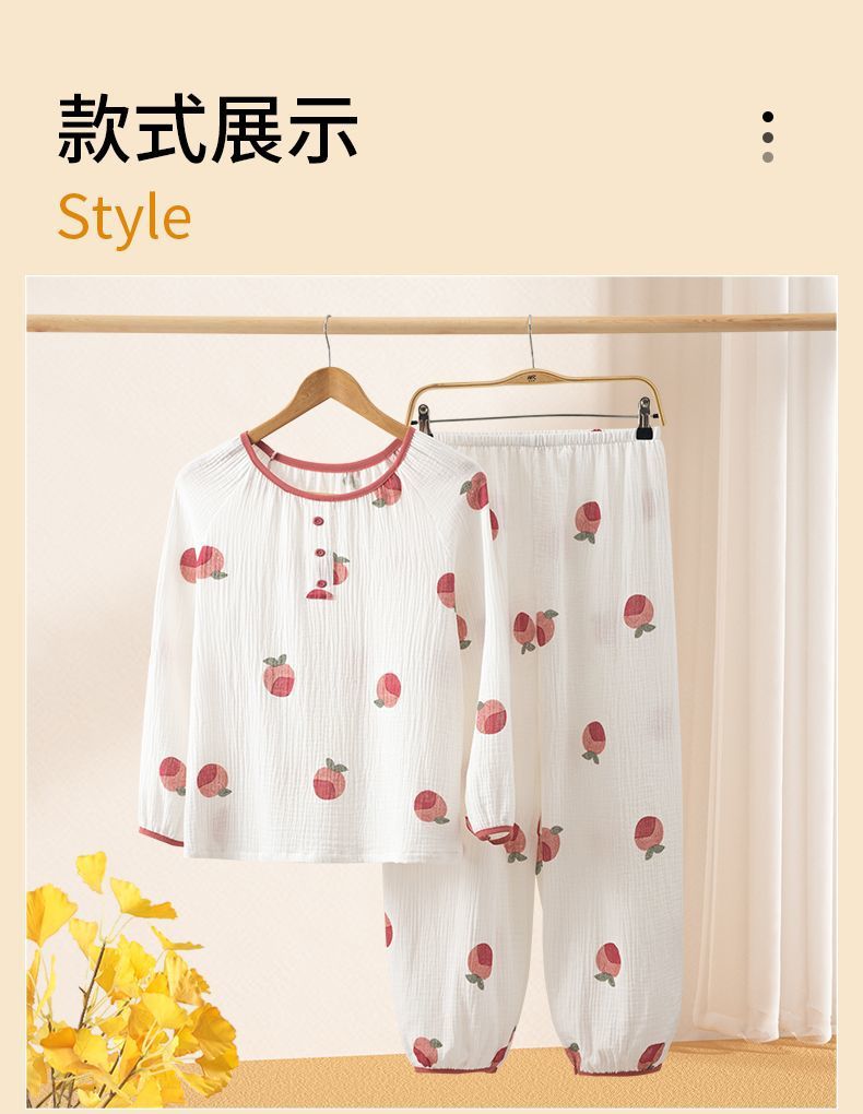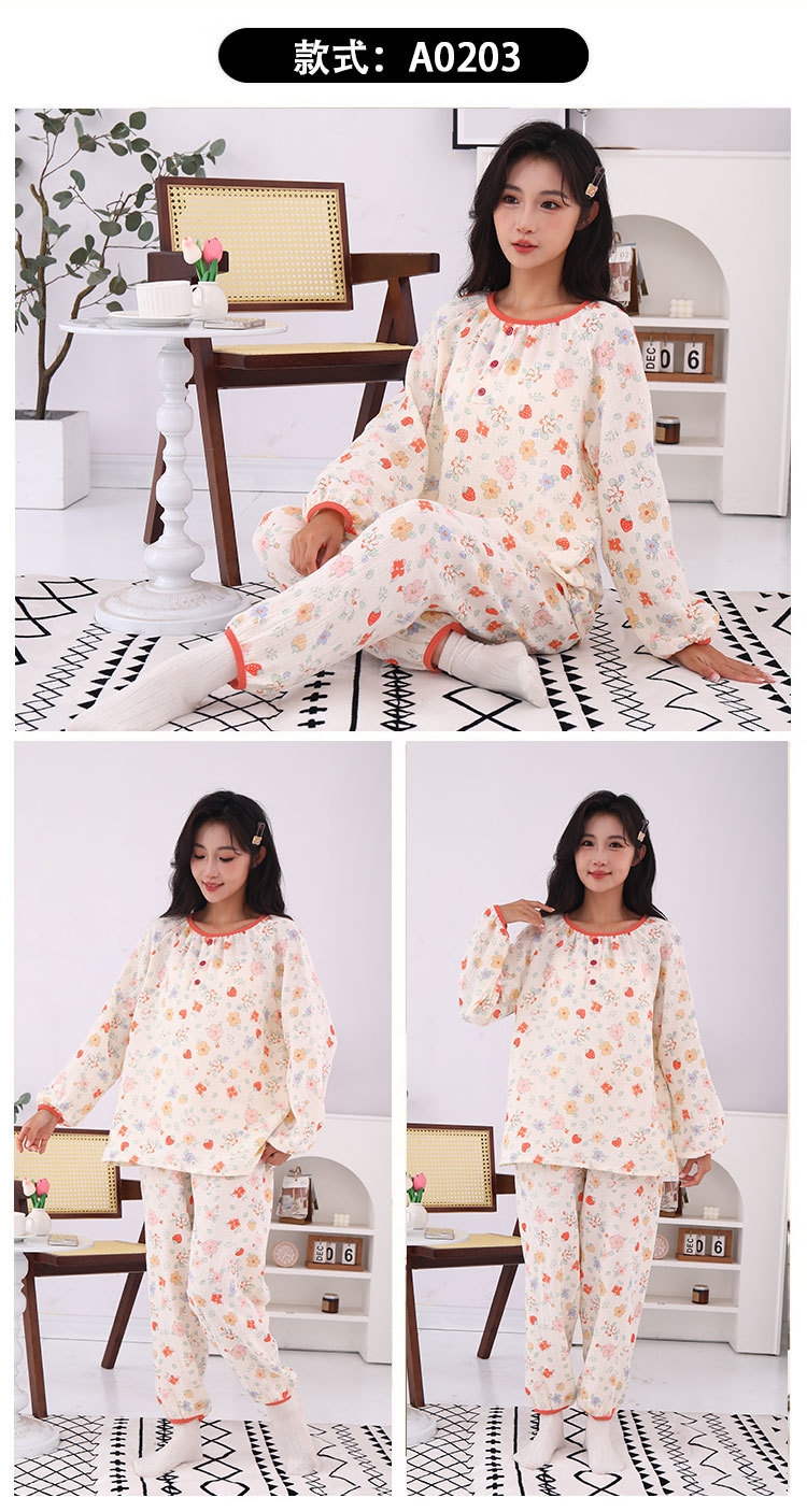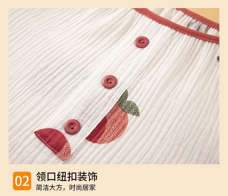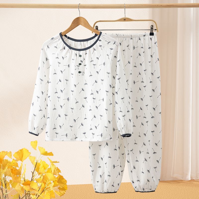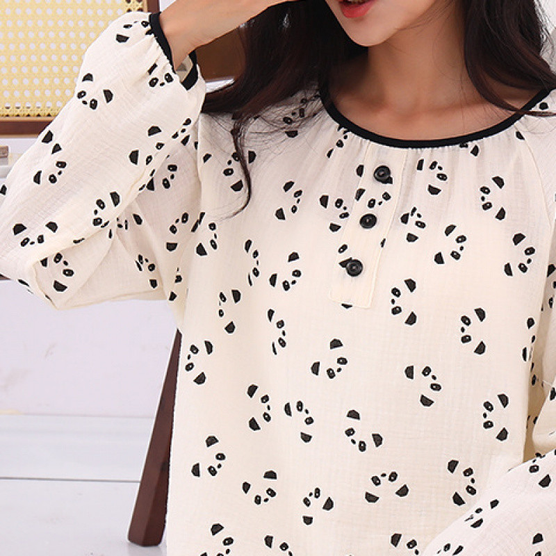 A6C1OO % 면 봄과 가을 느슨한 긴 소매 잠옷 여성용 얇은 면 원사 더블 거즈 코튼 리넨 홈 의류