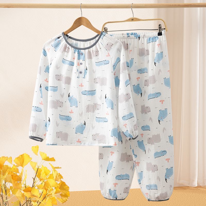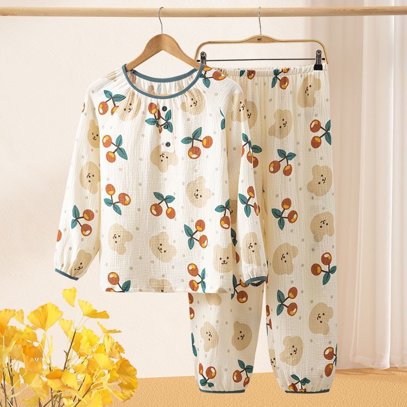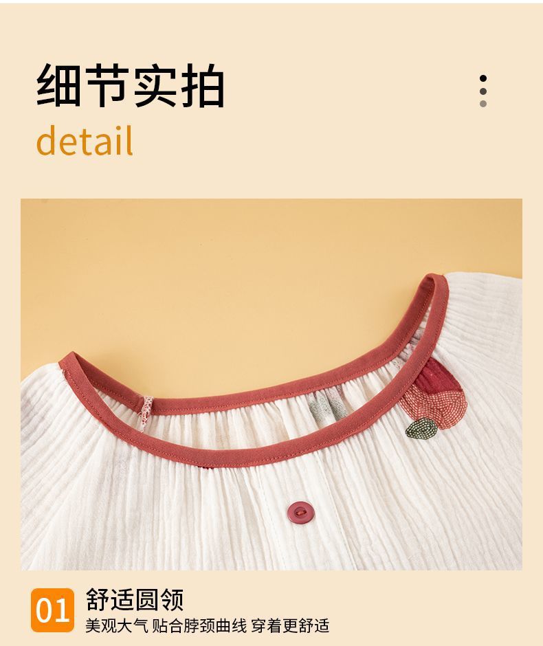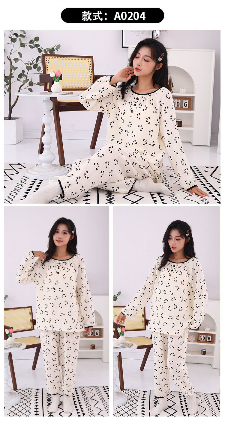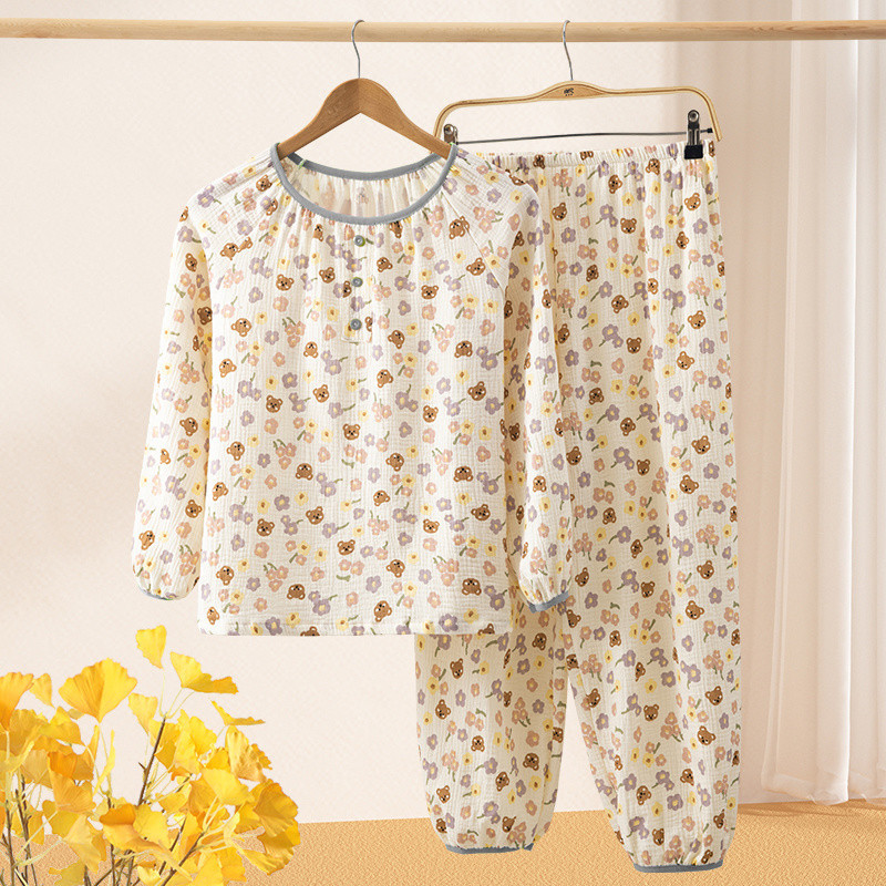 A6C1OO % 면 봄과 가을 느슨한 긴 소매 잠옷 여성용 얇은 면 원사 더블 거즈 코튼 리넨 홈 의류