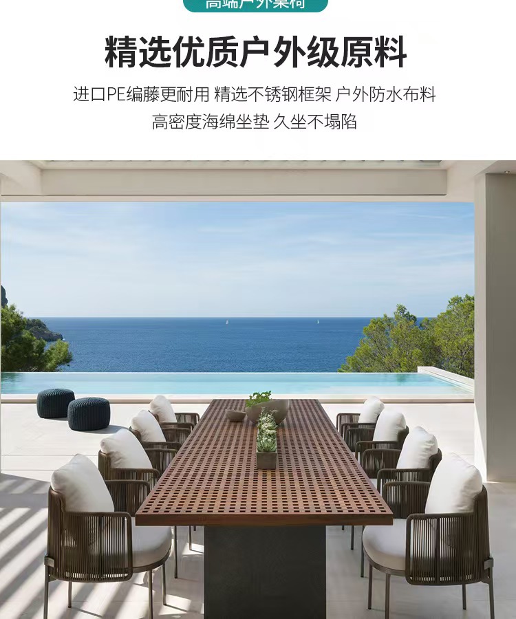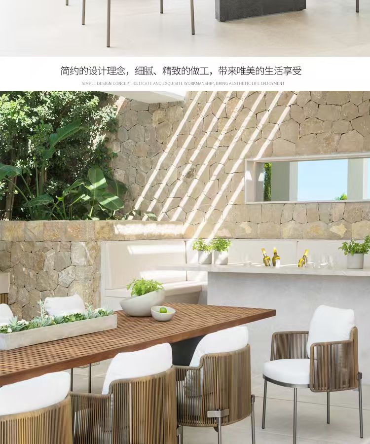 야외 테이블과 의자 안뜰 스테인리스 티크 등나무 레저 야외 테이블 및 의자 테라스 방수 선 스크린 빌라 정원