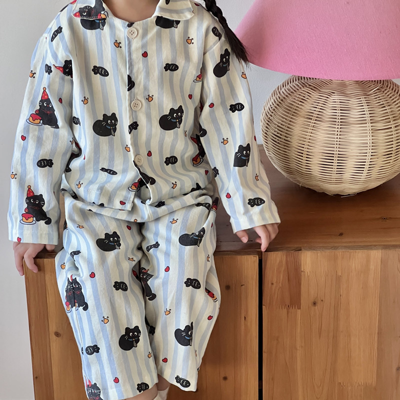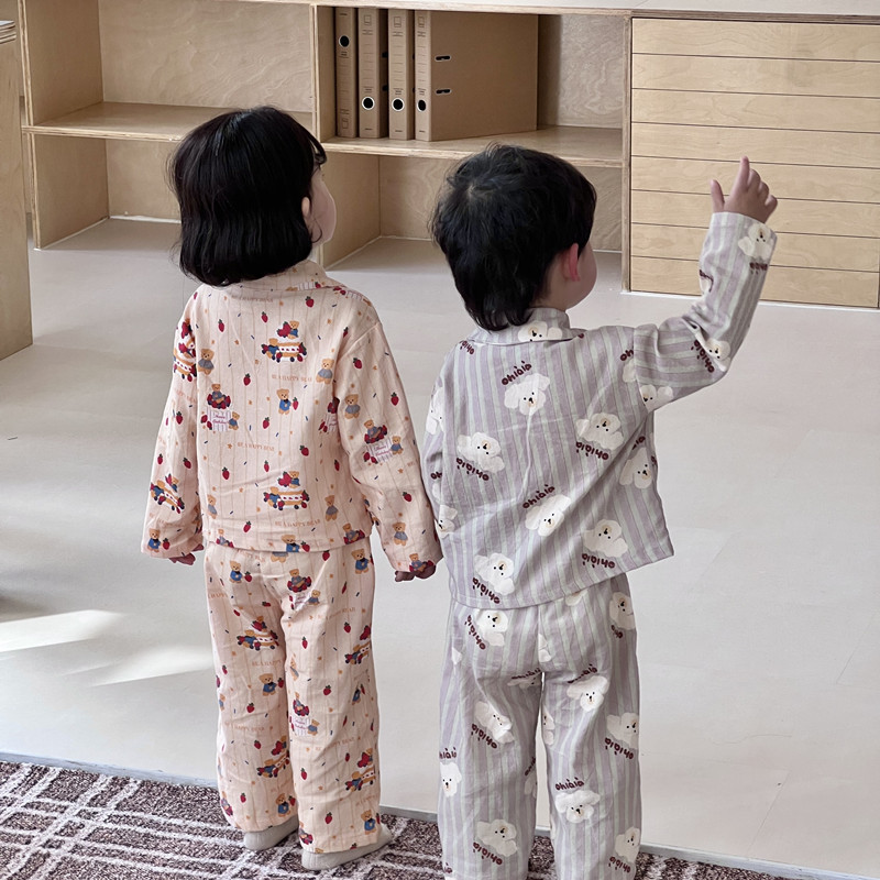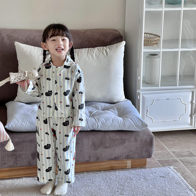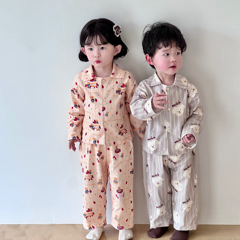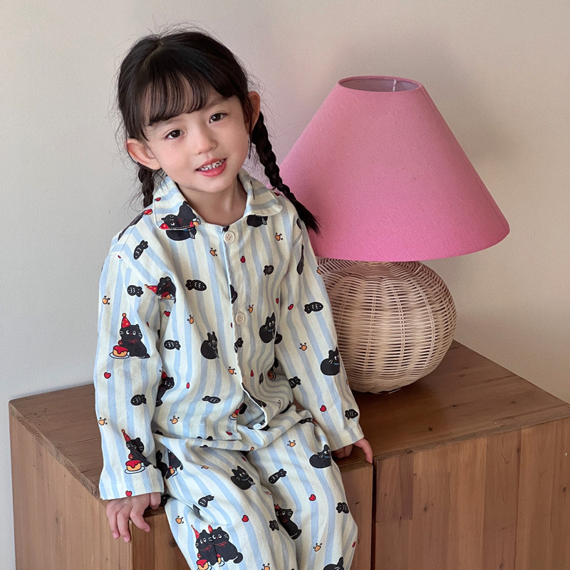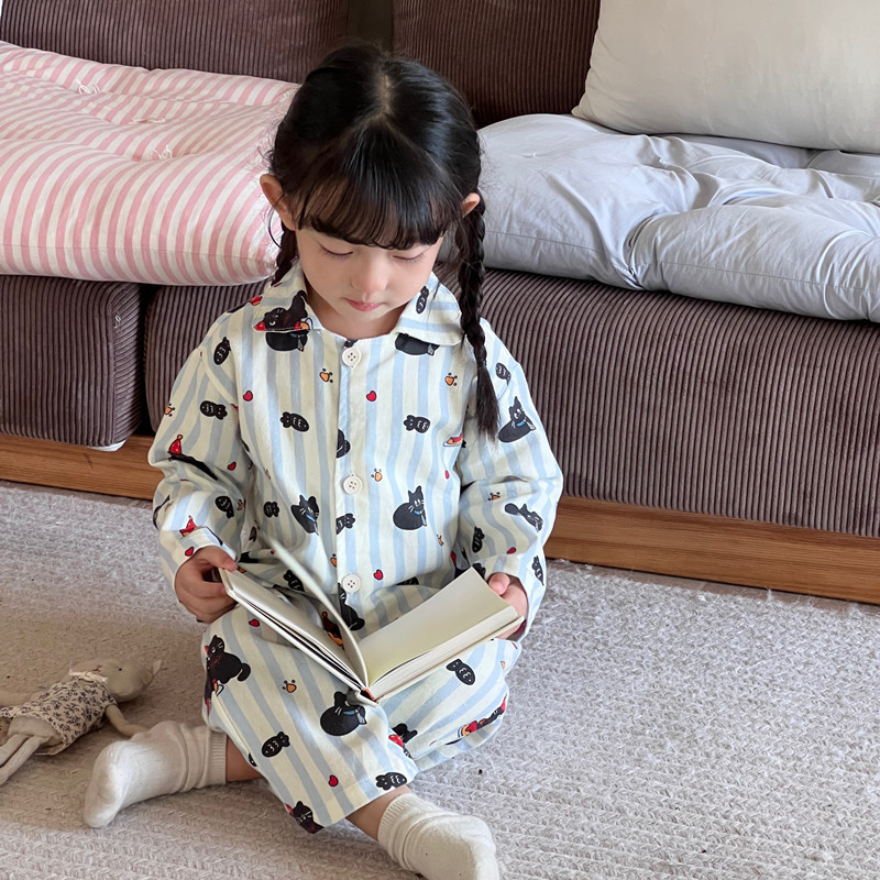 어린이 홈웨어 세트 한국 스타일 봄 가을 잠옷 남녀 공용 부모 자식 만화 긴팔 에어컨 의류스토어 가기