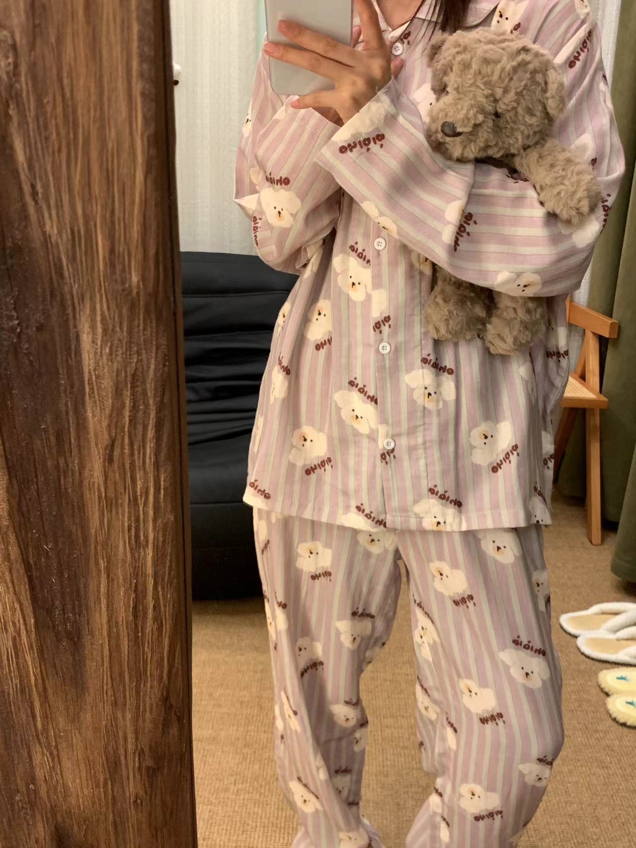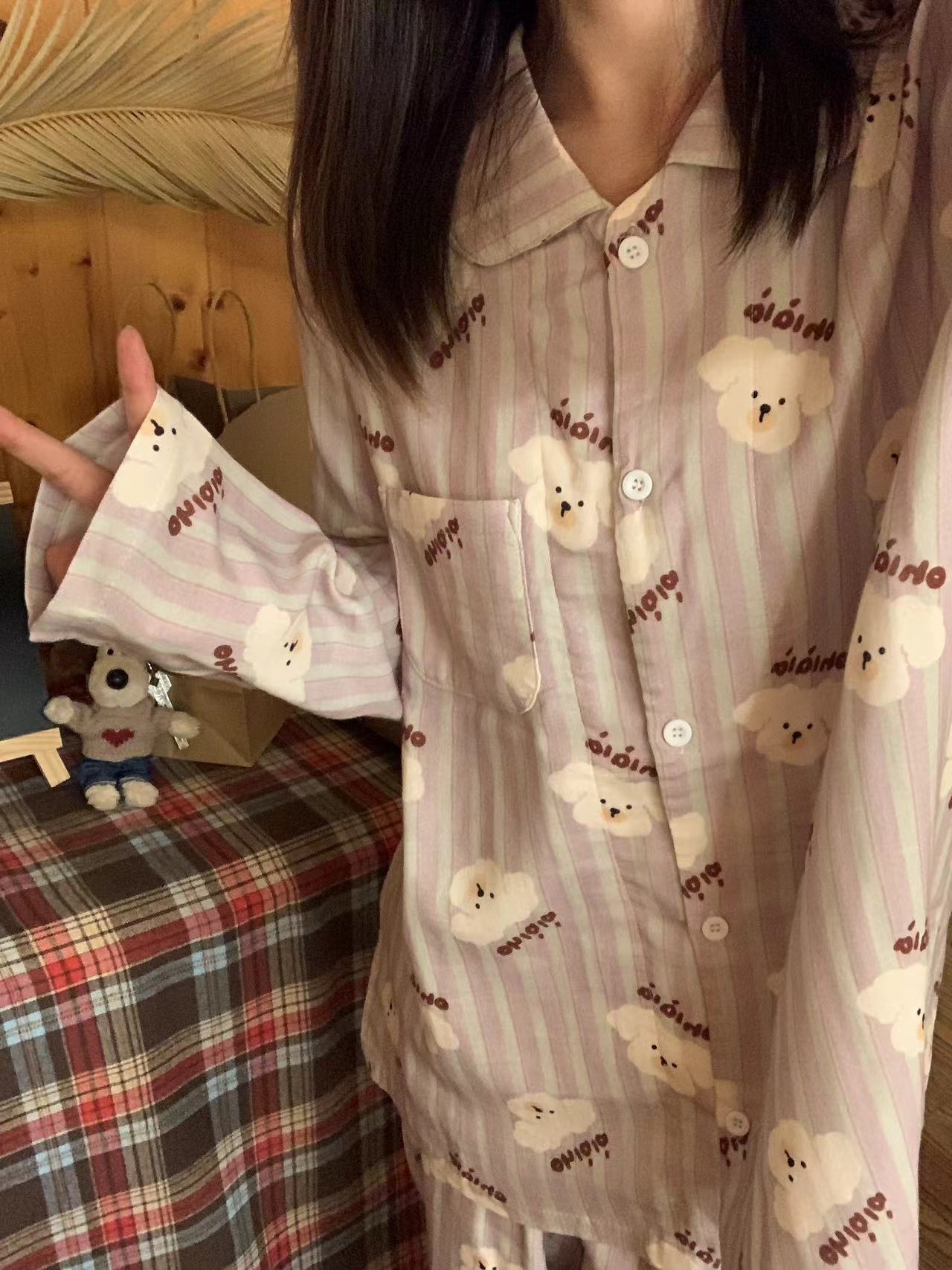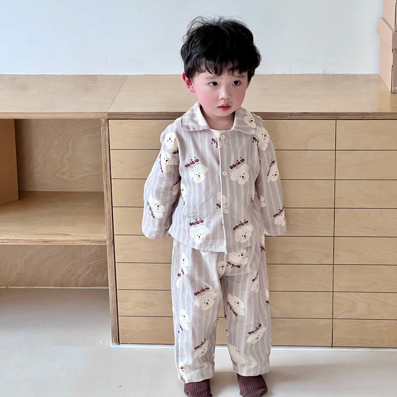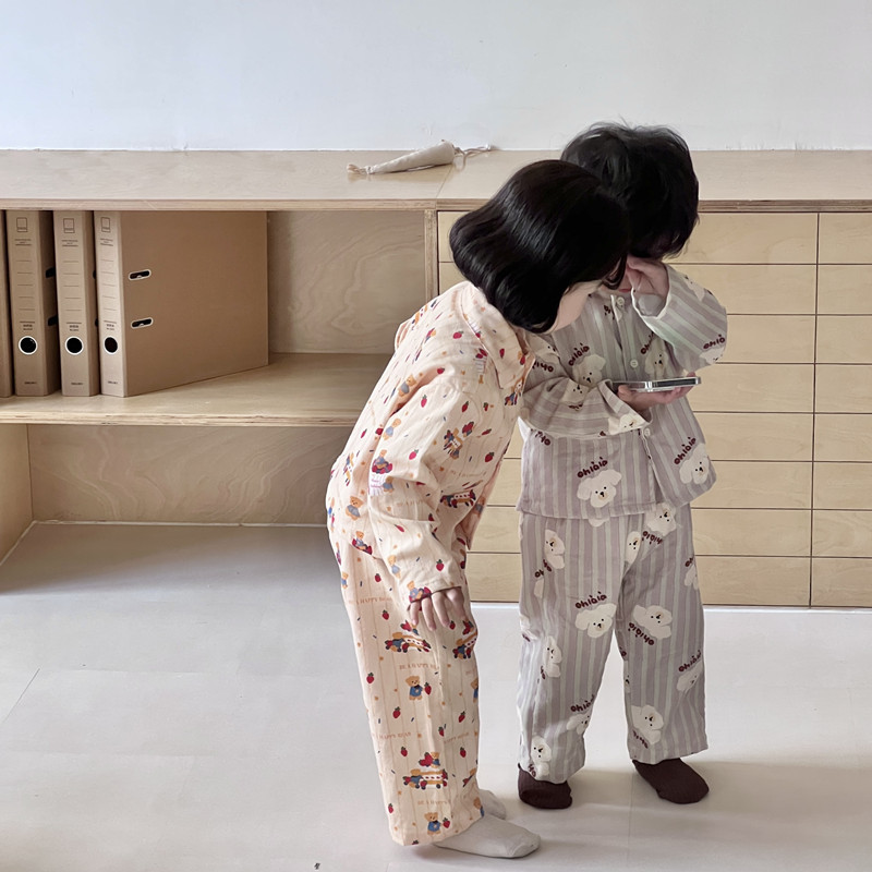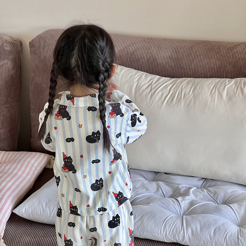 어린이 홈웨어 세트 한국 스타일 봄 가을 잠옷 남녀 공용 부모 자식 만화 긴팔 에어컨 의류스토어 가기