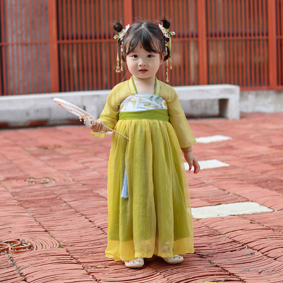 소녀 한푸 여름 2025 새로운 중국 스타일 슈퍼 요정 어린이 고대 원피스 루 탕 세트 아기 소녀를위한 긴 소매 골동품 원피스스토어 가기