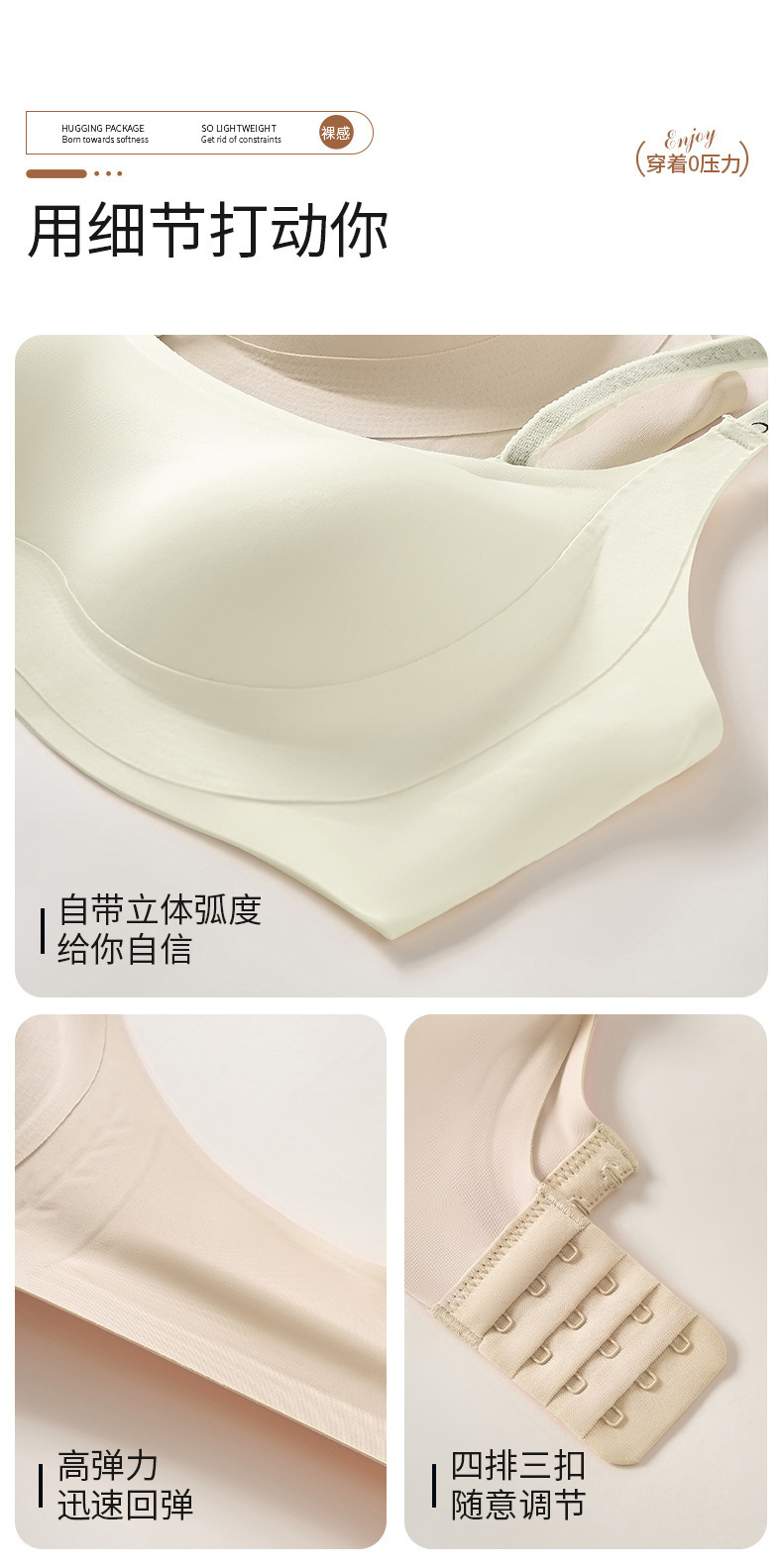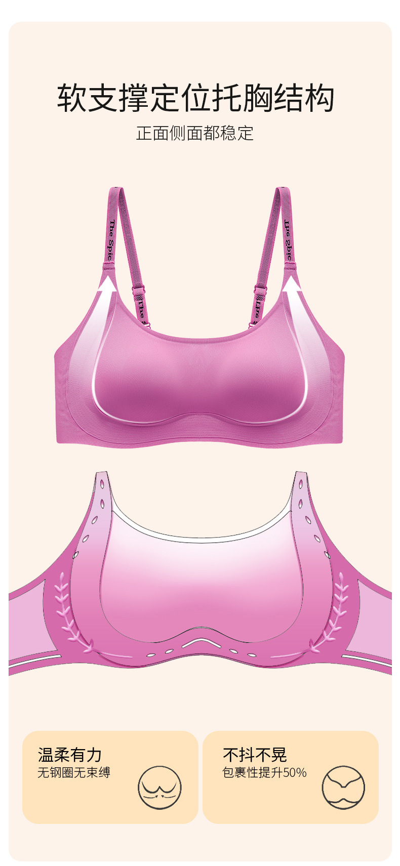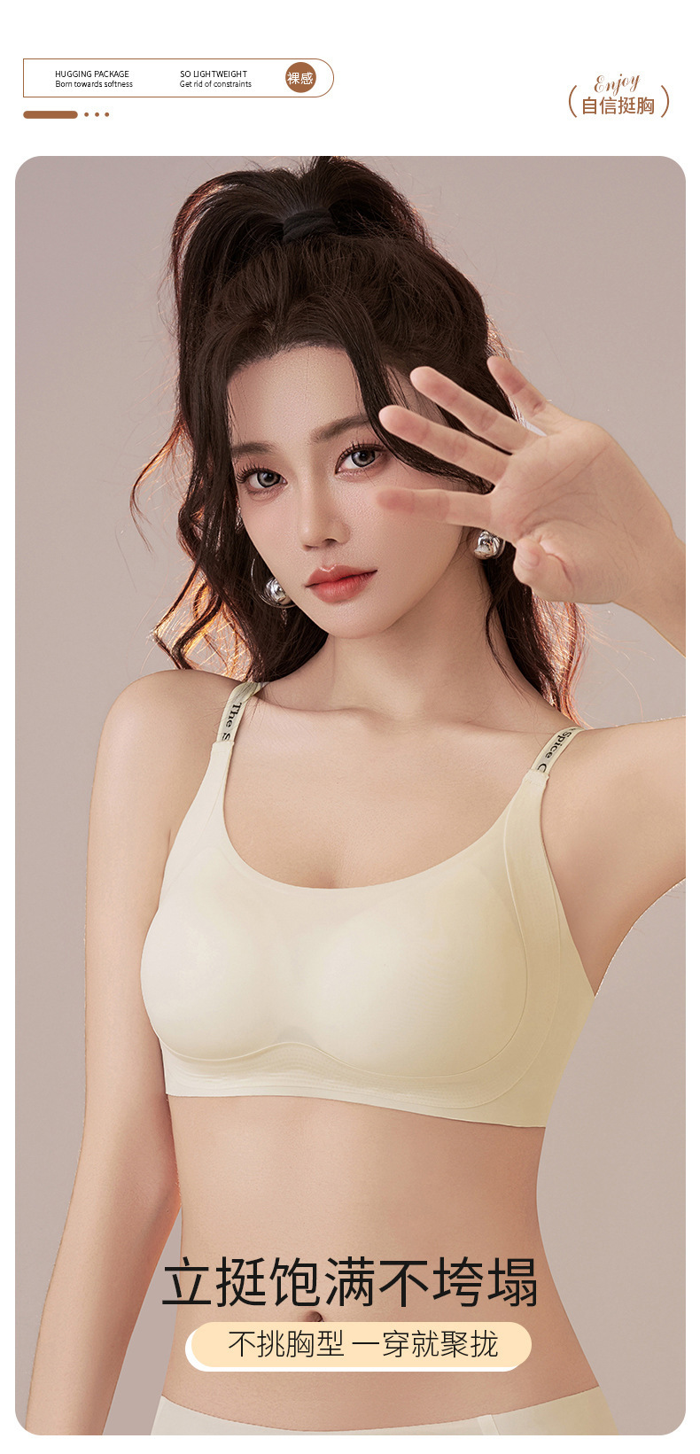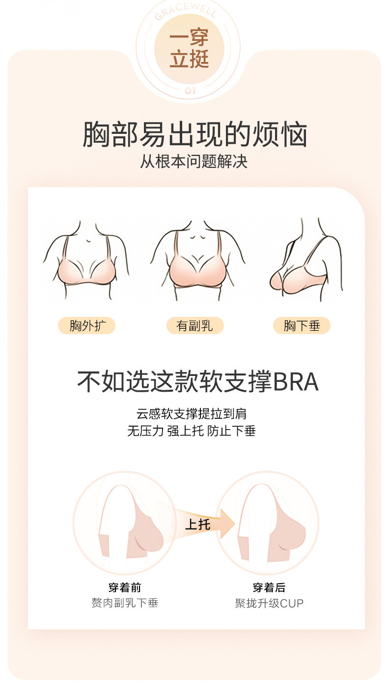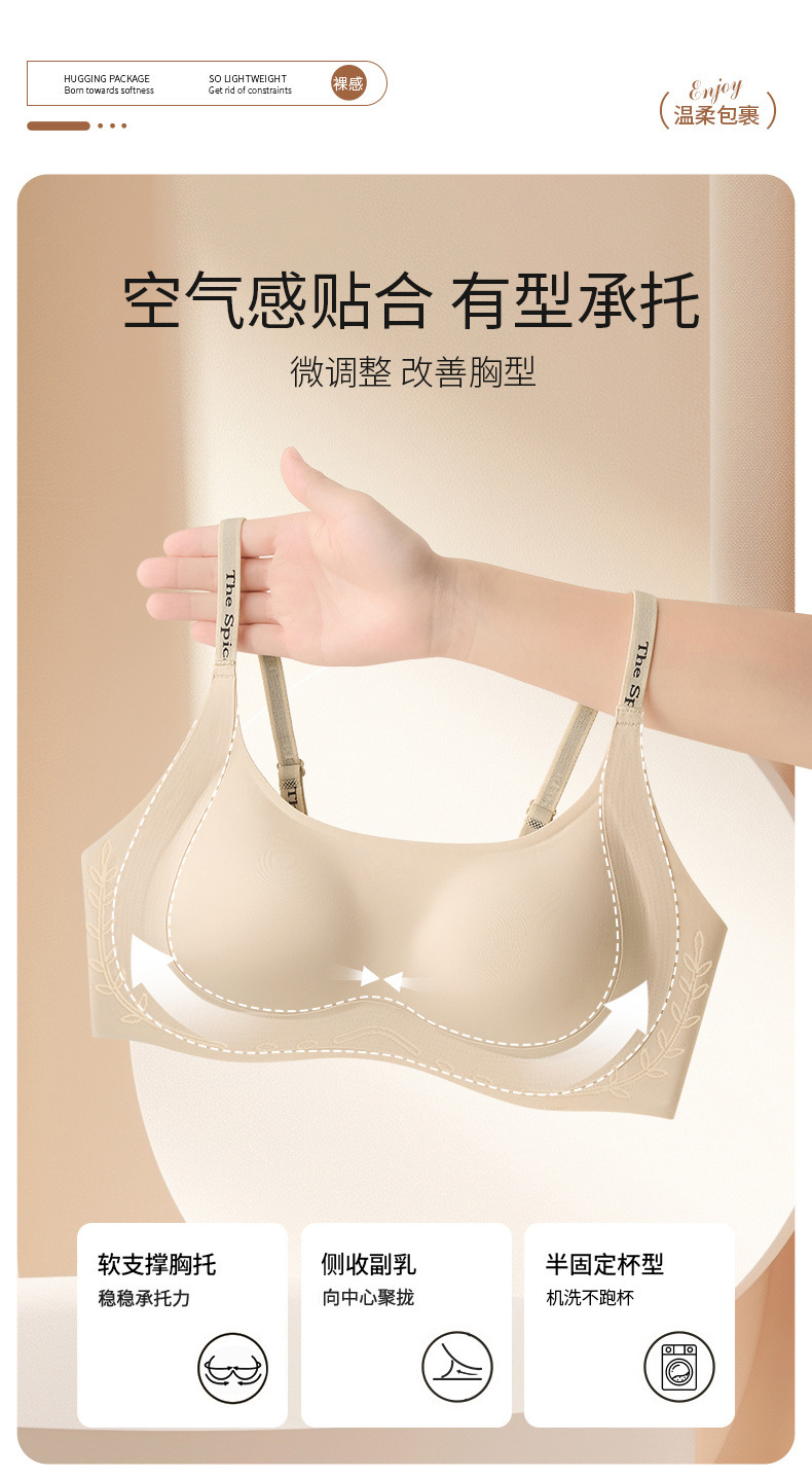 작은 가슴, 테두리 없음, 보조 가슴 지지대, 처짐 방지, 반고정 브라, 컵 브라를 가진 여성용 심리스 속옷