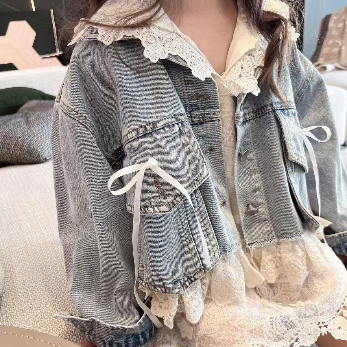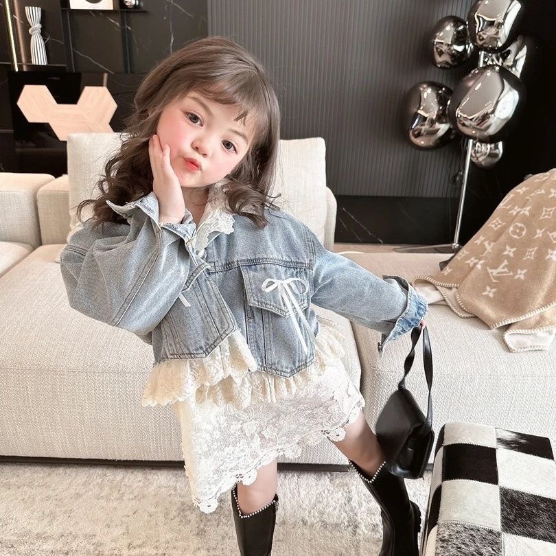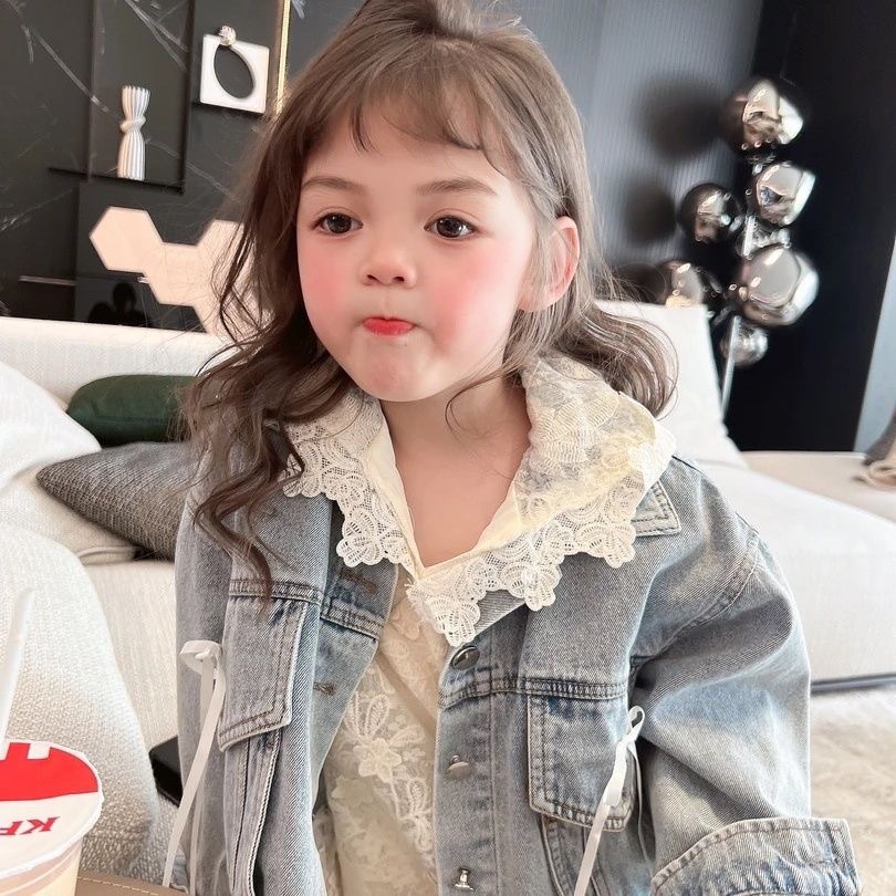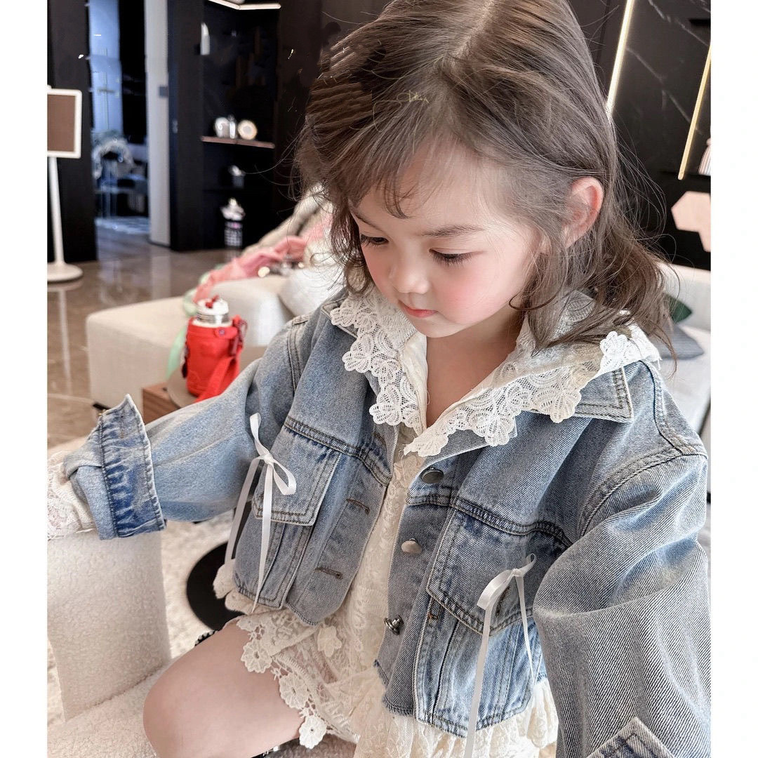 소녀 코트 2025 봄 가을 코트 그룹 세트 레이스 꽃 청소년 데님 코트 봄과 가을 여자 올 매치스토어 가기