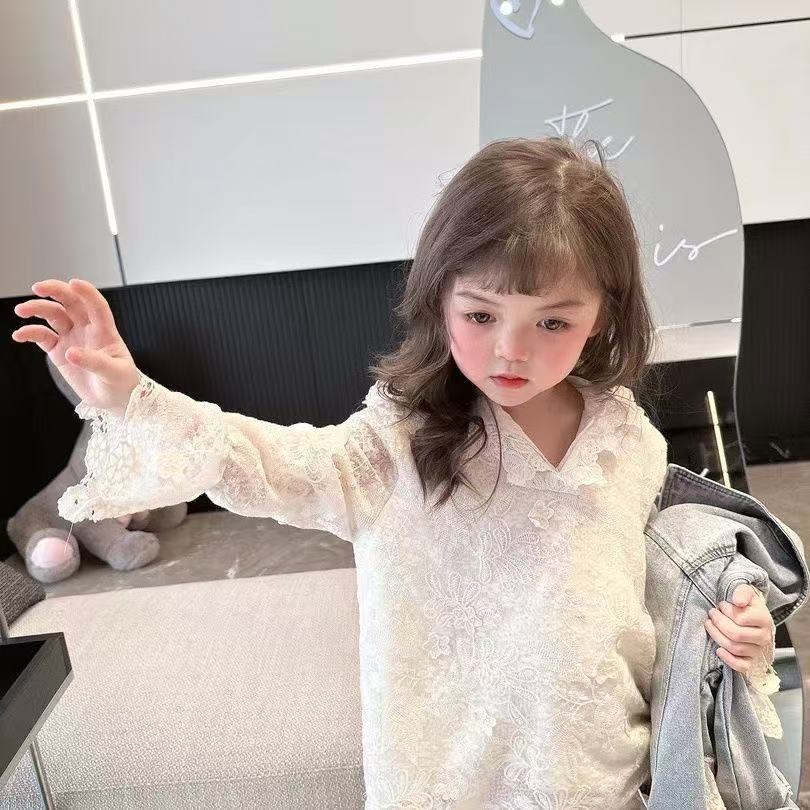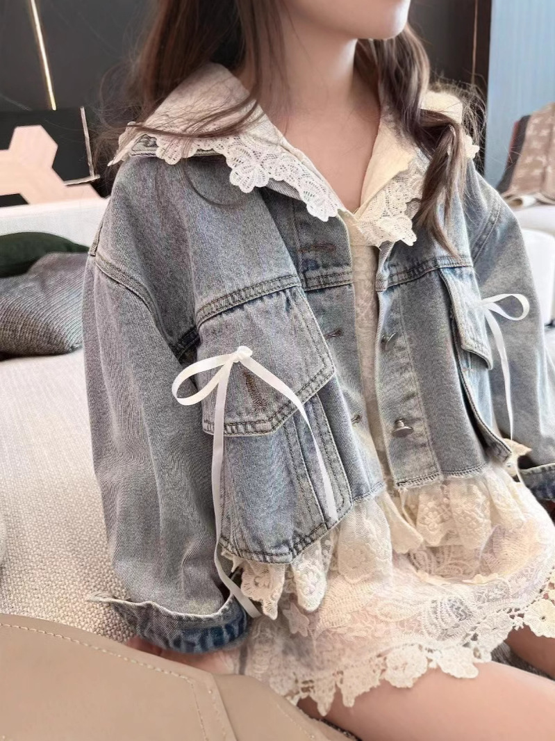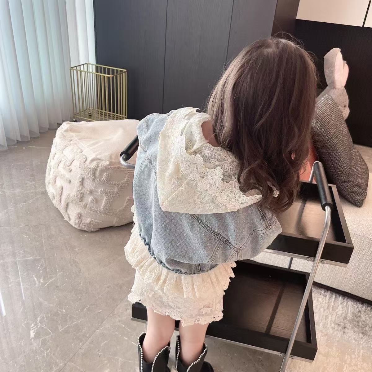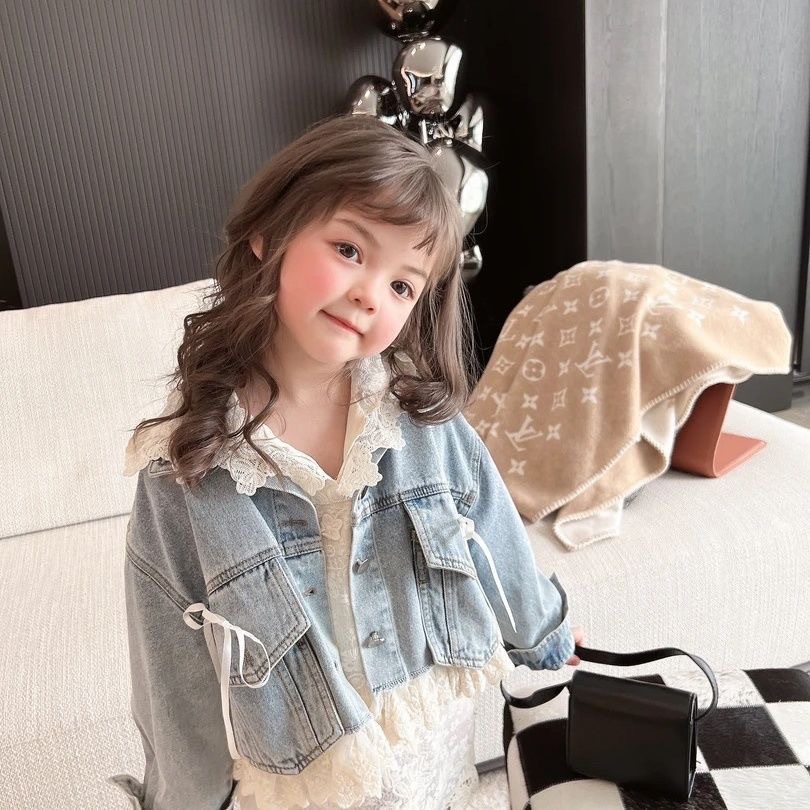 소녀 코트 2025 봄 가을 코트 그룹 세트 레이스 꽃 청소년 데님 코트 봄과 가을 여자 올 매치스토어 가기