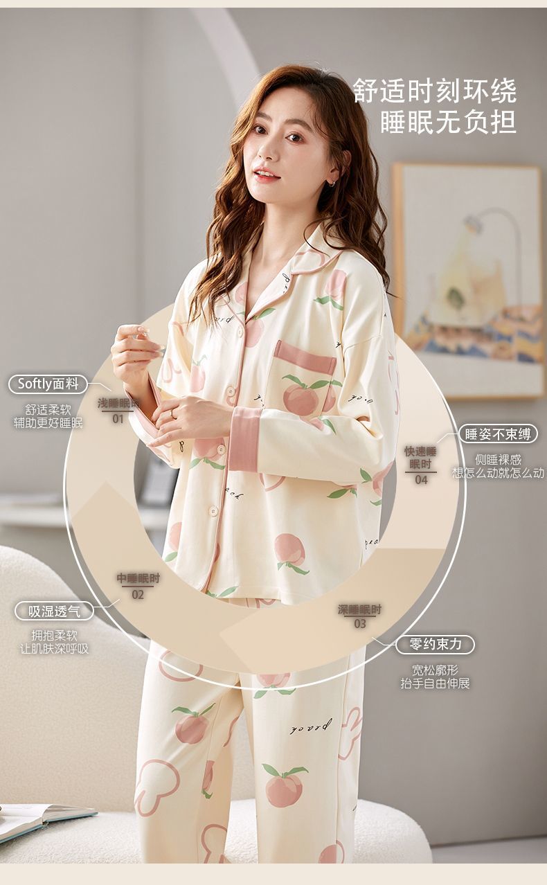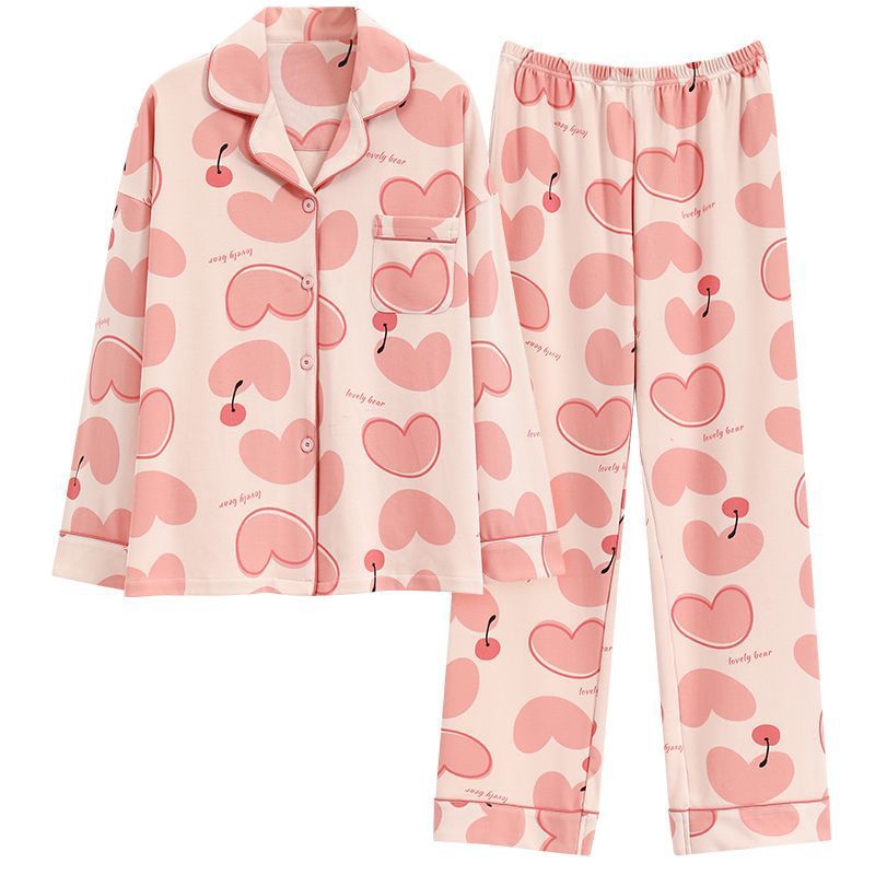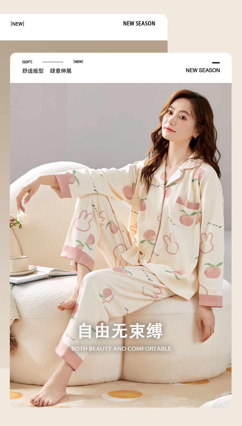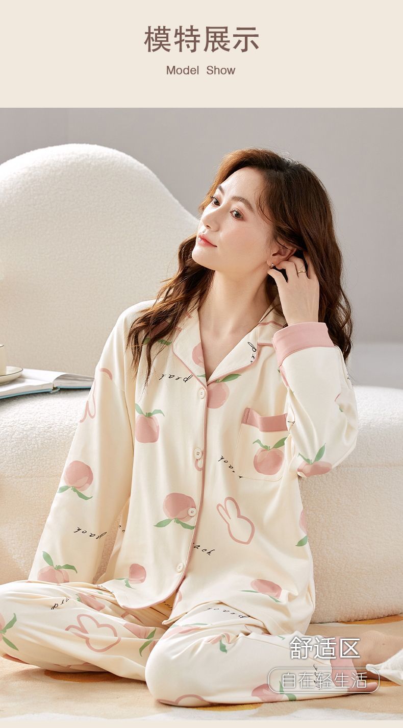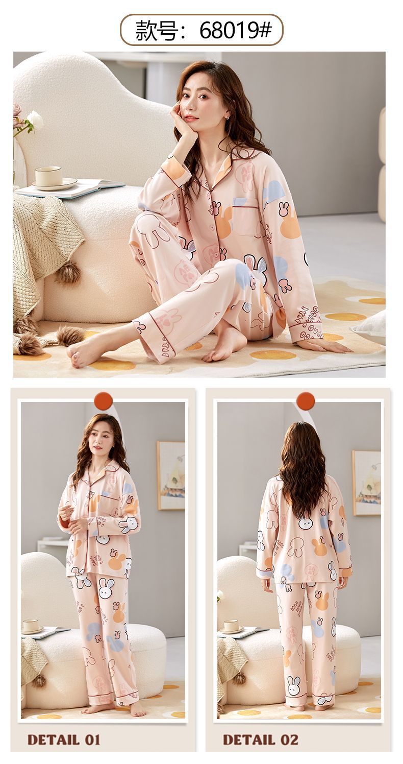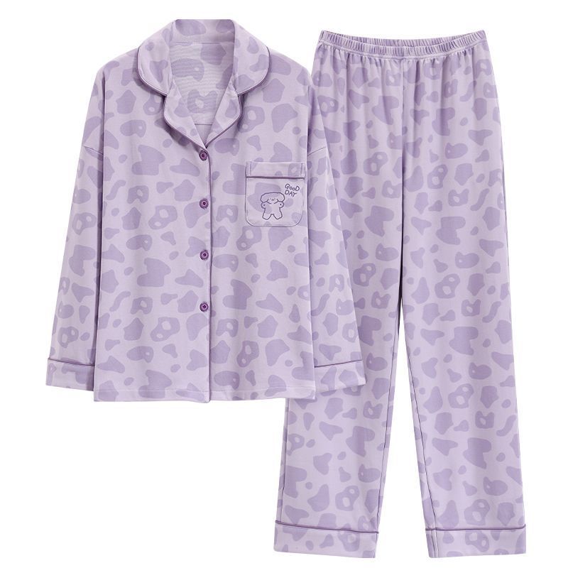A6C1OO % 양면 면 파자마 여성 봄 가을 플러스 사이즈 긴 소매 겉옷 한국식 캐주얼 면 홈 옷스토어 가기