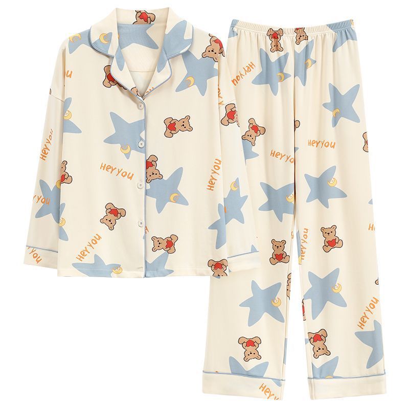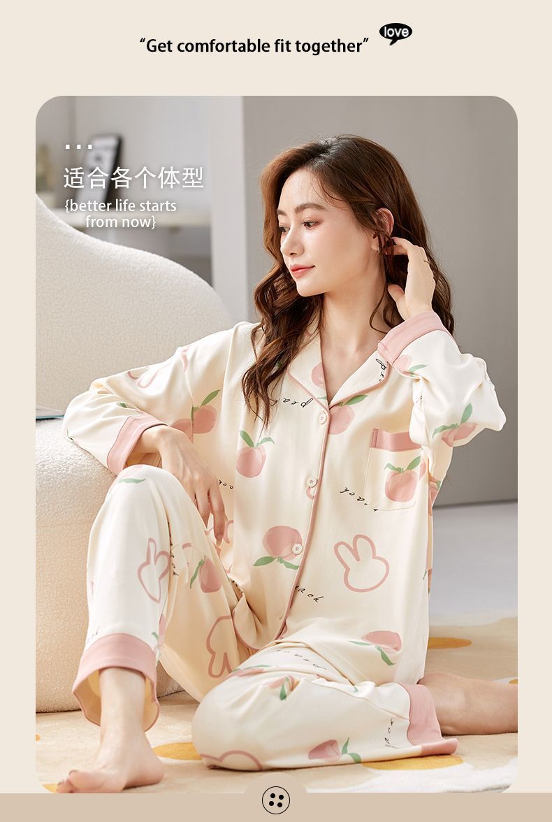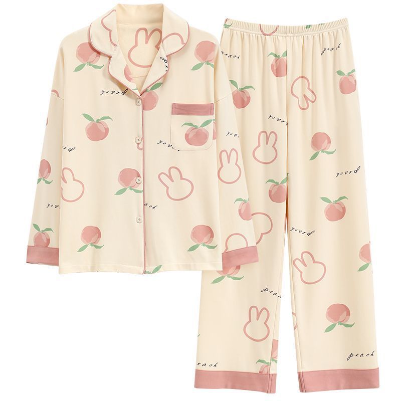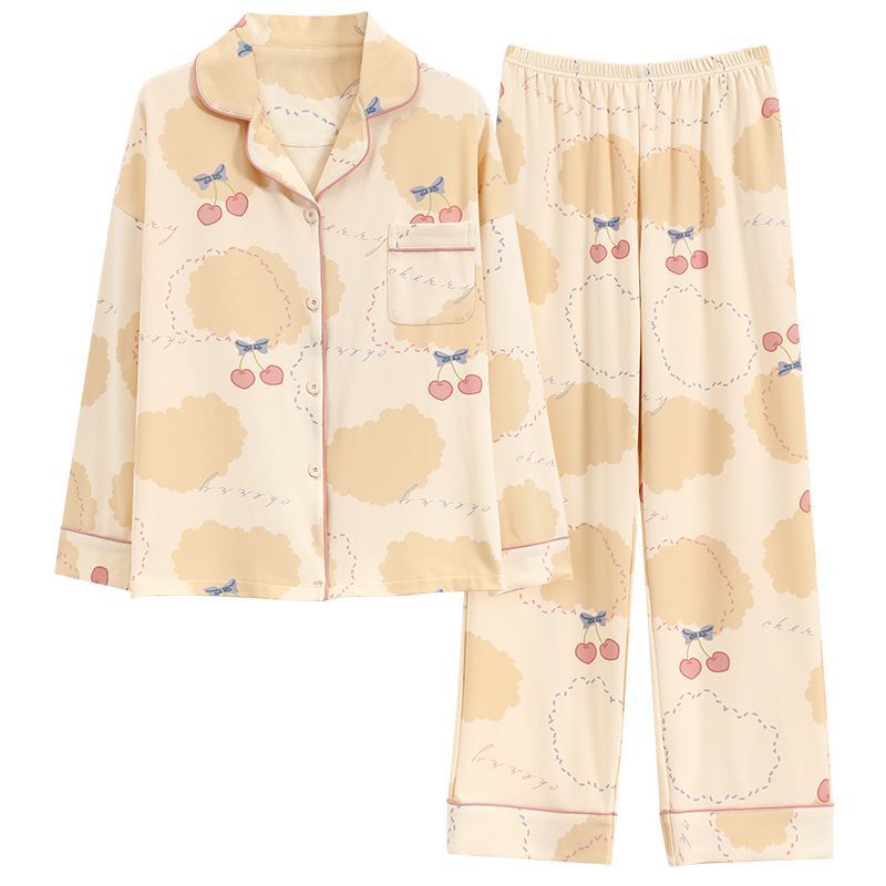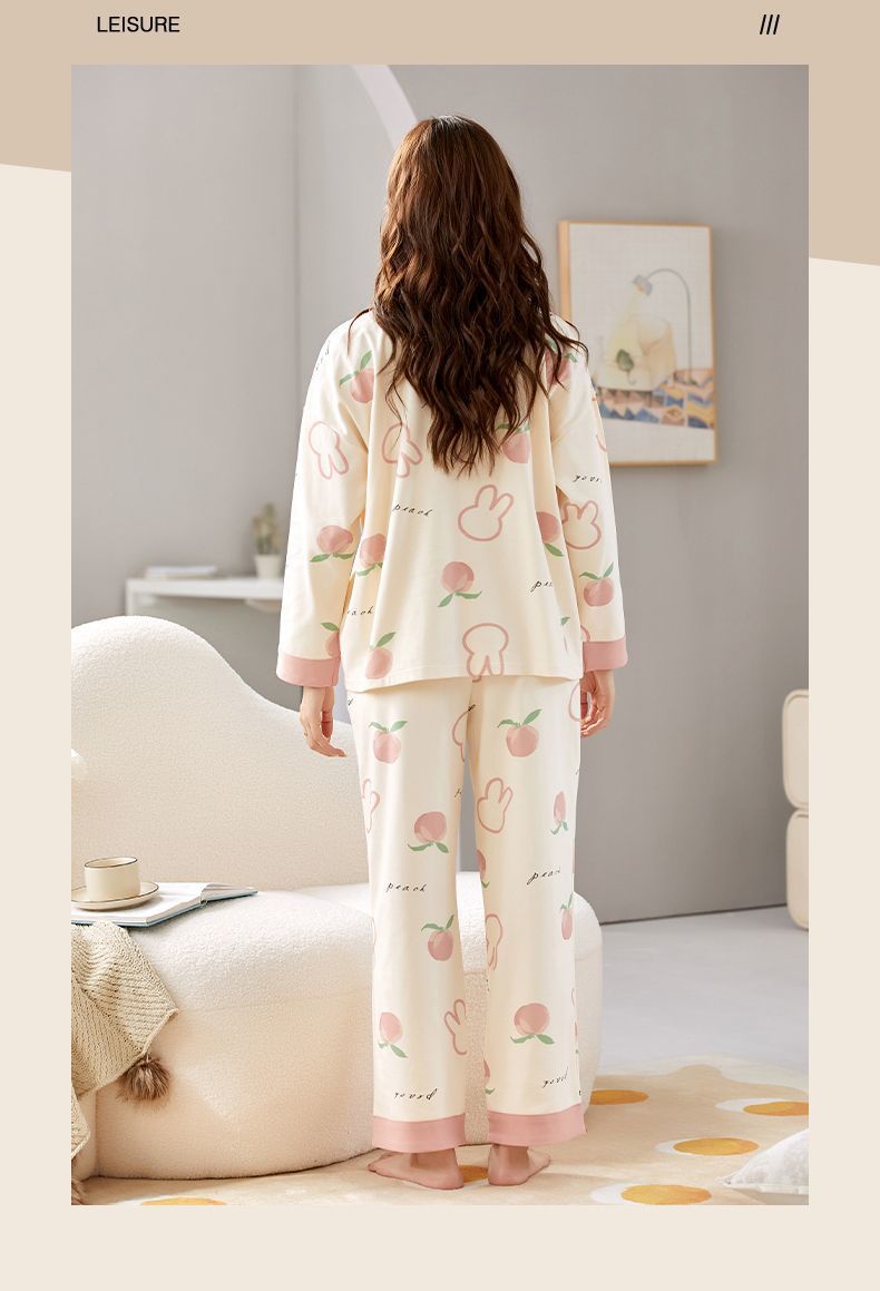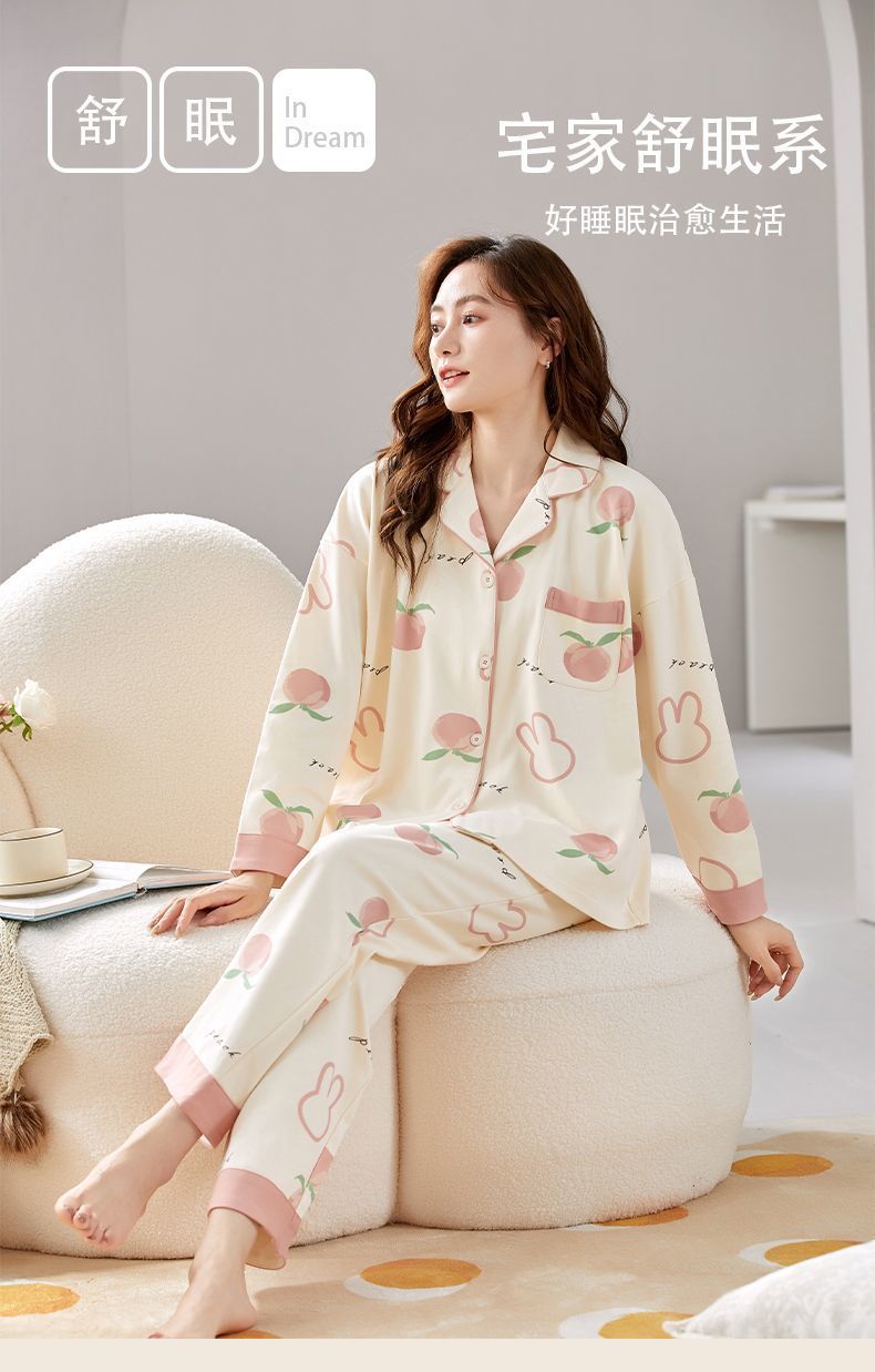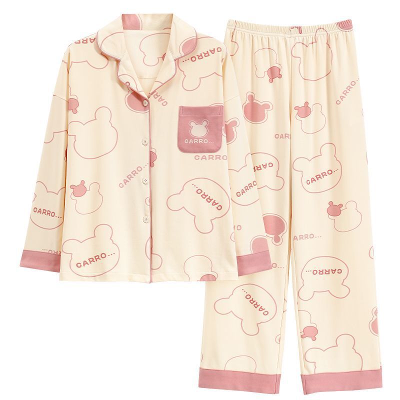 A6C1OO % 양면 면 파자마 여성 봄 가을 플러스 사이즈 긴 소매 겉옷 한국식 캐주얼 면 홈 옷스토어 가기