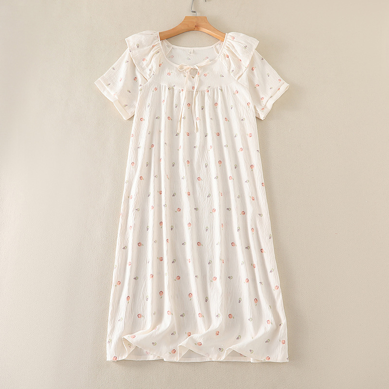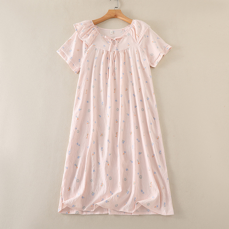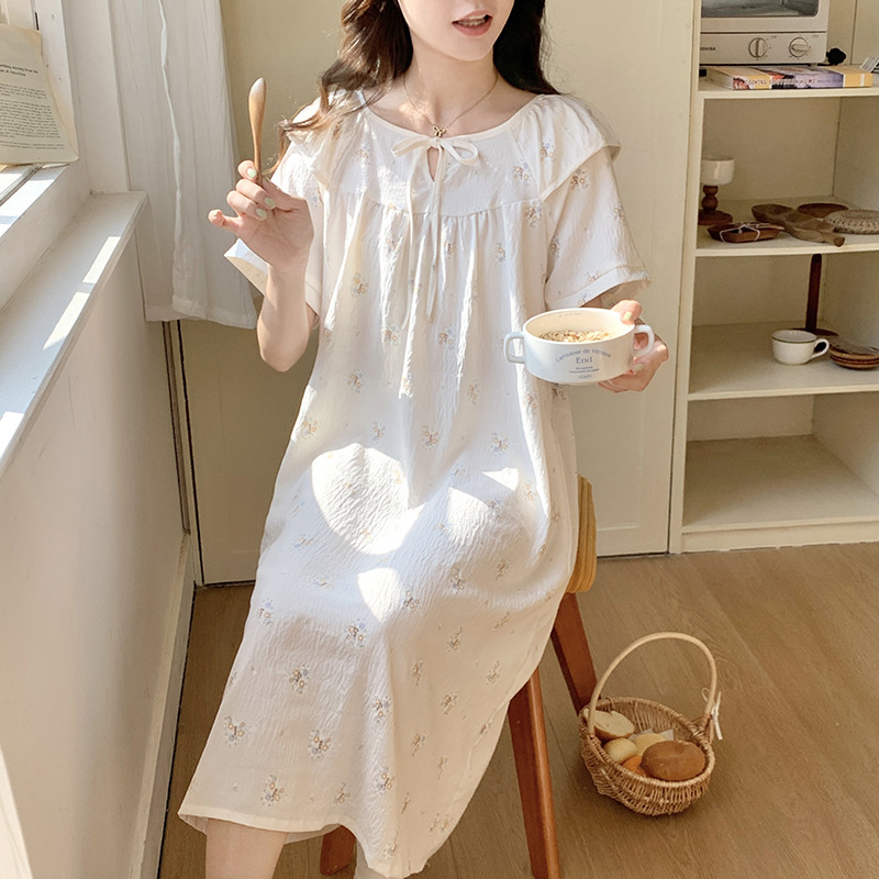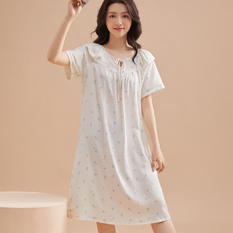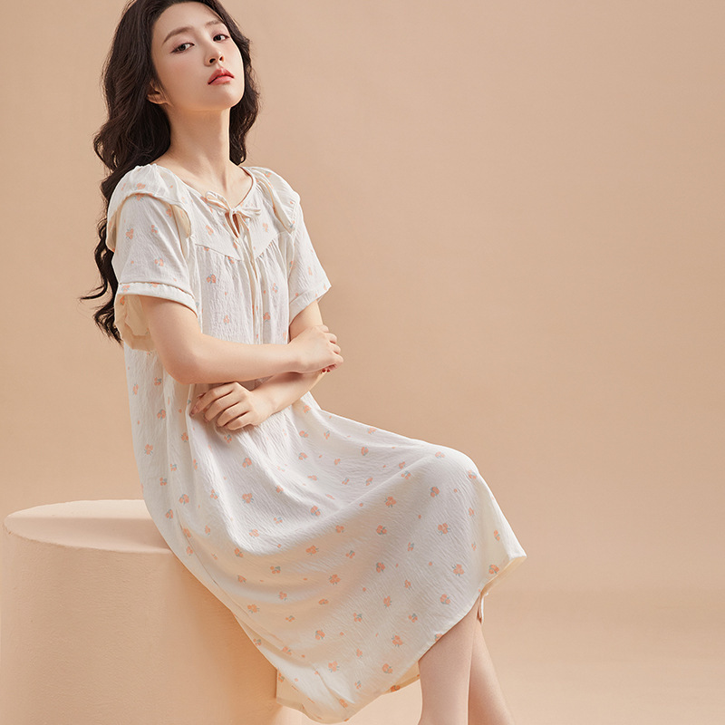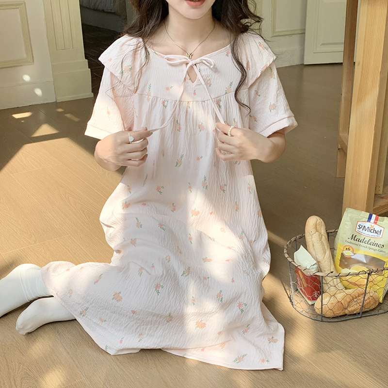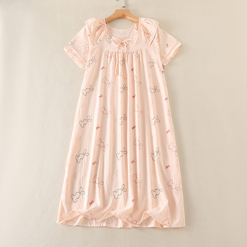 구름면 잠옷 짧은 소매 무릎 줄 새 스타일 스커트 원피스 느슨한 귀여운 코 테더 조정 가능