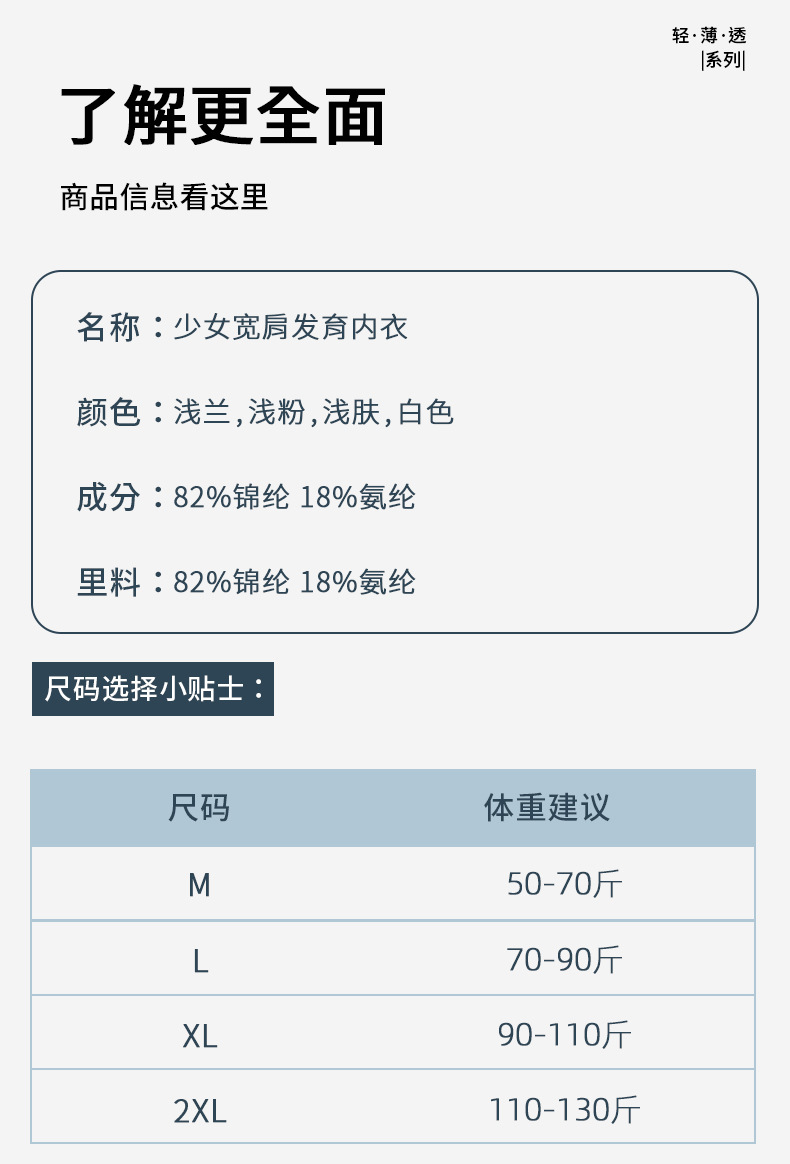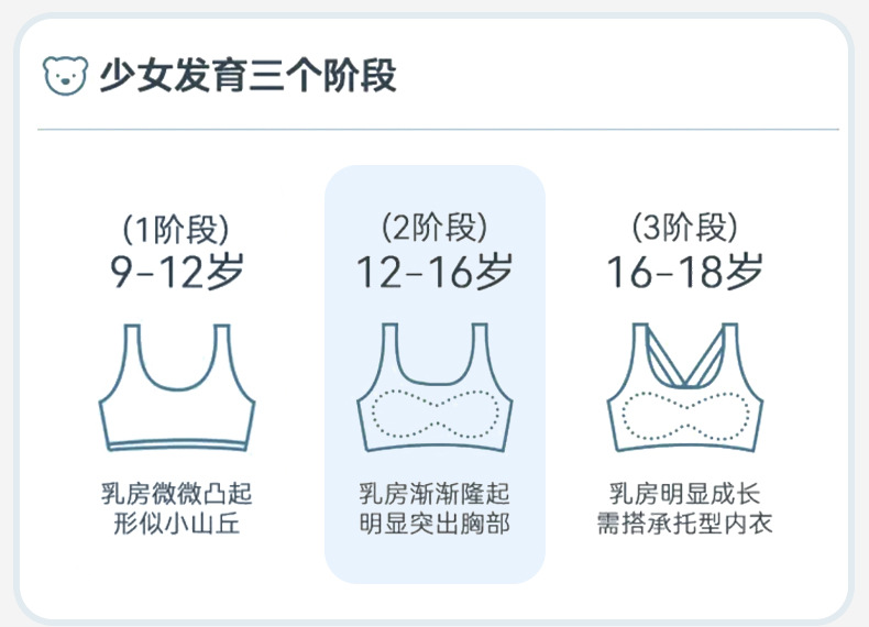 여자를위한 발달 속옷, 중학생, 1 단계 조끼, 9-16 세 어린이를위한 반 범프 포장 브래지어