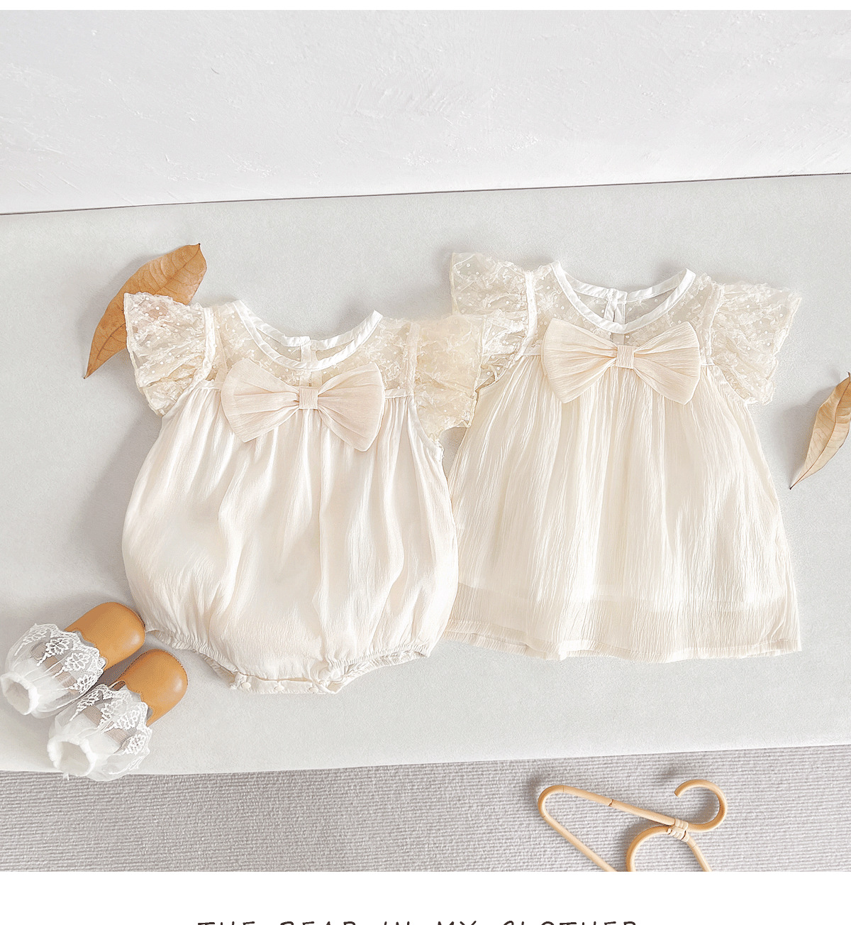 작은 공주 모자 0-2 세 한국 어린이 착용 여름 새 아기 아기 보물 단색 활 가방 방귀 옷 원피스스토어 가기