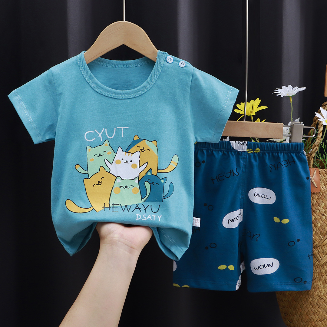 새 어린이 반팔 세트 코튼 걸스 여름 티셔츠 투피스 아기 옷 한국 스타일스토어 가기