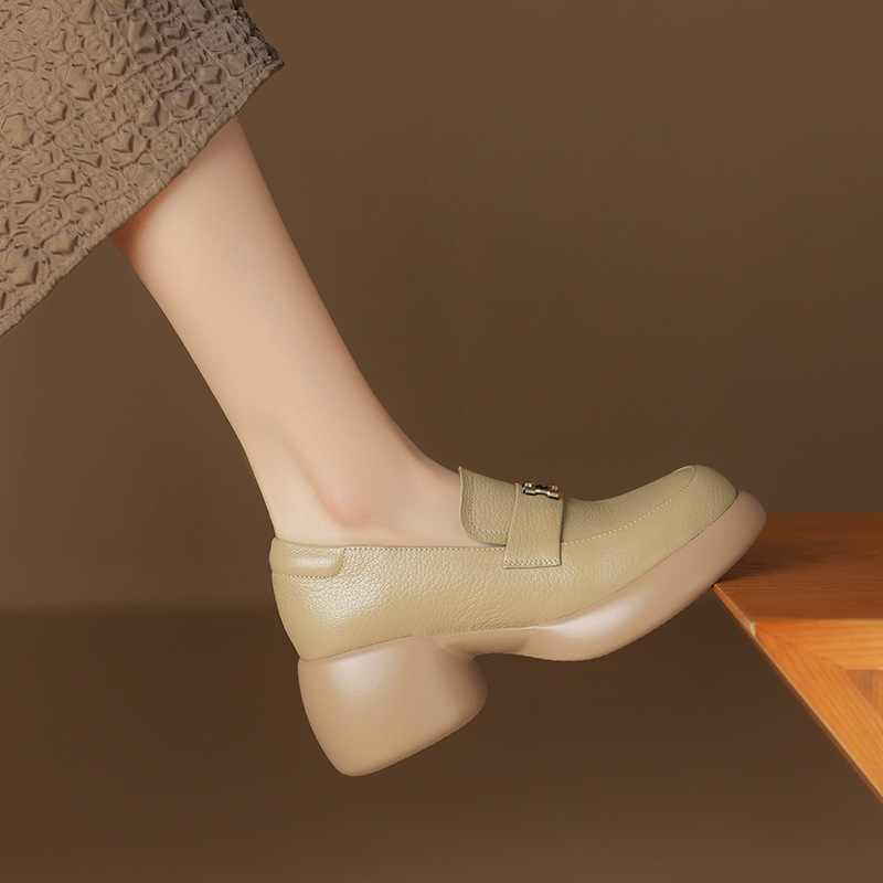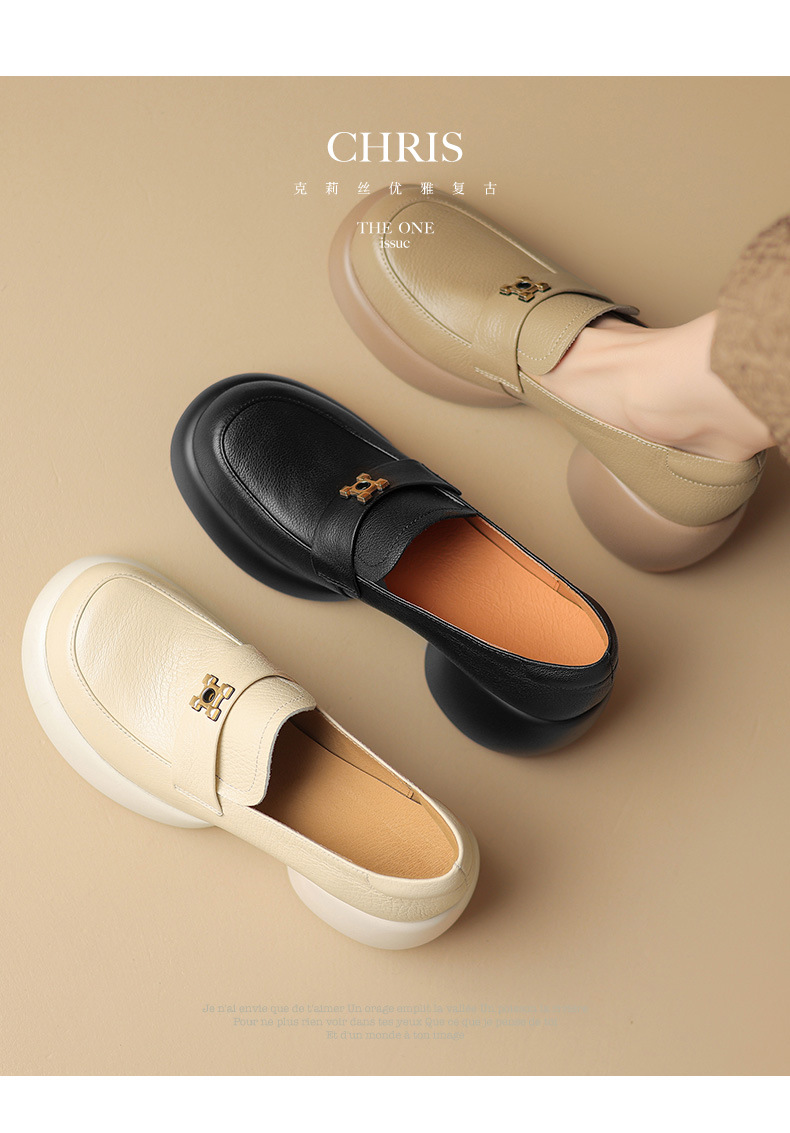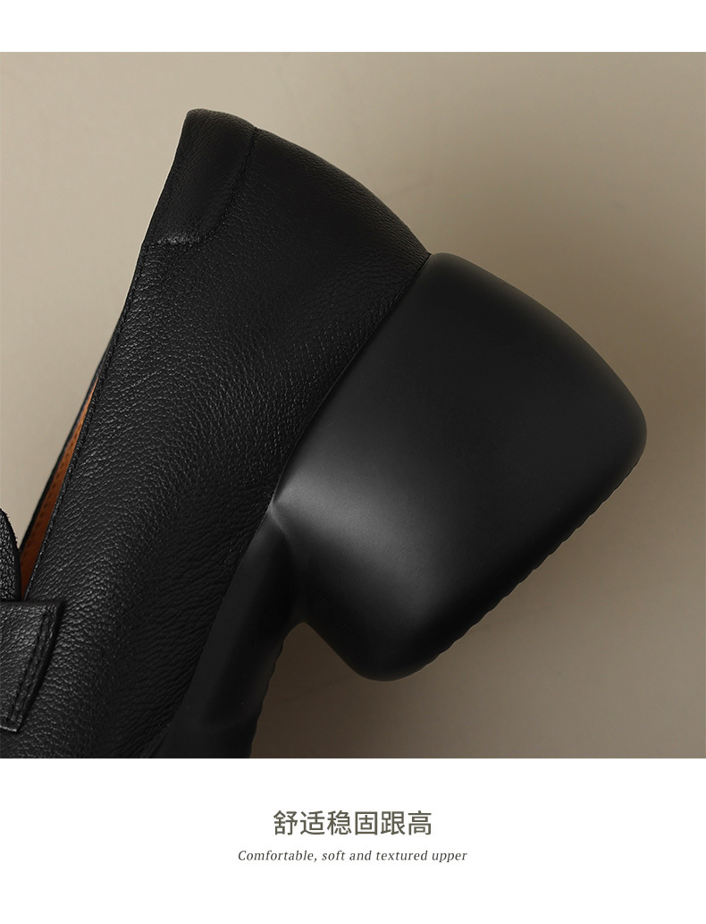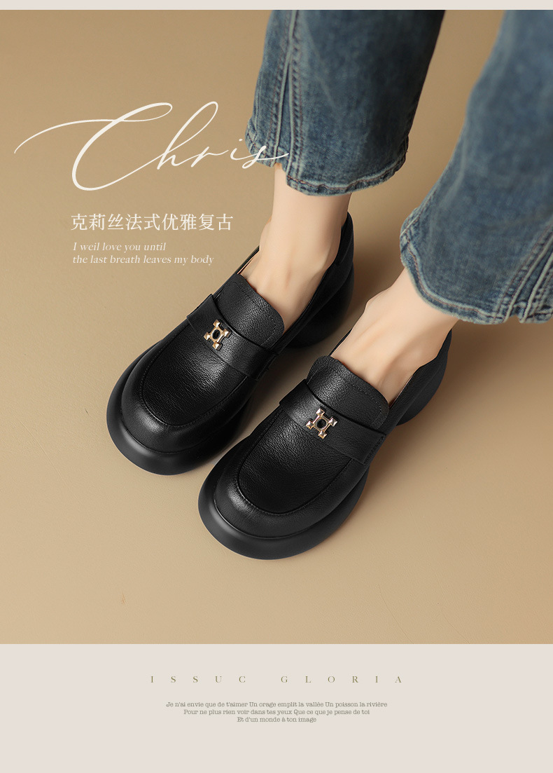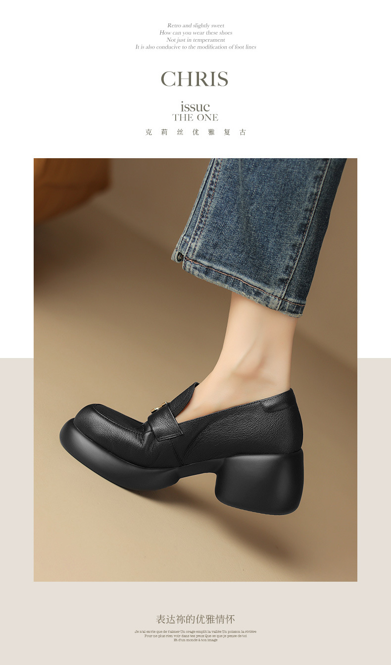 세련된 ~ 아름다운! 작은 가죽 하이힐을 두꺼운 바닥 두꺼운 힐 라운드 힐 영국 스타일 로퍼 여성용 작은 가죽 신발스토어 가기