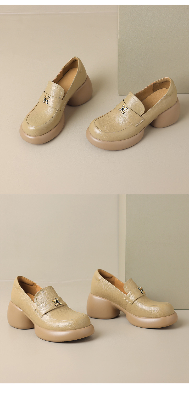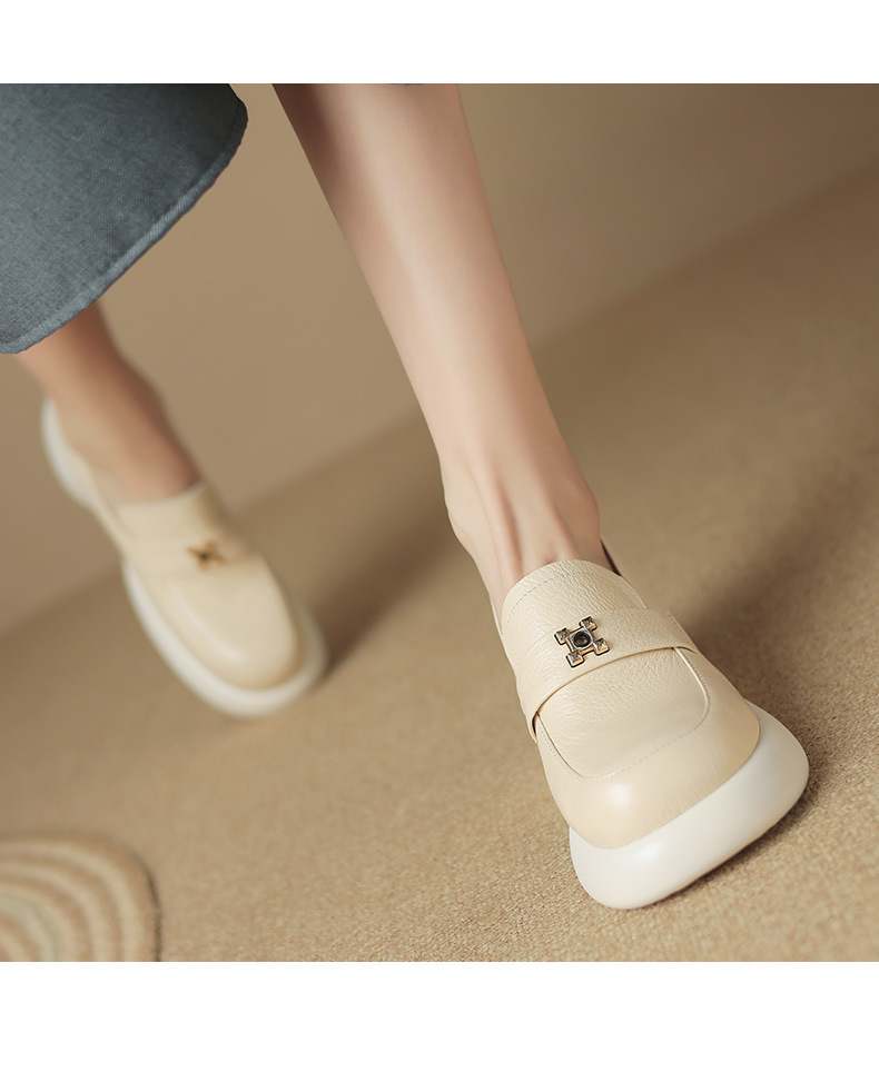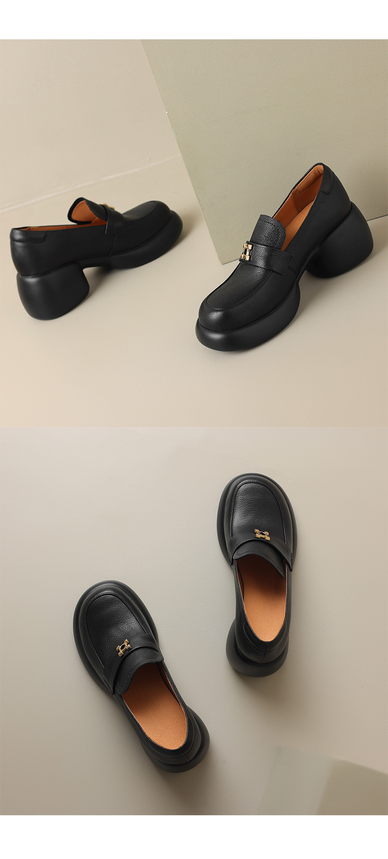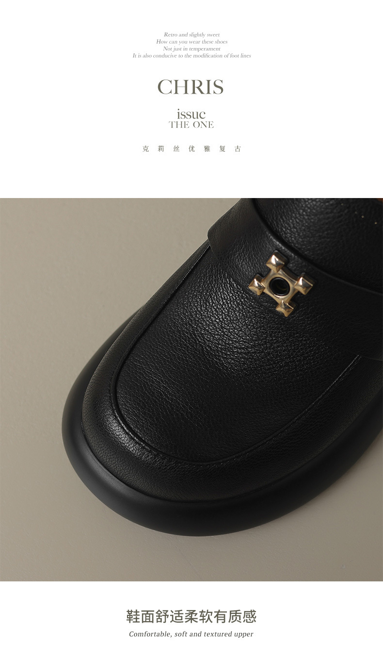 세련된 ~ 아름다운! 작은 가죽 하이힐을 두꺼운 바닥 두꺼운 힐 라운드 힐 영국 스타일 로퍼 여성용 작은 가죽 신발스토어 가기