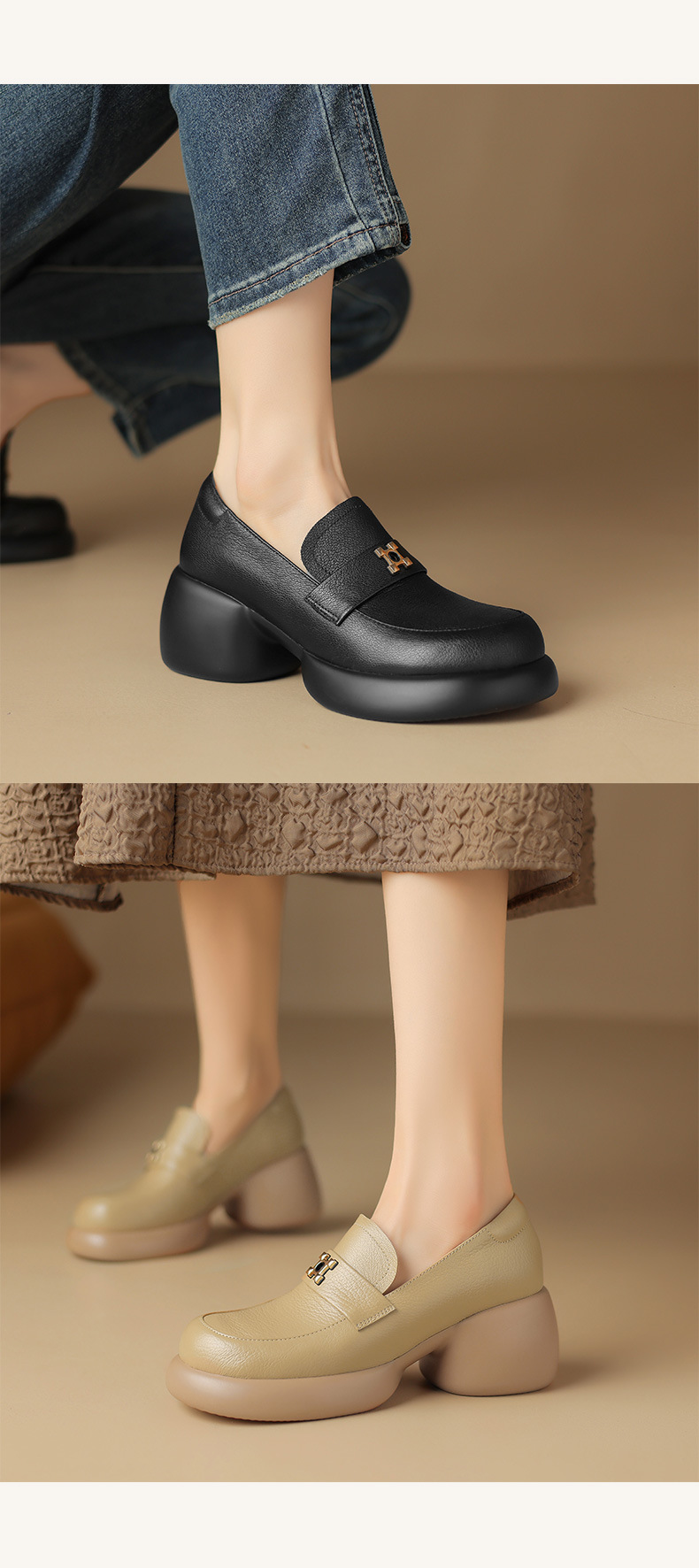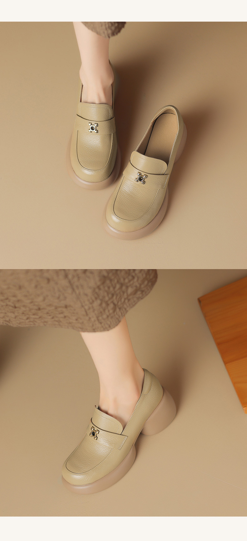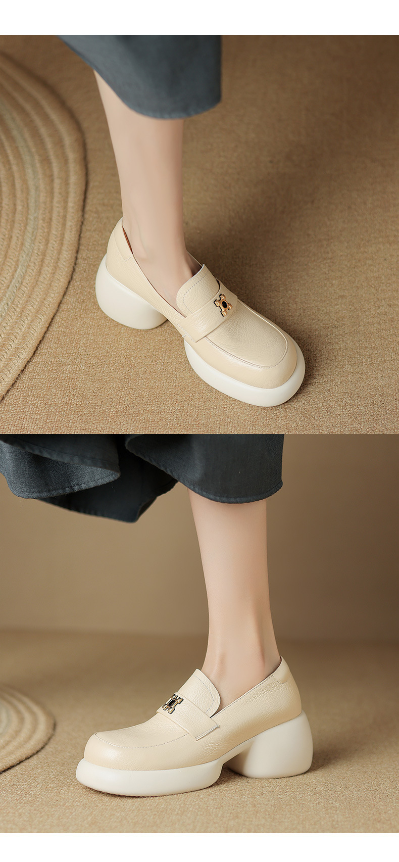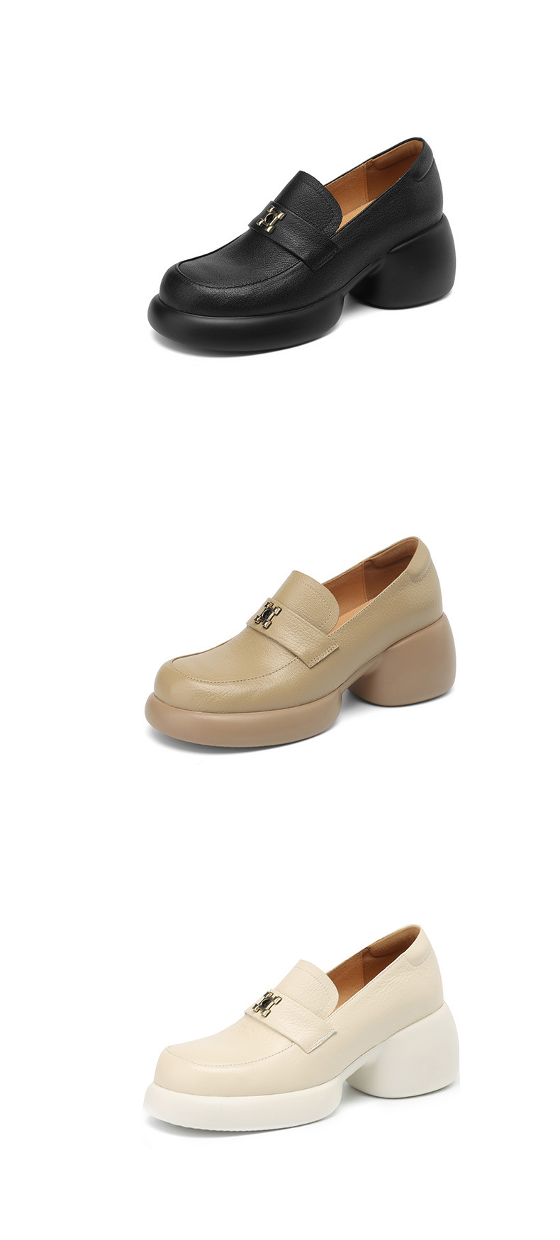 세련된 ~ 아름다운! 작은 가죽 하이힐을 두꺼운 바닥 두꺼운 힐 라운드 힐 영국 스타일 로퍼 여성용 작은 가죽 신발스토어 가기