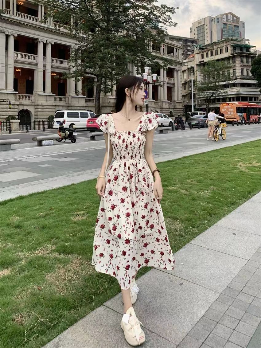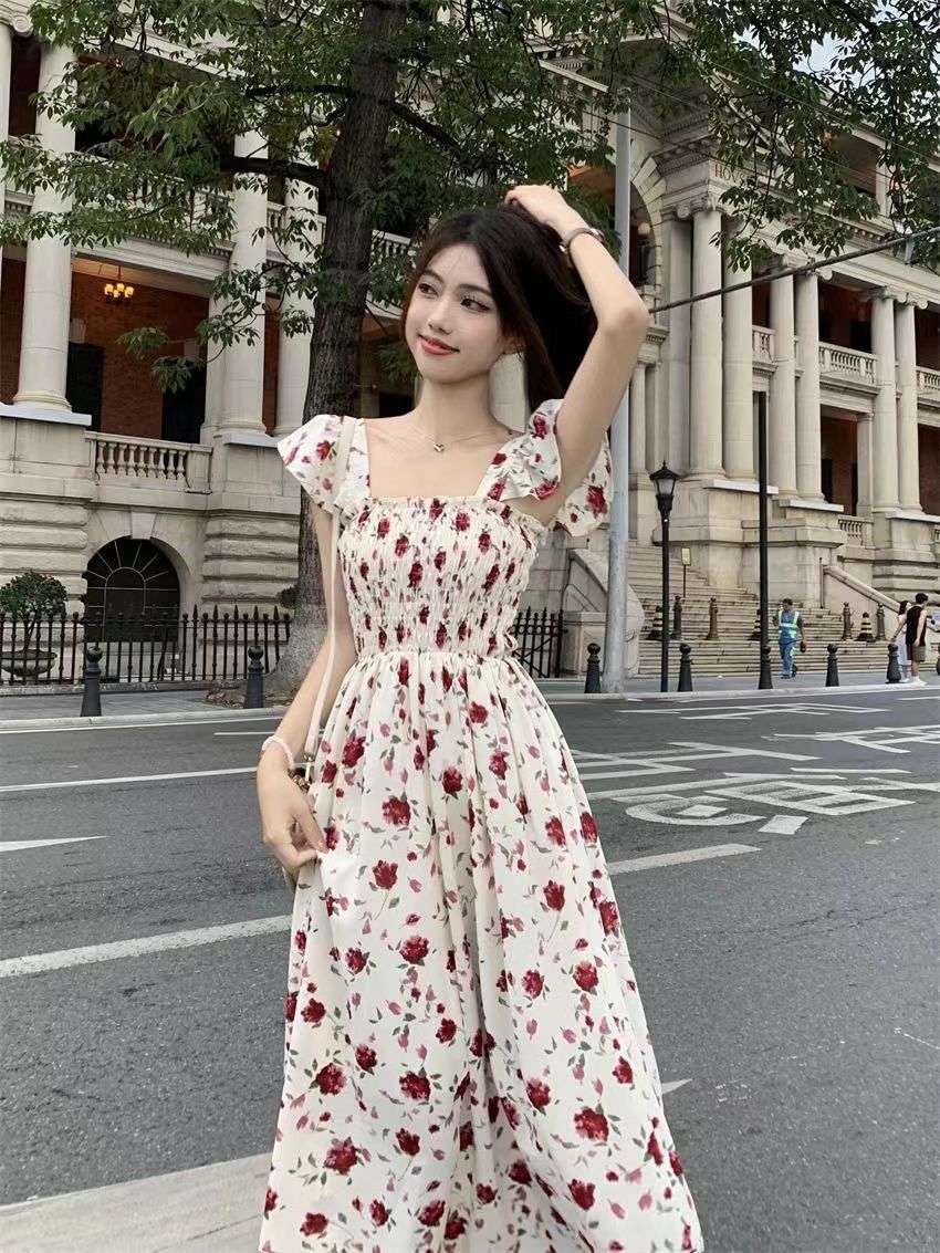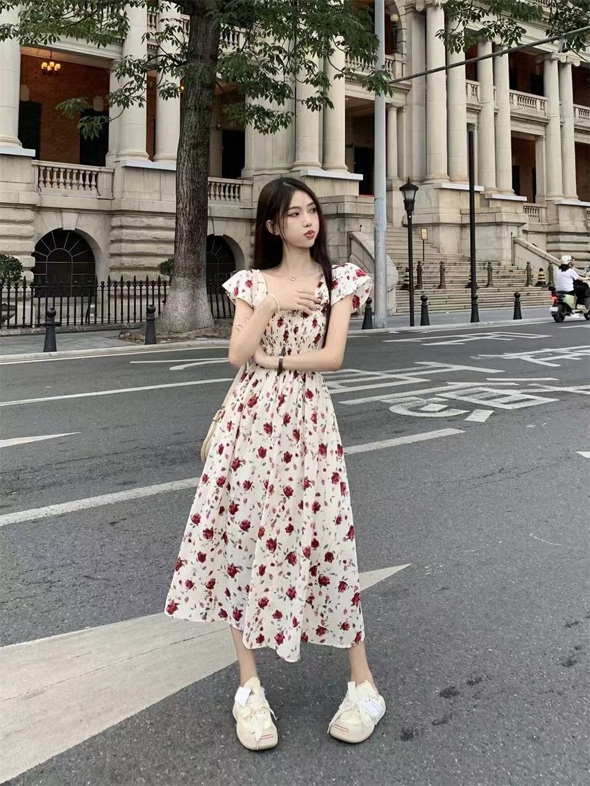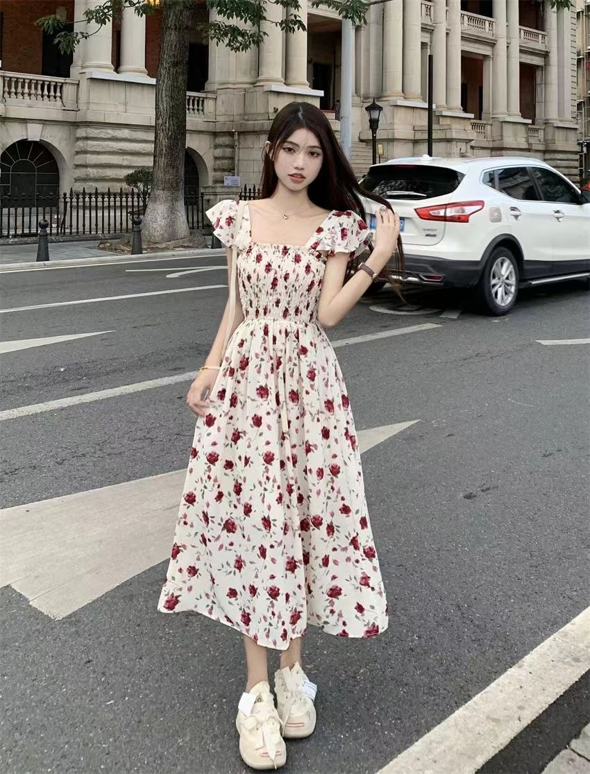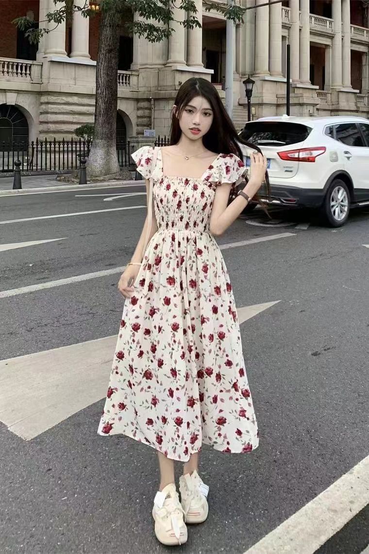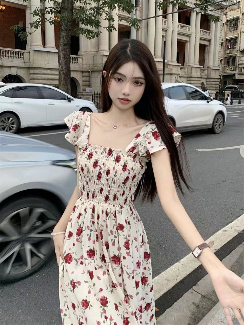 슈퍼 요정 모리 원피스 여름 새로운 스타일 작은 비행 소매 달콤한 우아한 부드러운 스타일 프랑스 꽃 미디 원피스스토어 가기