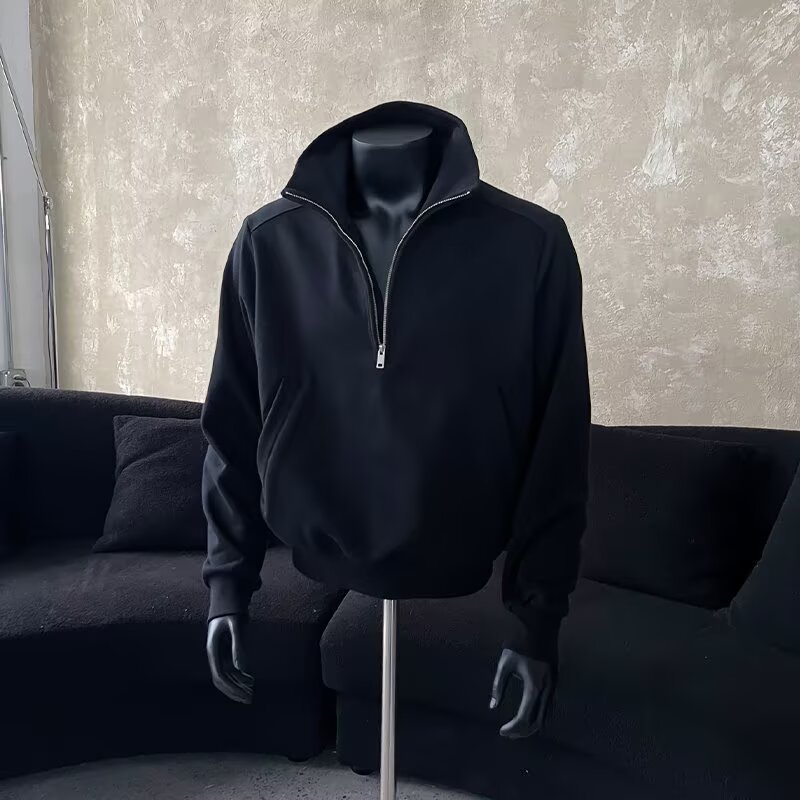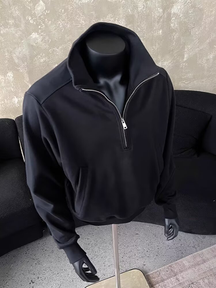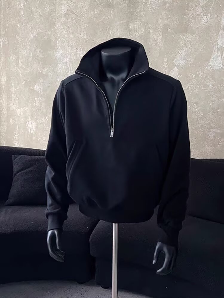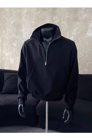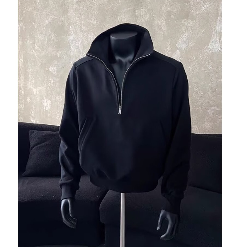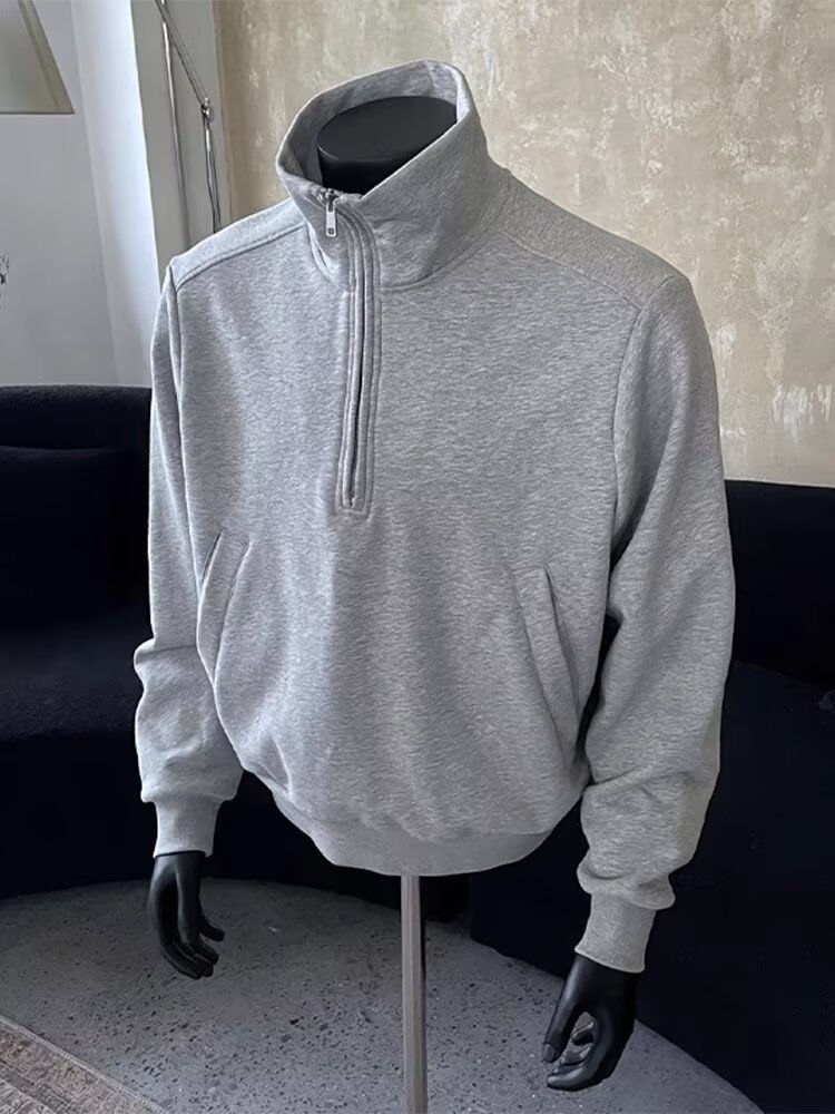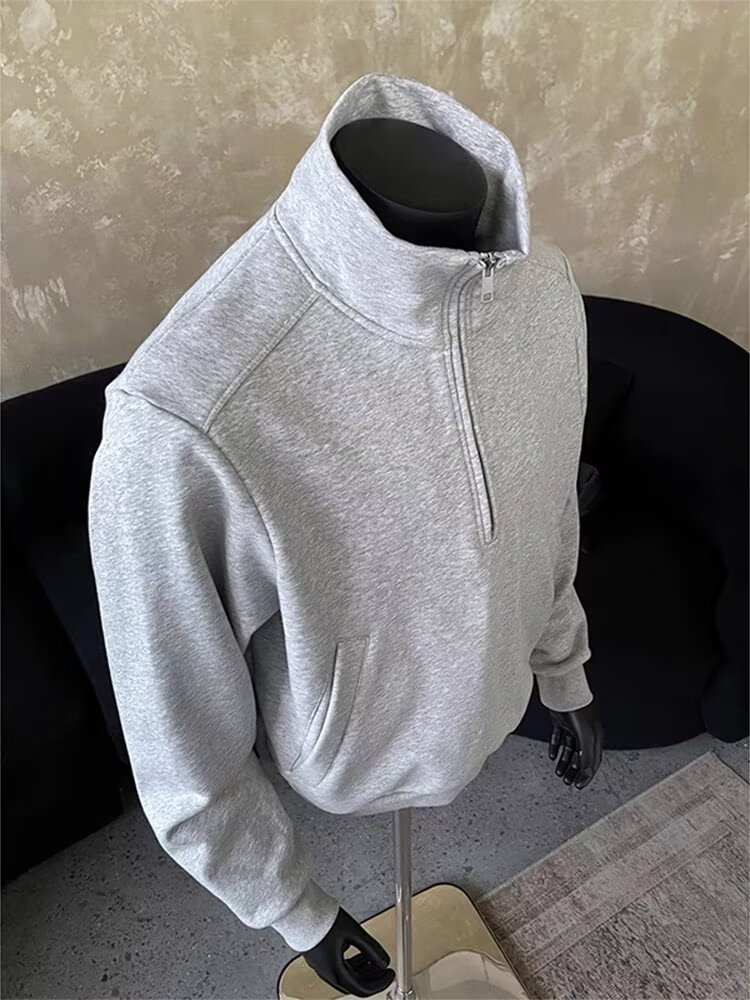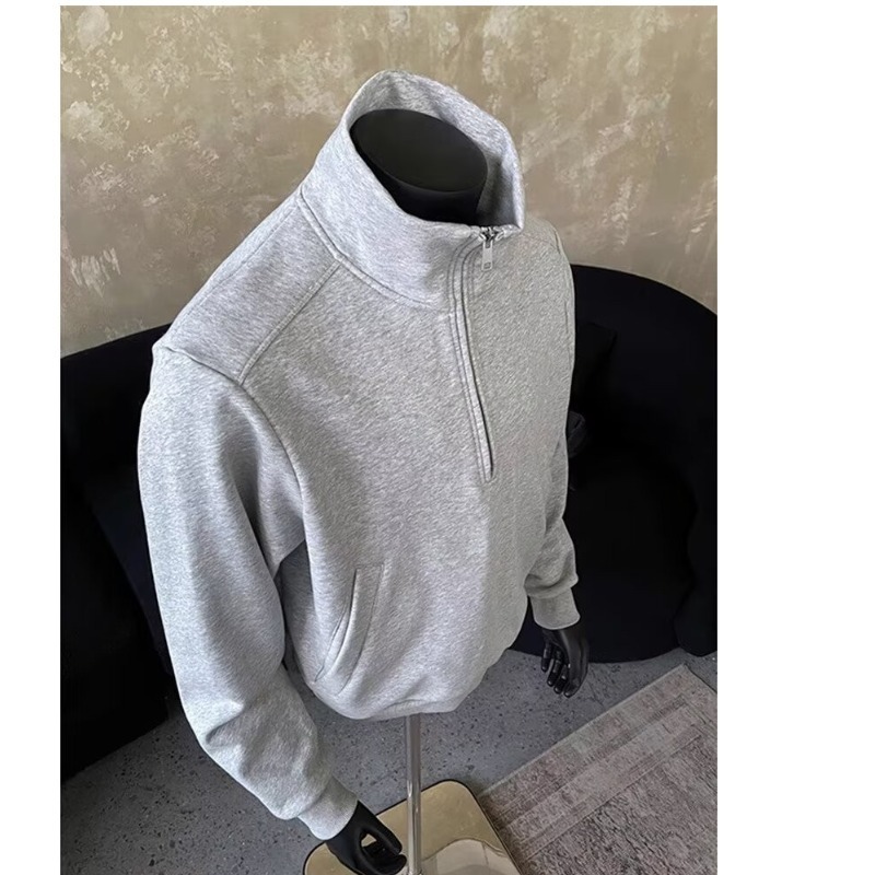 라이트 그레이 하프 지프 땀 남자 2025 봄 미국 스타일 칼라 베이스 탑 무거운 캐주얼 땀스토어 가기