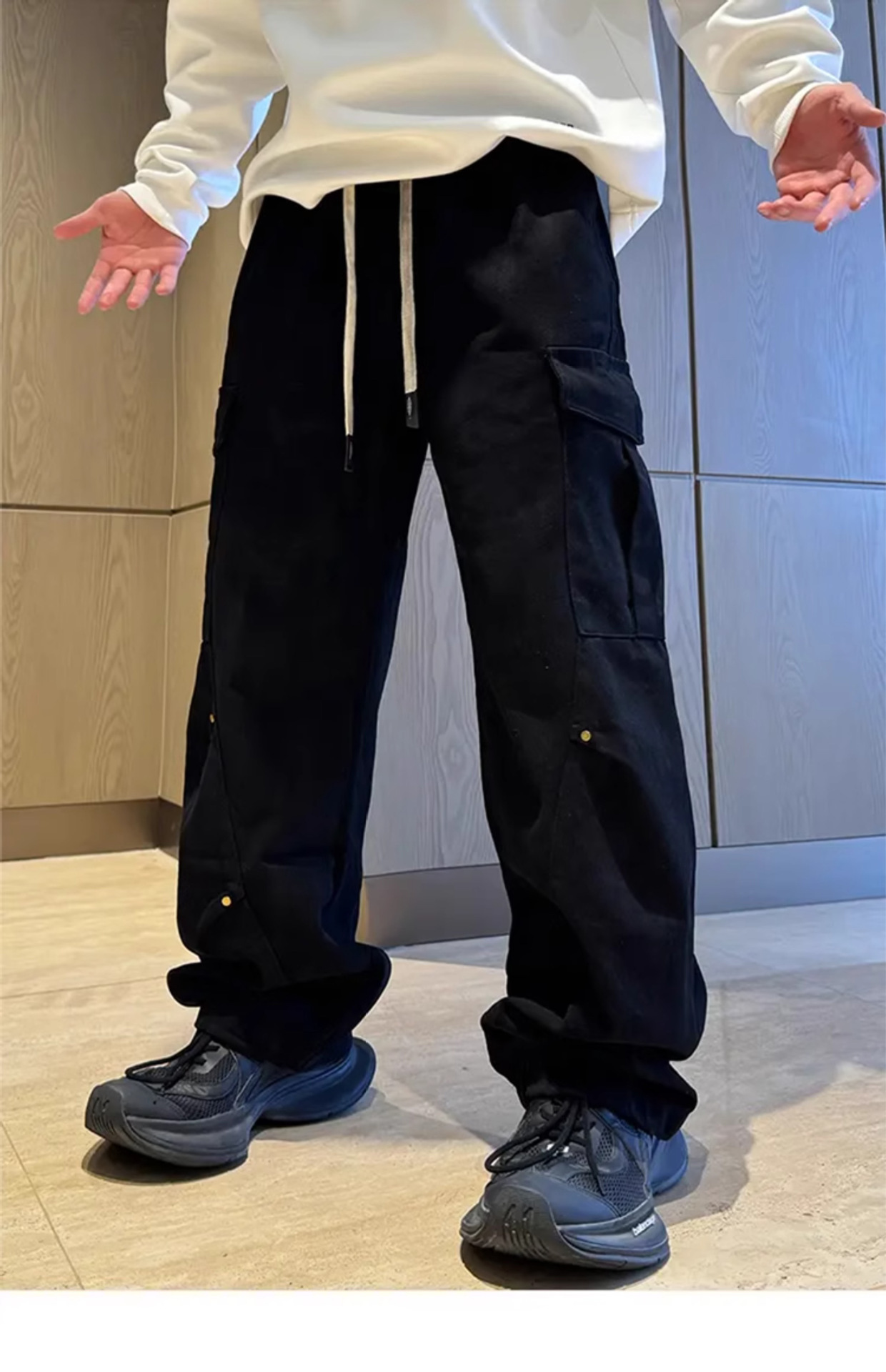 두꺼운 툴링 캐주얼 바지 남성 가을 및 겨울 미국 스트리트 패션 브랜드 Plumpian 핸섬 느슨한 다리 와이드 레그 Machete 바지