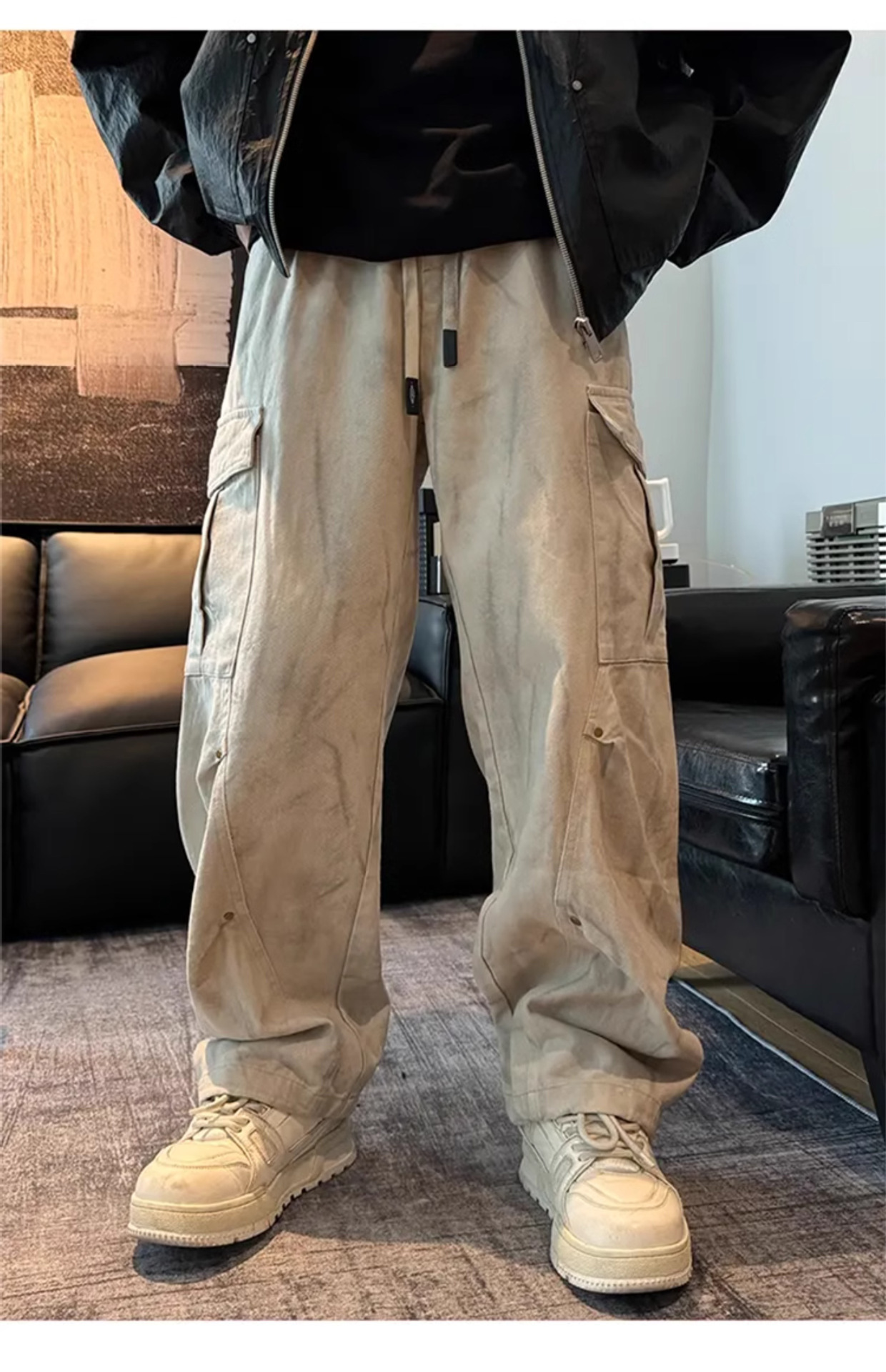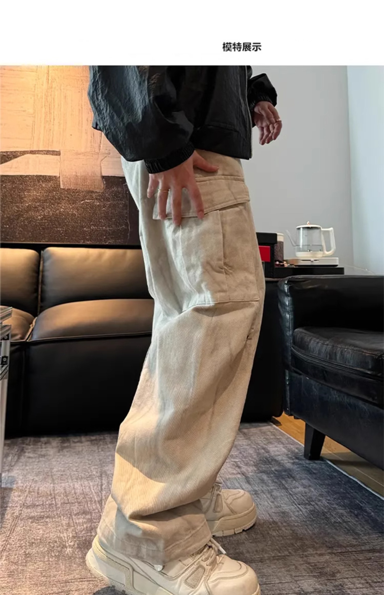 두꺼운 툴링 캐주얼 바지 남성 가을 및 겨울 미국 스트리트 패션 브랜드 Plumpian 핸섬 느슨한 다리 와이드 레그 Machete 바지스토어 가기
