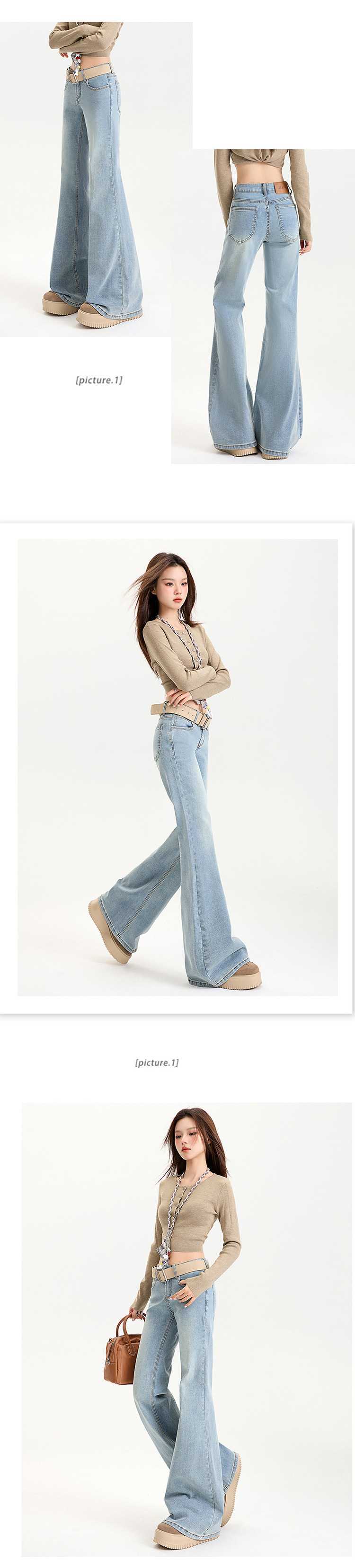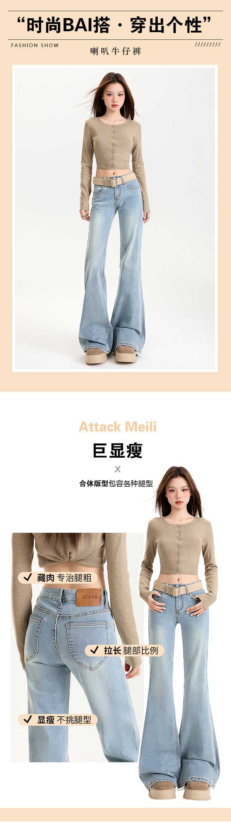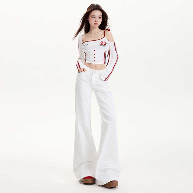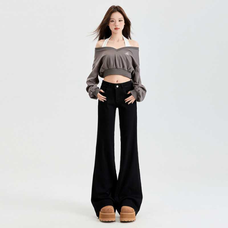 연청 플레어 진 여성용 핫걸 로우 웨이스트 팬츠 슬리밍 롱 팬츠 블랙 화이트 도매