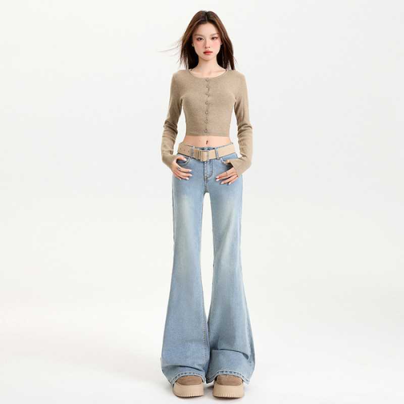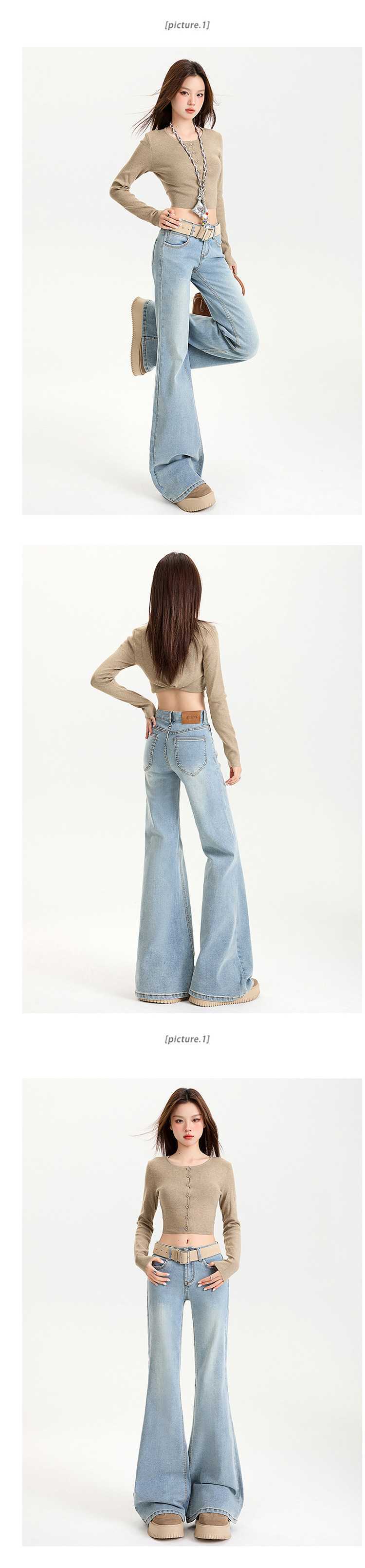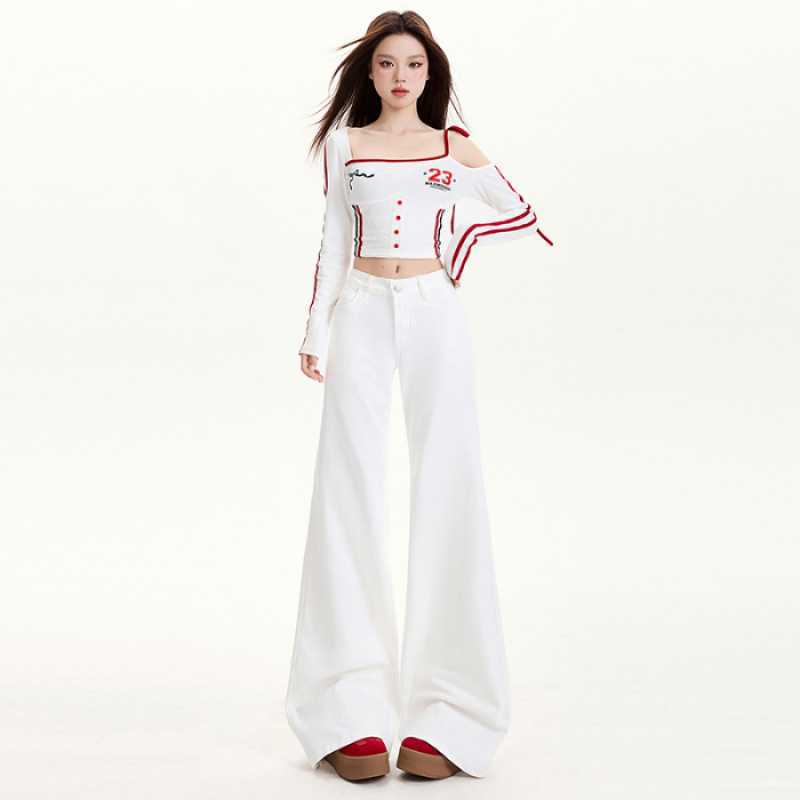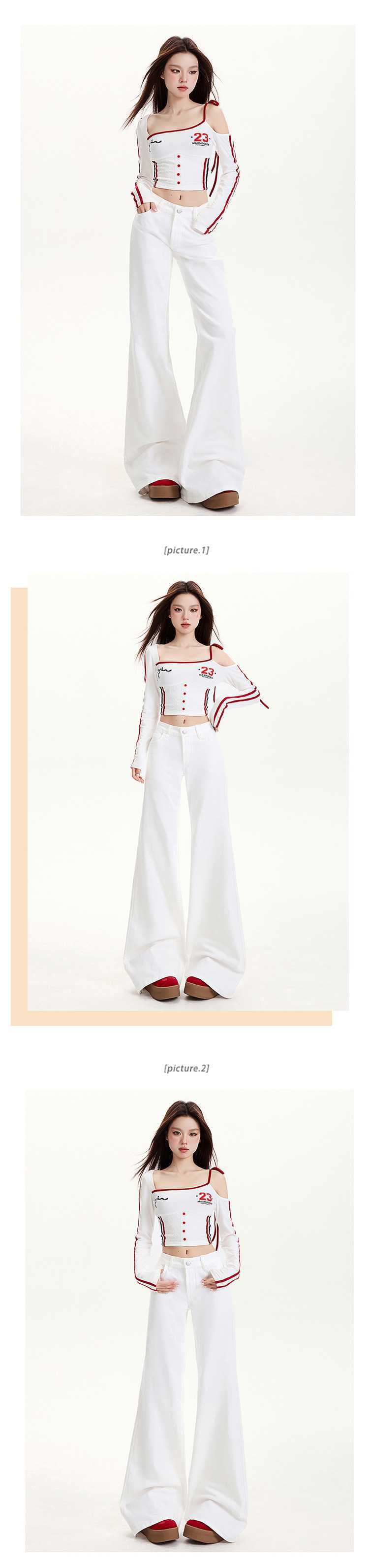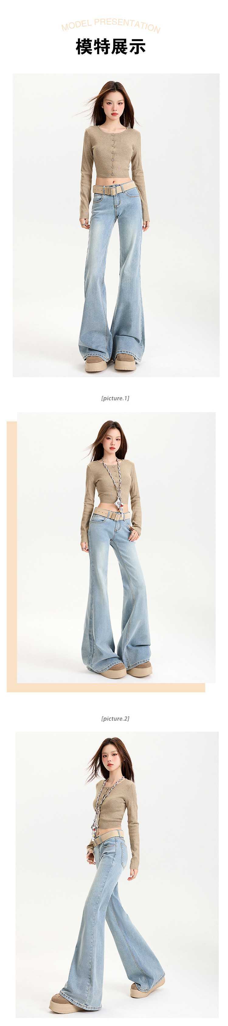 연청 플레어 진 여성용 핫걸 로우 웨이스트 팬츠 슬리밍 롱 팬츠 블랙 화이트 도매