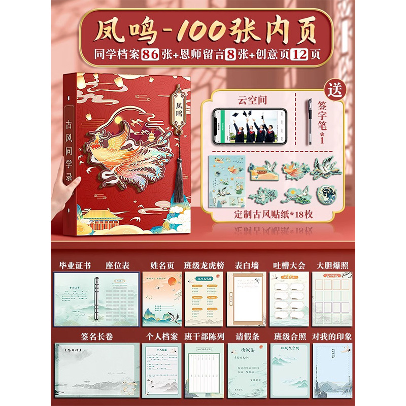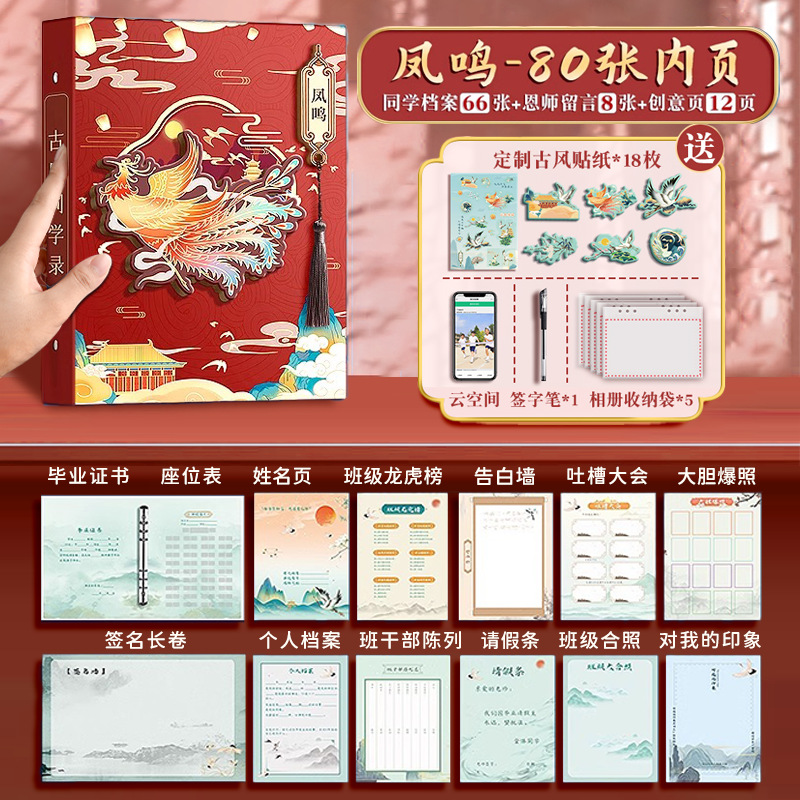 • [3D 핫 스탬핑 및 엠보싱]-Fengming/80 장/무료 클라우드 공간 + 스티커 + 서명 펜