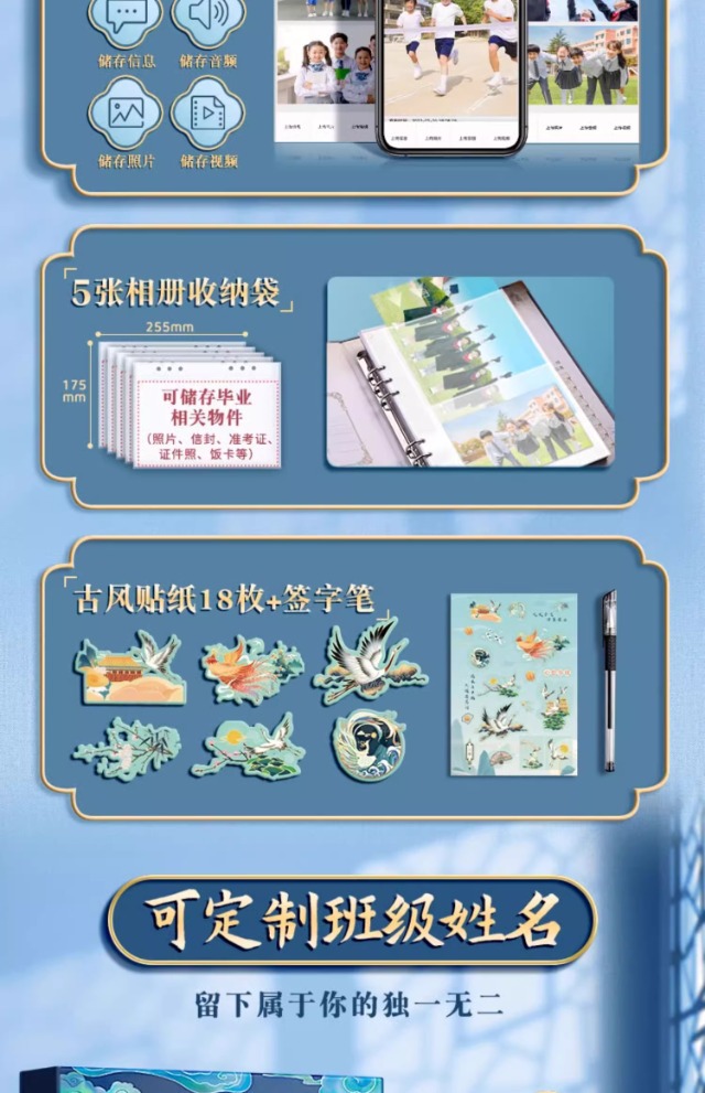 고대 스타일 동급생 기록 초등학교 6학년 중국 스타일 2024 새로운 스타일 소년 소녀 졸업 성장 기념 앨범스토어 가기