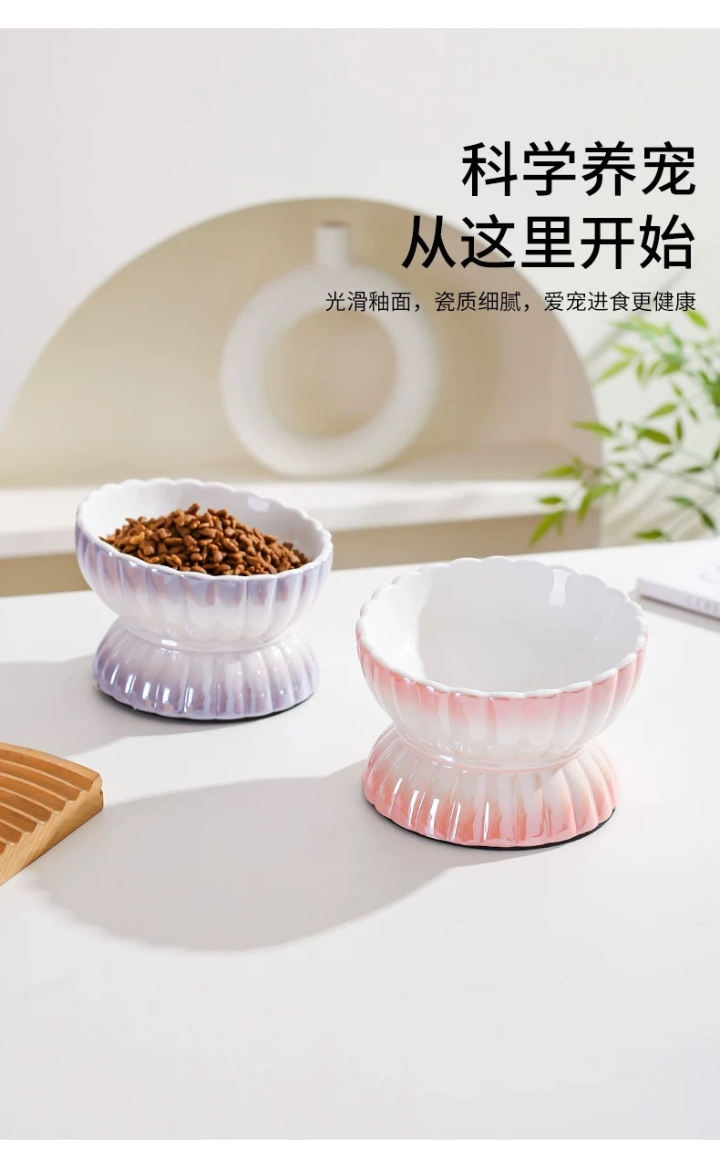 고양이 그릇 세라믹 큰 높은 발 비스듬한 목 보호 안티 노크 고양이 음식 그릇 물 그릇 개 밥 그릇 음식 식수 유니버설스토어 가기