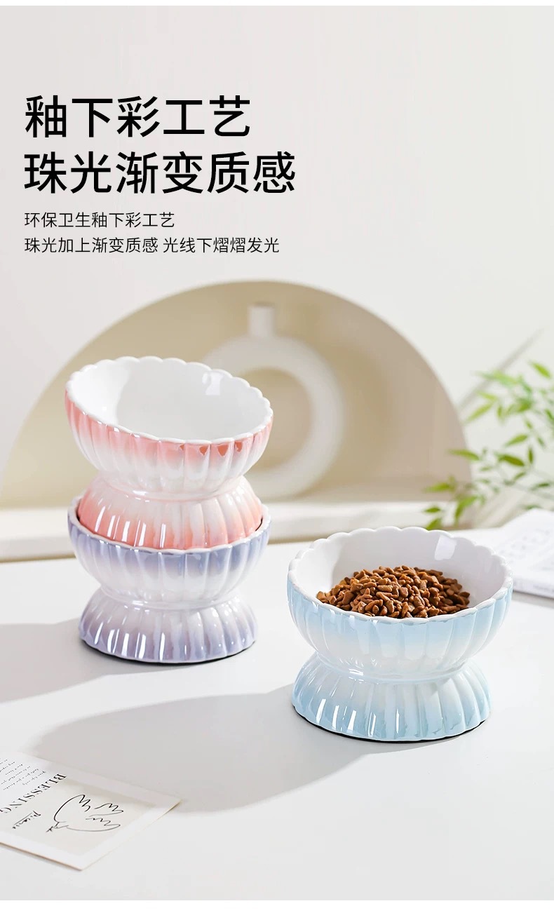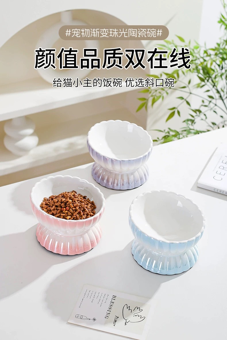 고양이 그릇 세라믹 큰 높은 발 비스듬한 목 보호 안티 노크 고양이 음식 그릇 물 그릇 개 밥 그릇 음식 식수 유니버설