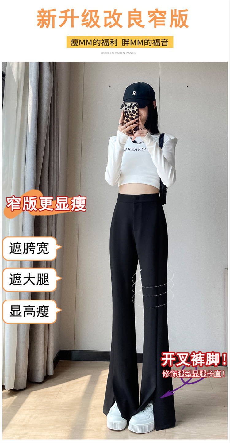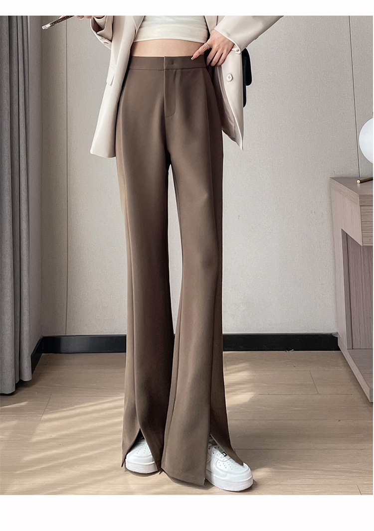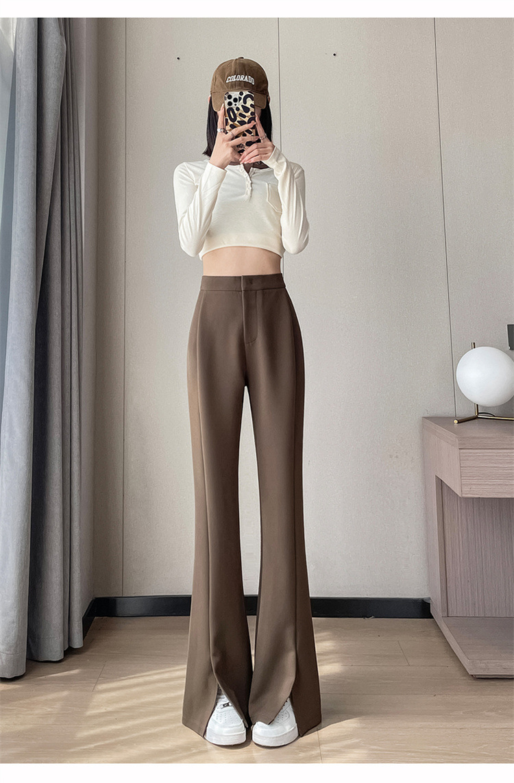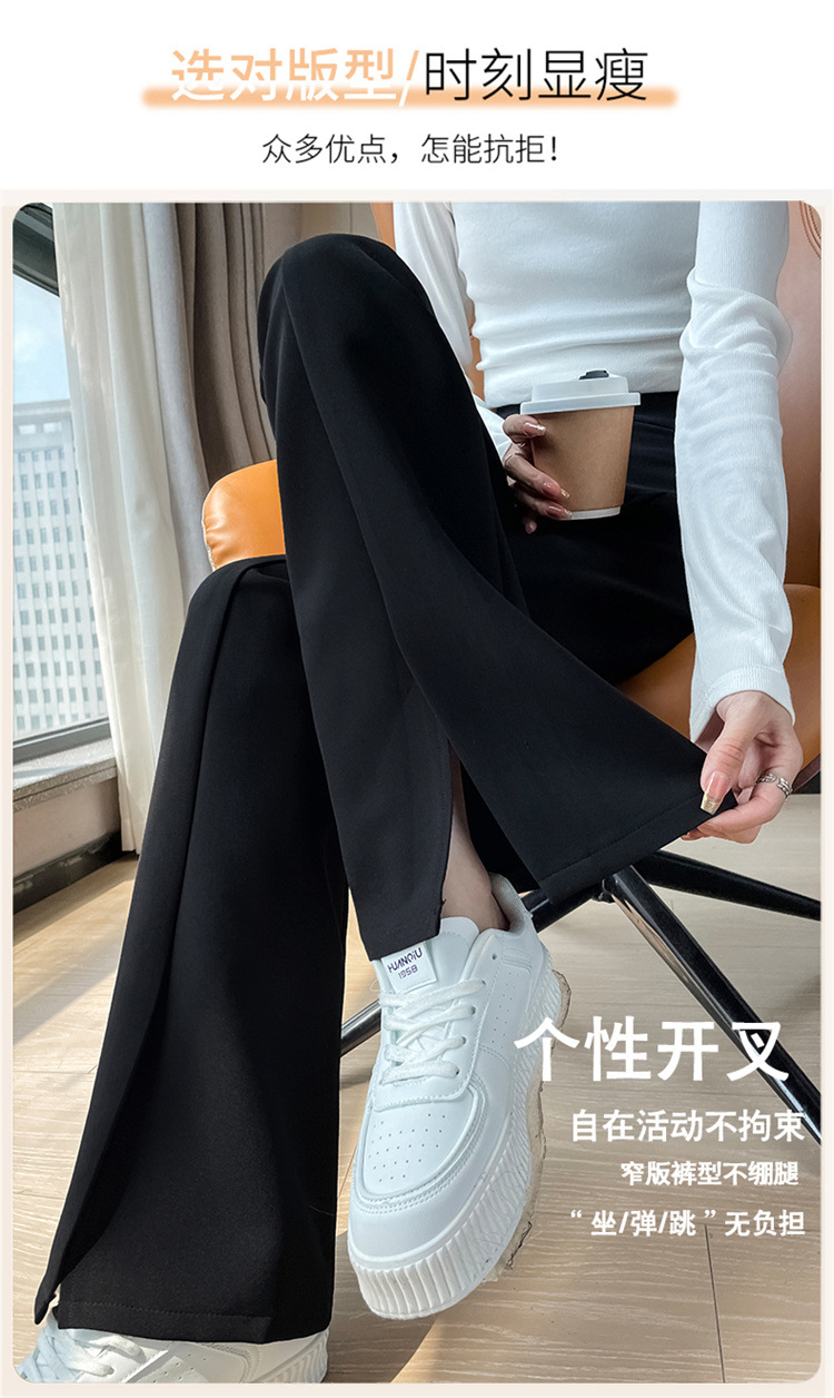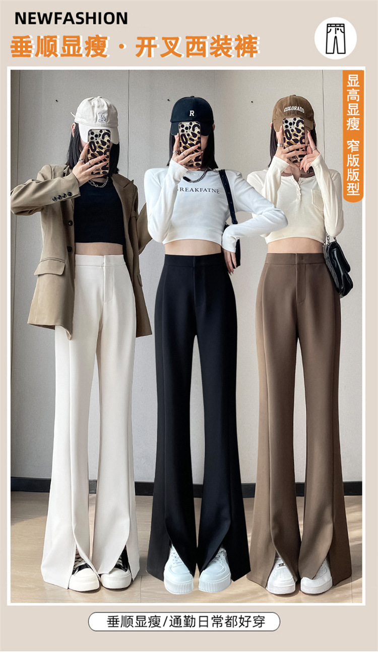 미국 2025 봄 새 스타일 바지 여성을위한 분할 마이크로 스트레이트 캐주얼 팬츠와 높은 허리 좁은 넓은 다리 바지스토어 가기