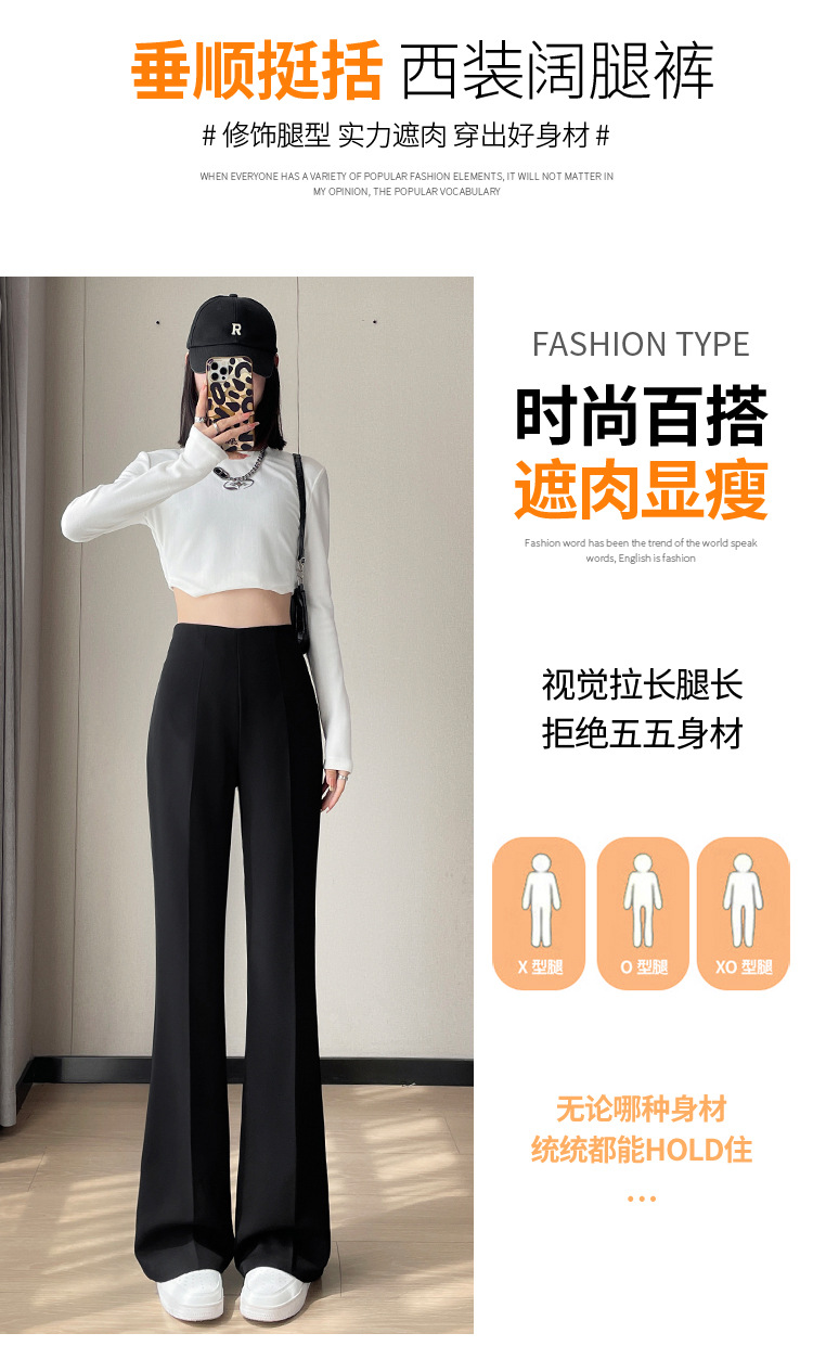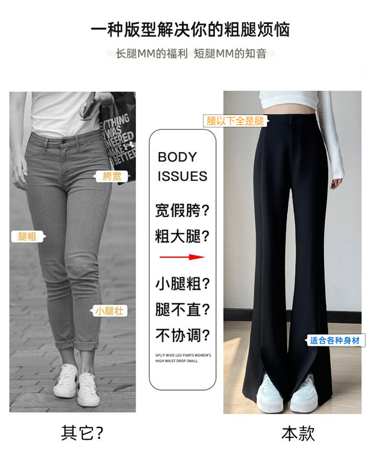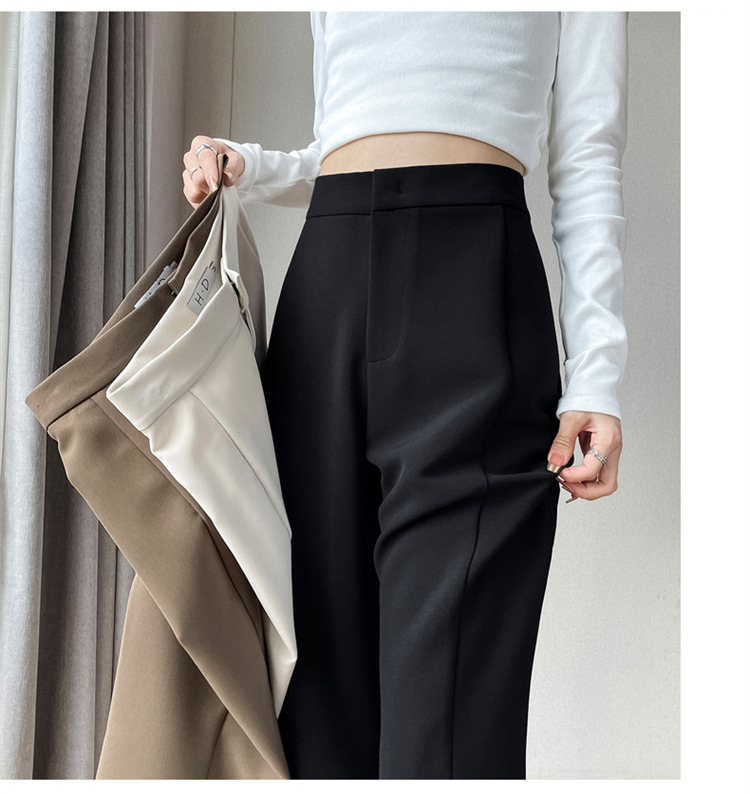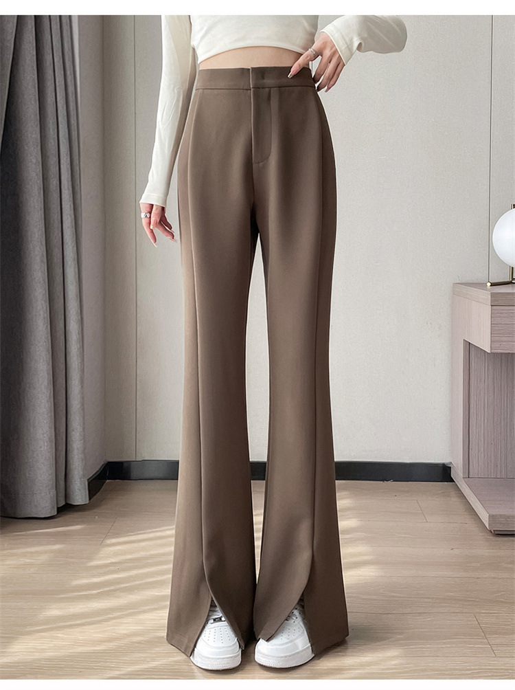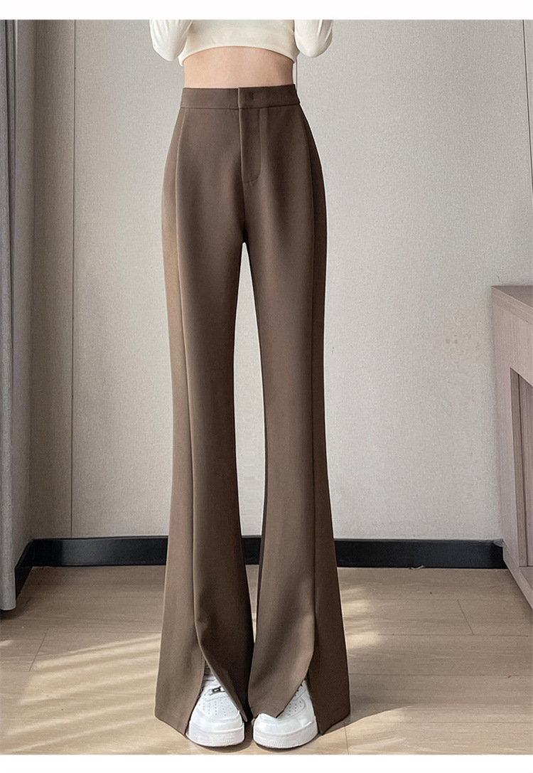 미국 2025 봄 새 스타일 바지 여성을위한 분할 마이크로 스트레이트 캐주얼 팬츠와 높은 허리 좁은 넓은 다리 바지스토어 가기