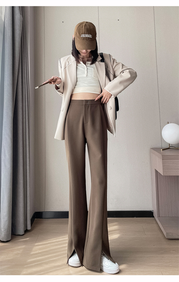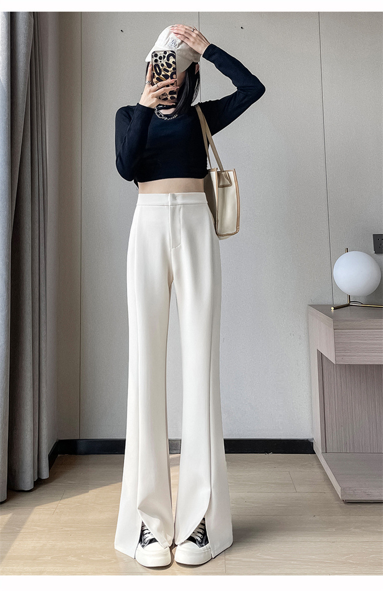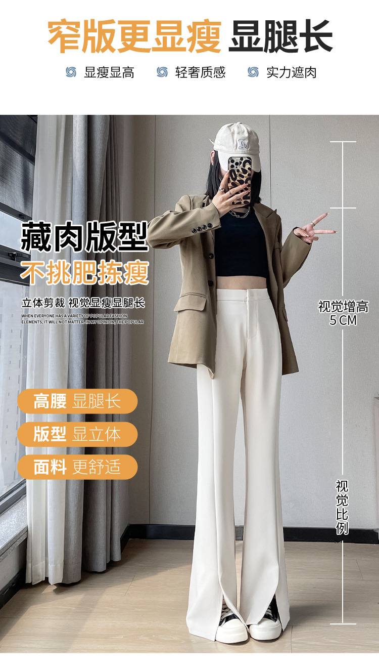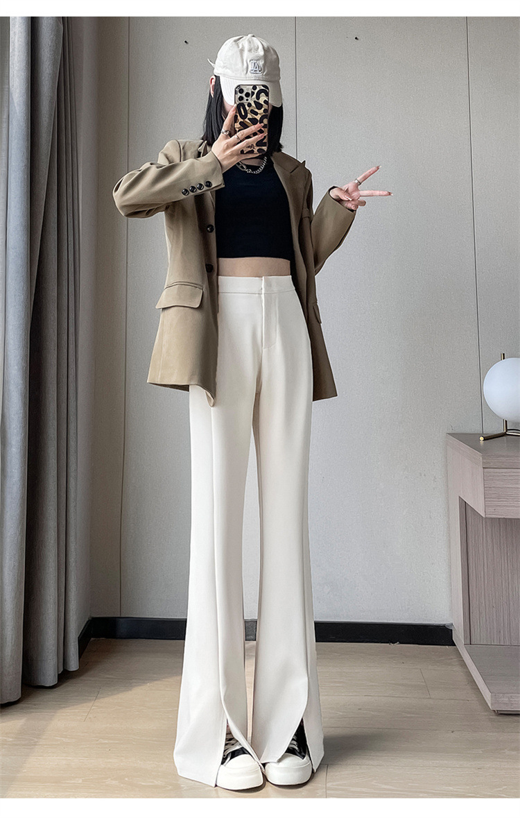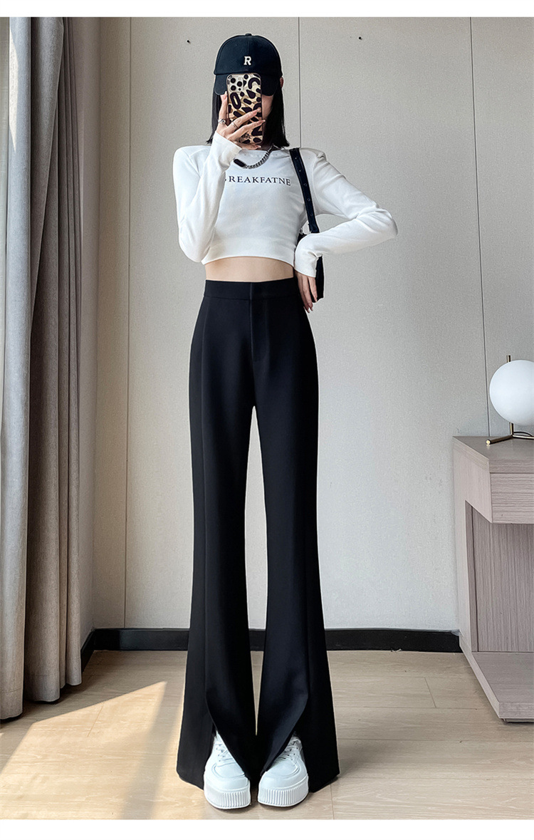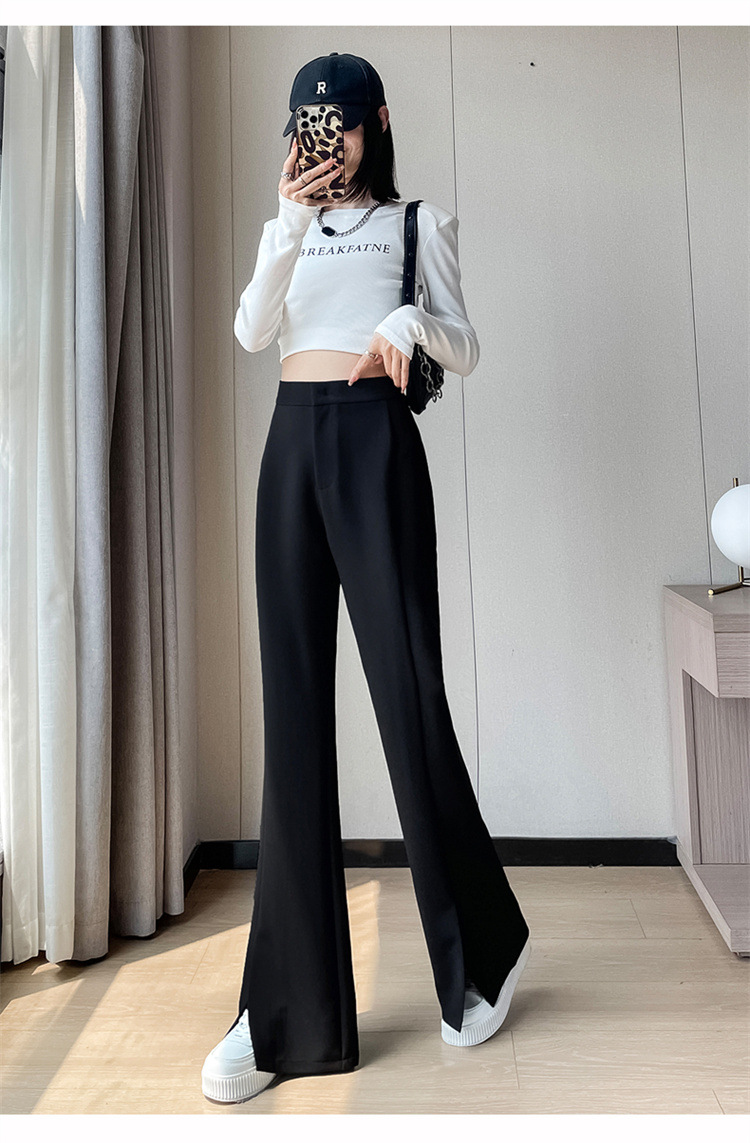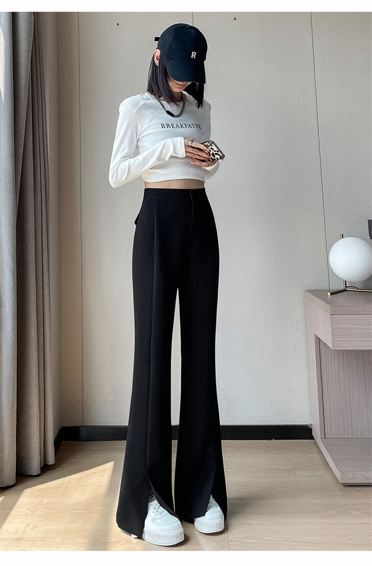 미국 2025 봄 새 스타일 바지 여성을위한 분할 마이크로 스트레이트 캐주얼 팬츠와 높은 허리 좁은 넓은 다리 바지