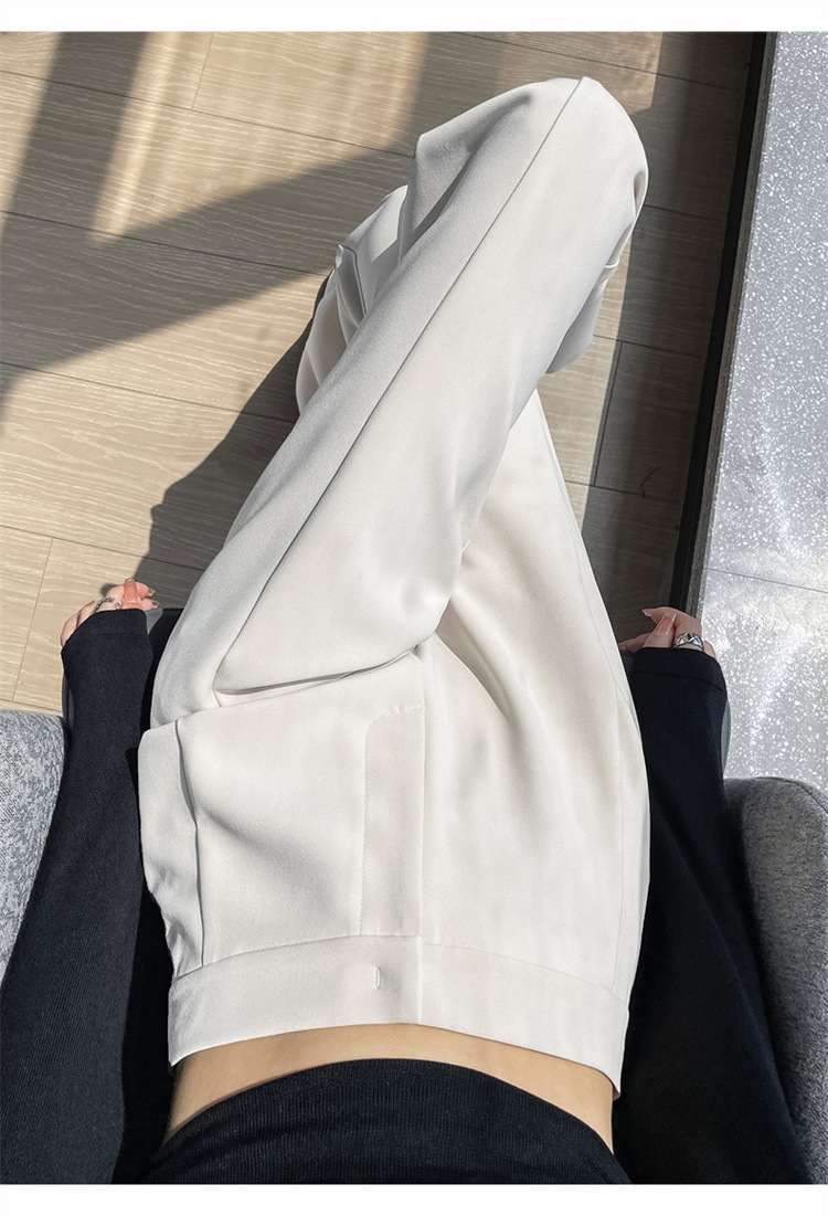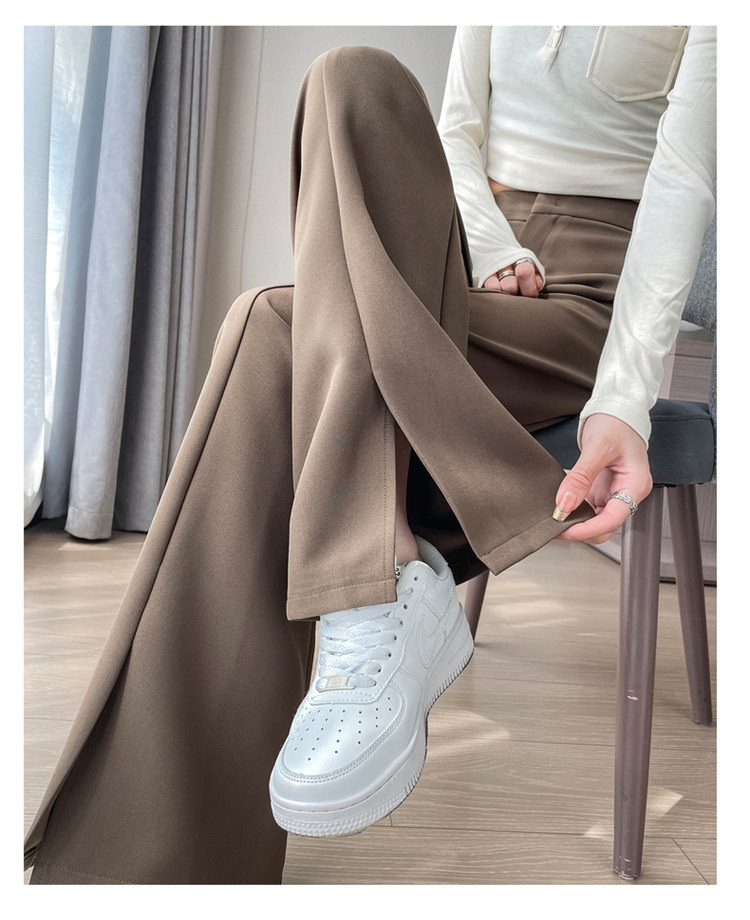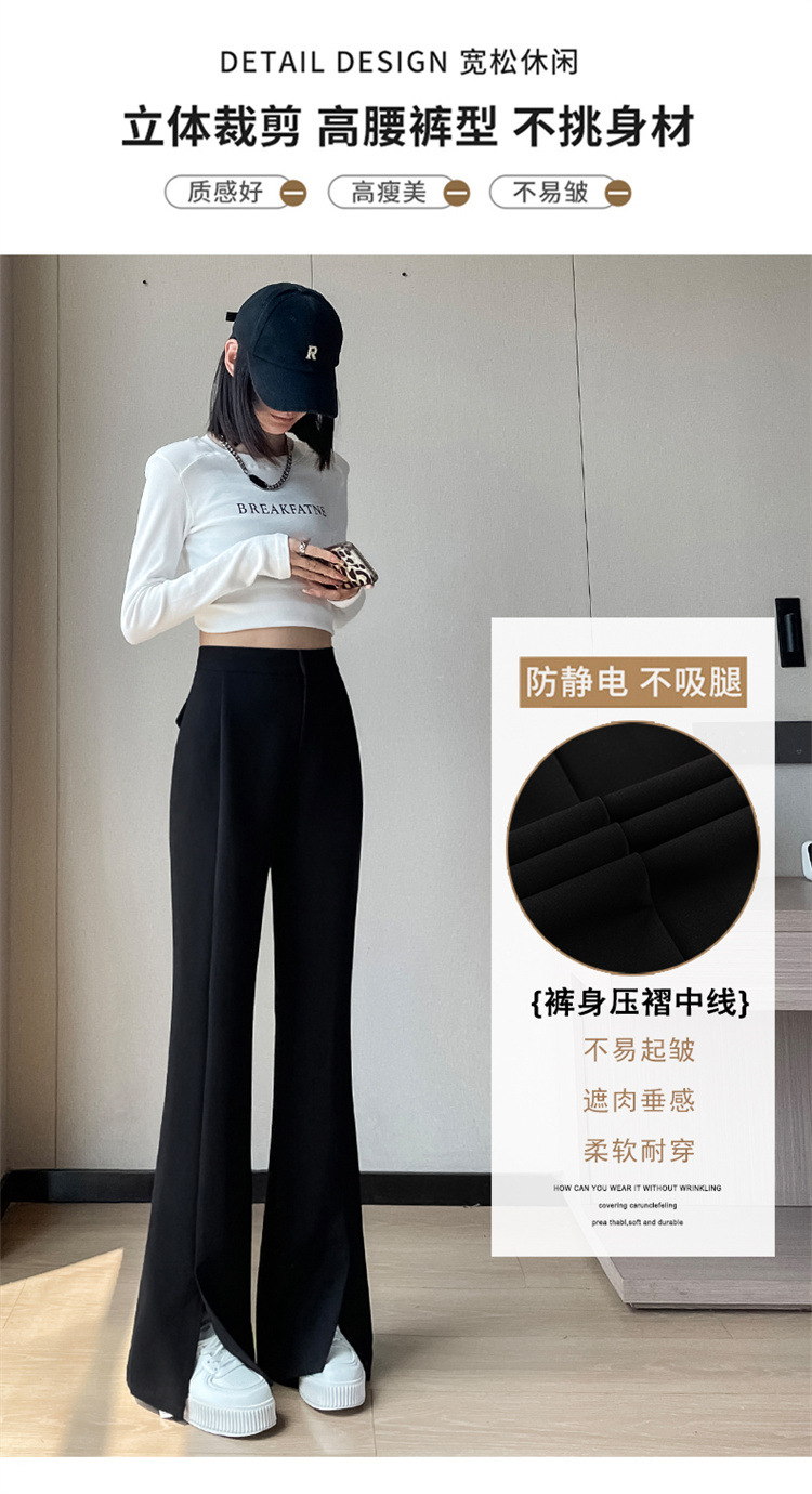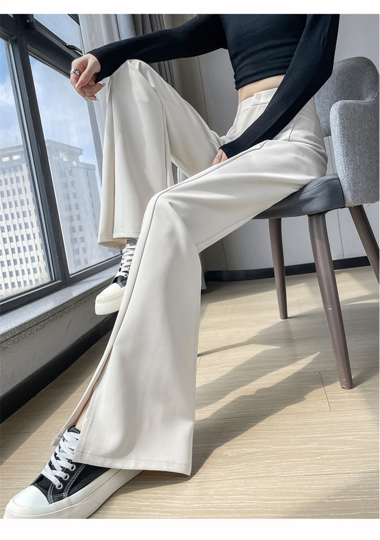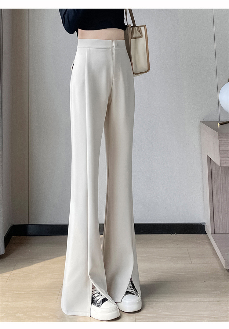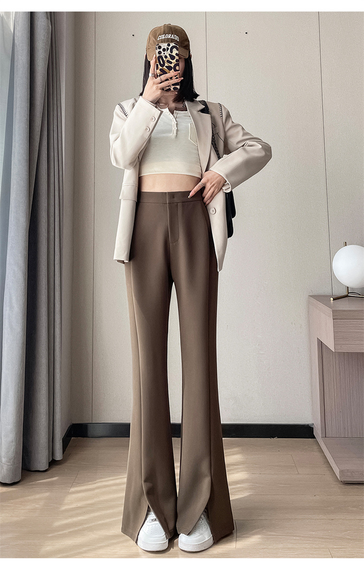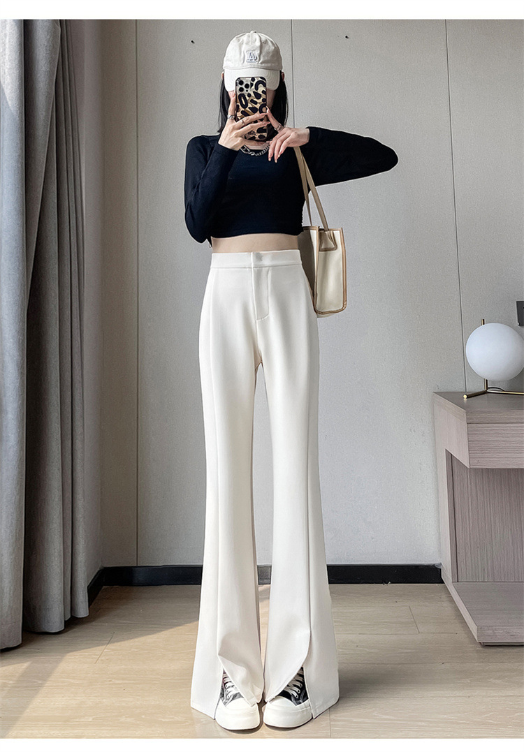 미국 2025 봄 새 스타일 바지 여성을위한 분할 마이크로 스트레이트 캐주얼 팬츠와 높은 허리 좁은 넓은 다리 바지