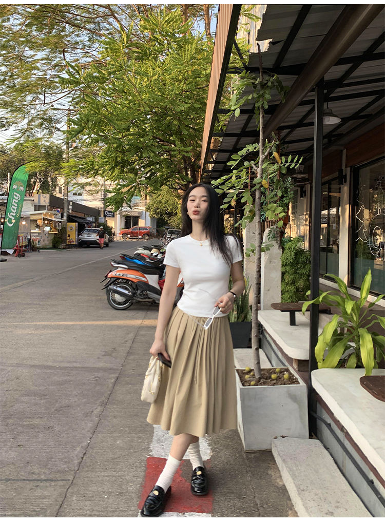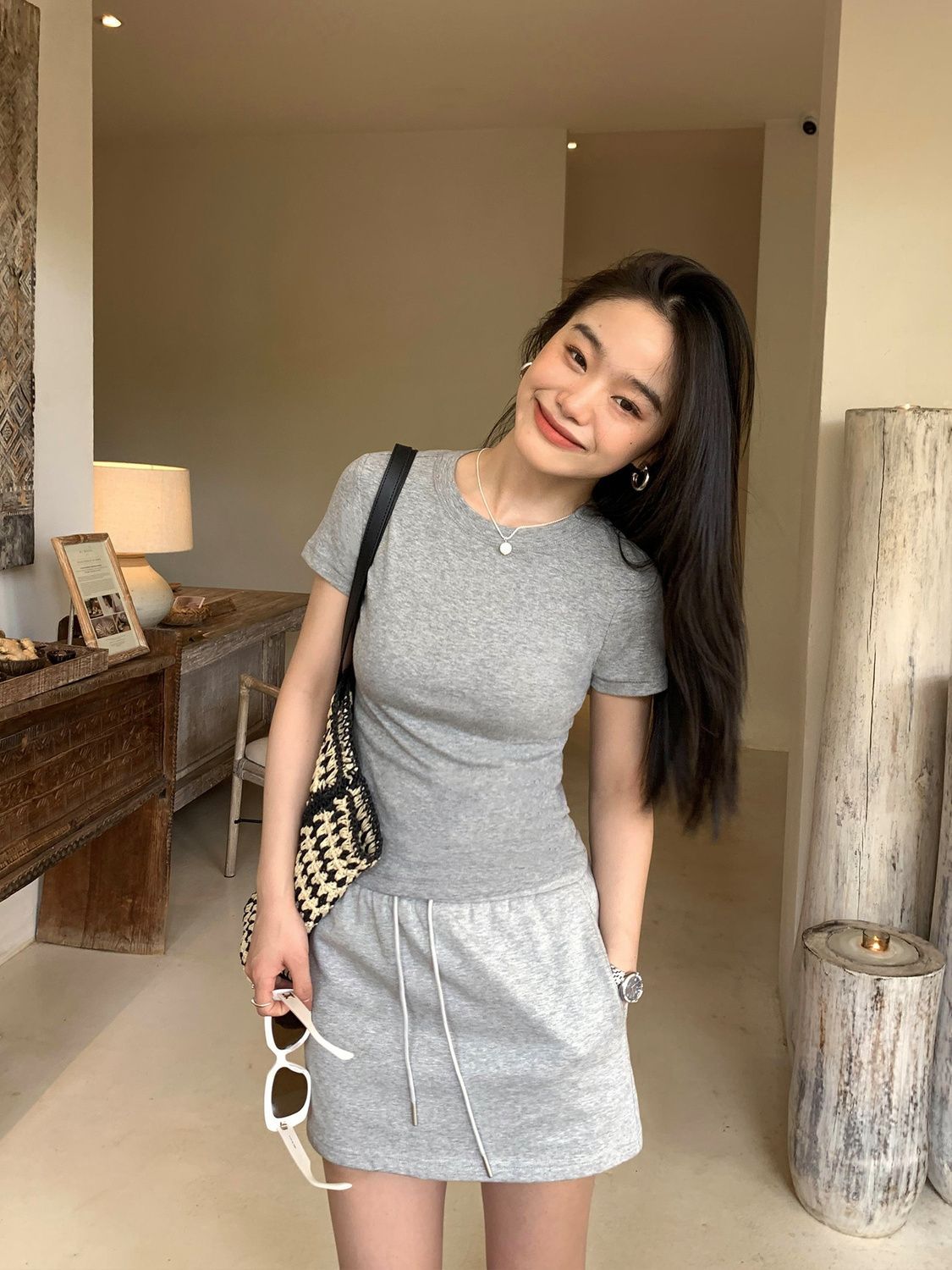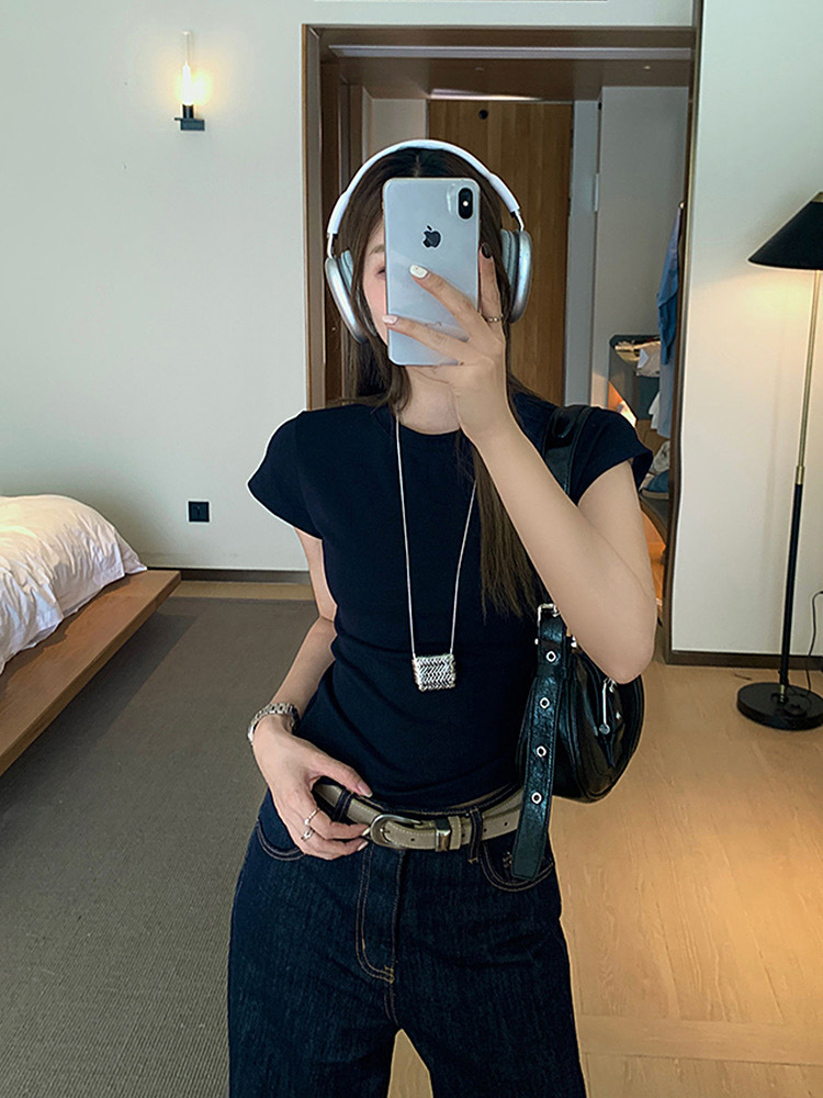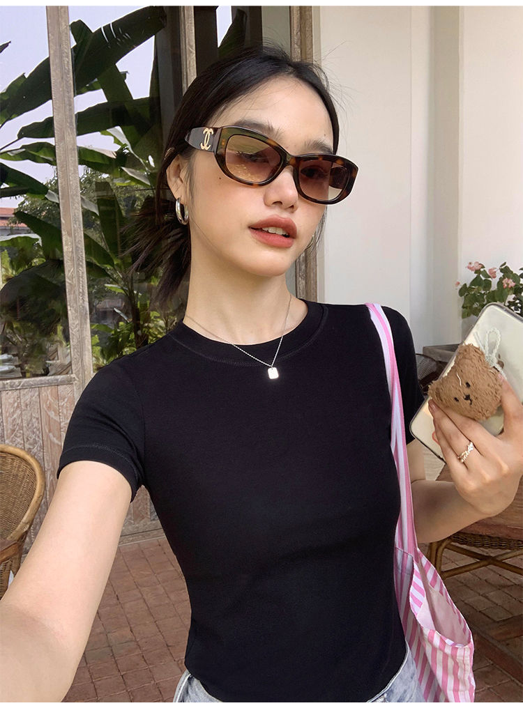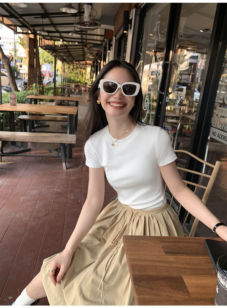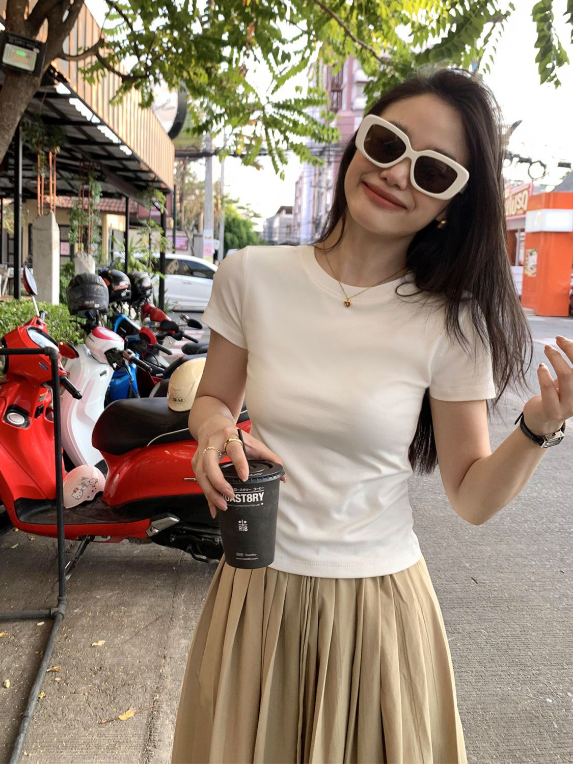 시 라임 새로운 도착 올매치 반팔 여성 흰색 세련 된 탑 어깨 면 세련된 라운드 넥 반팔 티셔츠스토어 가기