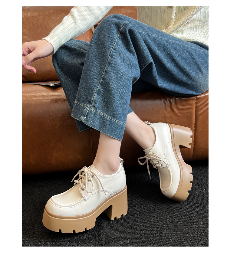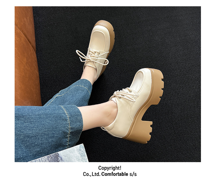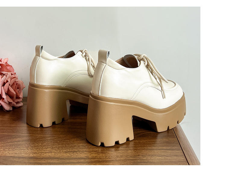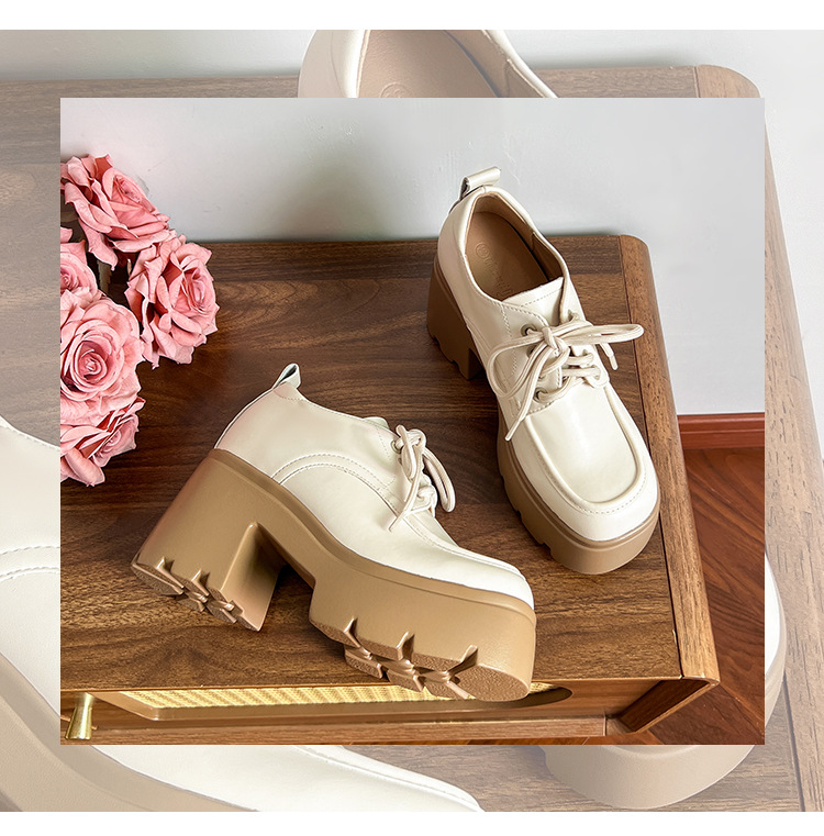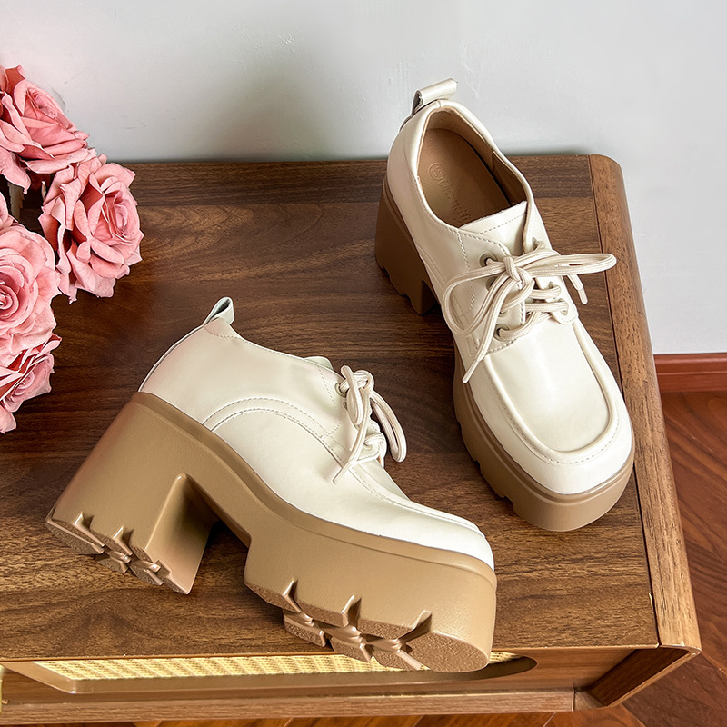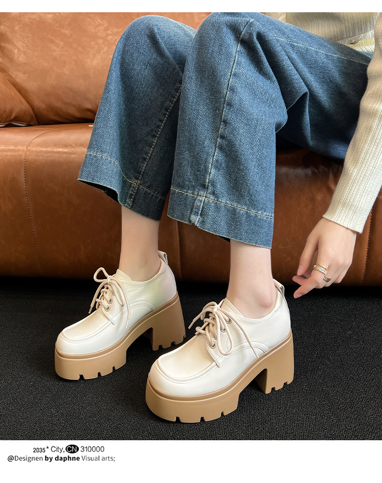 두꺼운 밑창의 흰색 작은 가죽 신발 2025 봄 신작 작은 사이즈 내부 높이 증가 여성 신발 플랫폼 신발 두꺼운 굽 하이힐 레이스 업 신발스토어 가기