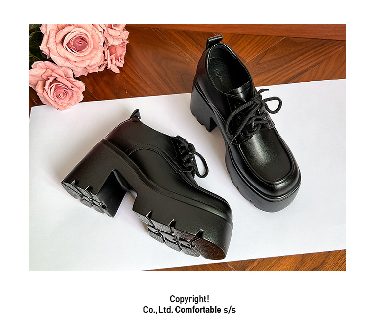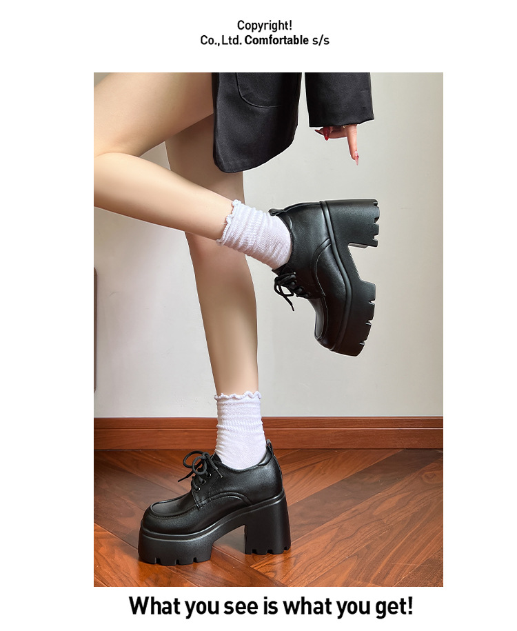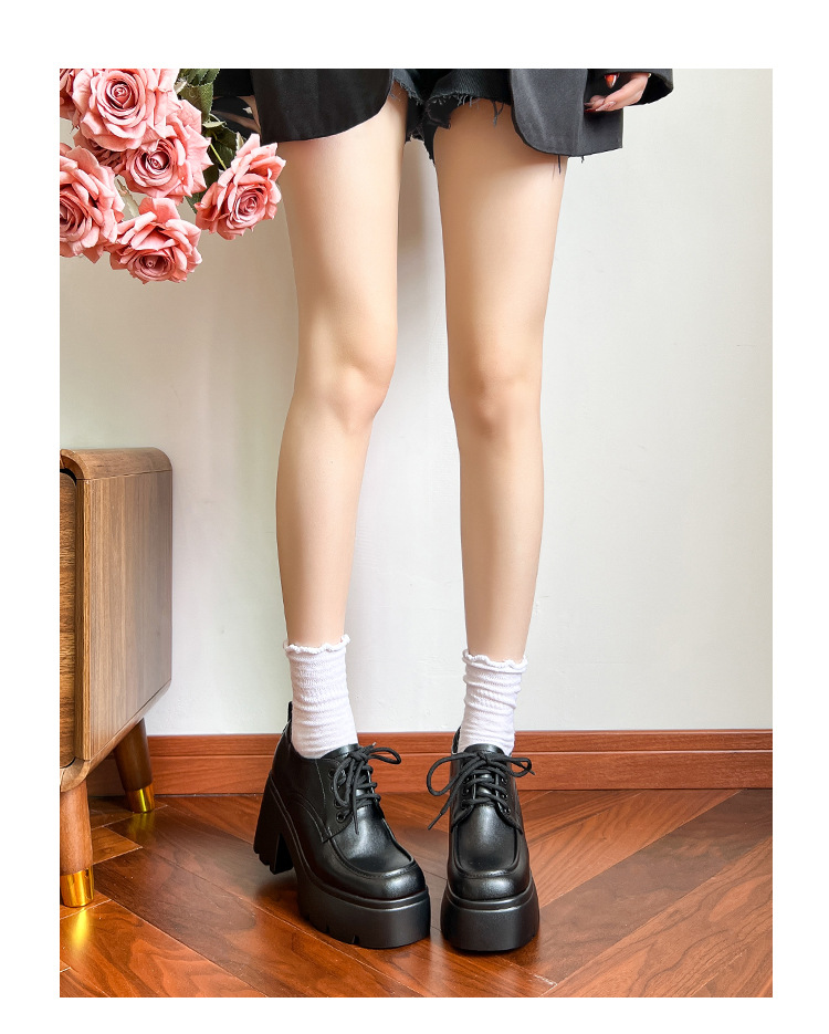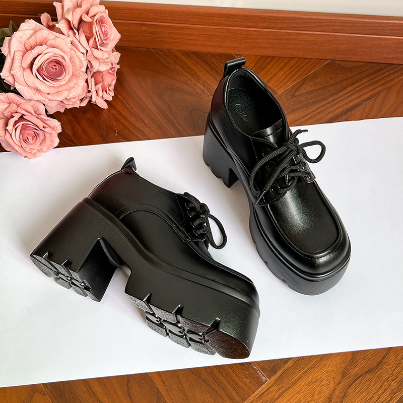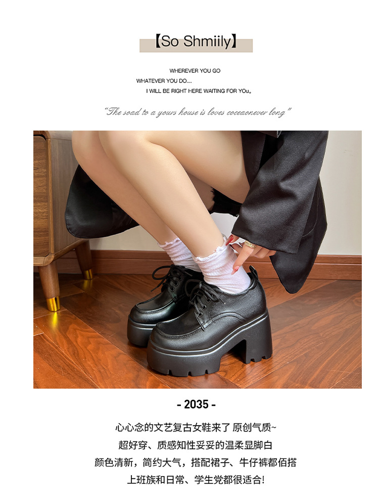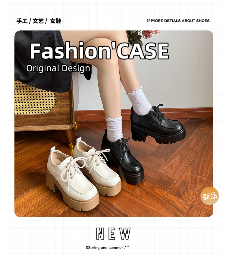 두꺼운 밑창의 흰색 작은 가죽 신발 2025 봄 신작 작은 사이즈 내부 높이 증가 여성 신발 플랫폼 신발 두꺼운 굽 하이힐 레이스 업 신발스토어 가기