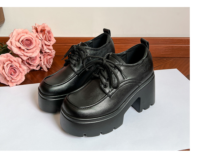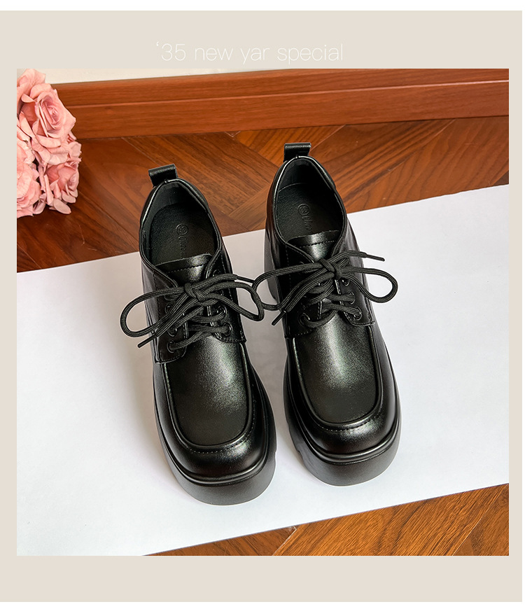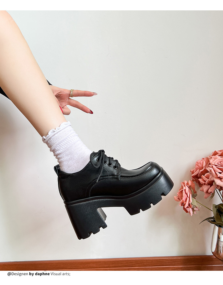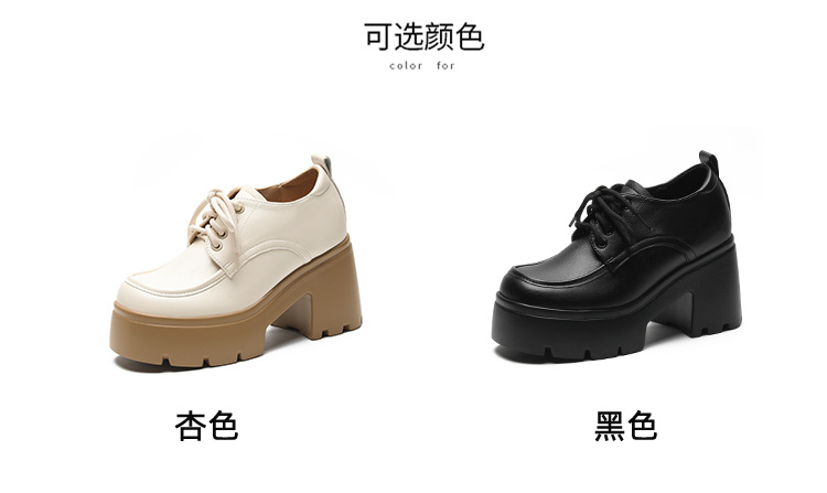 두꺼운 밑창의 흰색 작은 가죽 신발 2025 봄 신작 작은 사이즈 내부 높이 증가 여성 신발 플랫폼 신발 두꺼운 굽 하이힐 레이스 업 신발