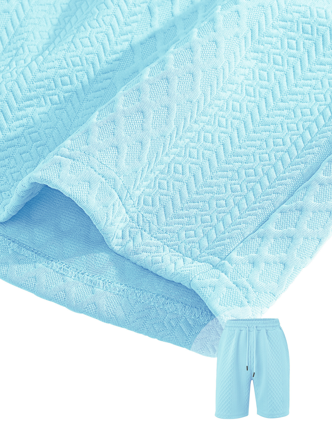 국경 간 남자 여름 유럽과 미국의 새로운 자카드 천 남자 캐주얼 스포츠 얇은 라르 폴로 셔츠 반팔 세트