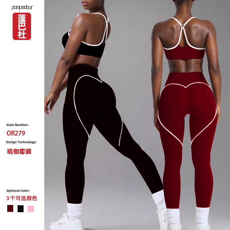 유럽과 미국의 대외 무역 국경 간 벌거 벗은 아름다움 뒤 스포츠 명암 브라 스트랩 복숭아 고관절 고관절 빠른 건조 엉덩이 요가 바지